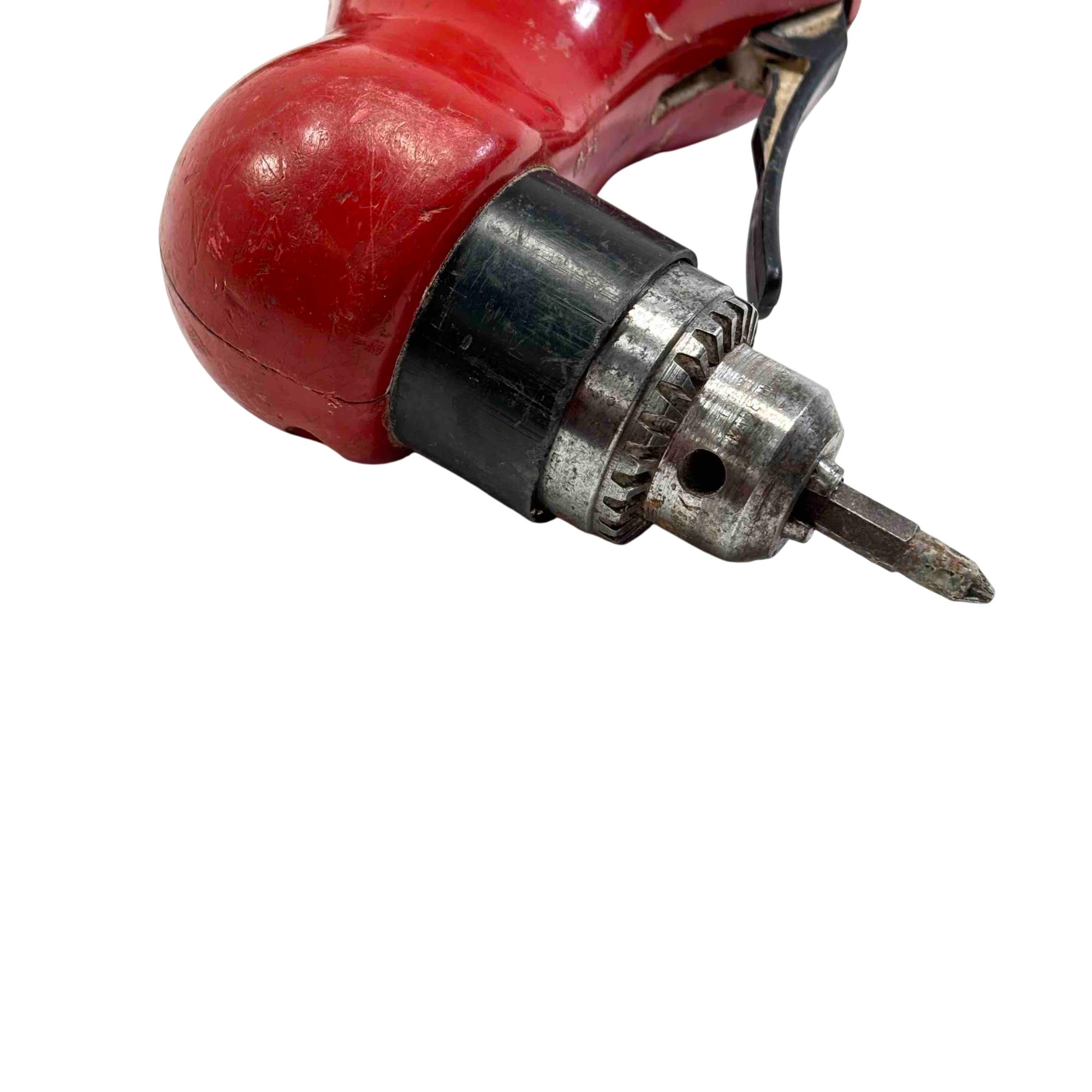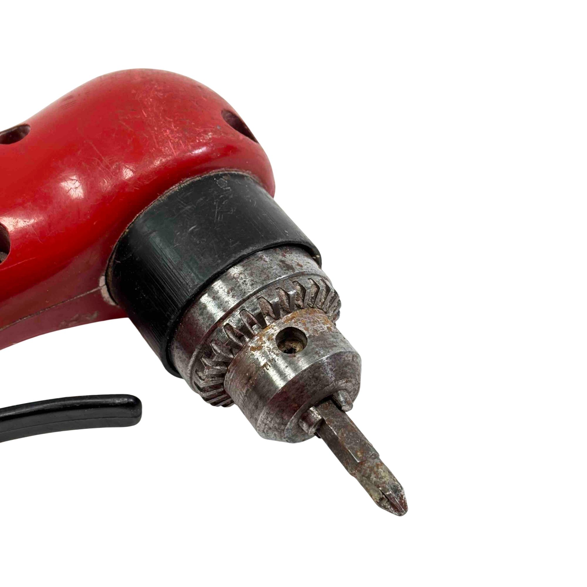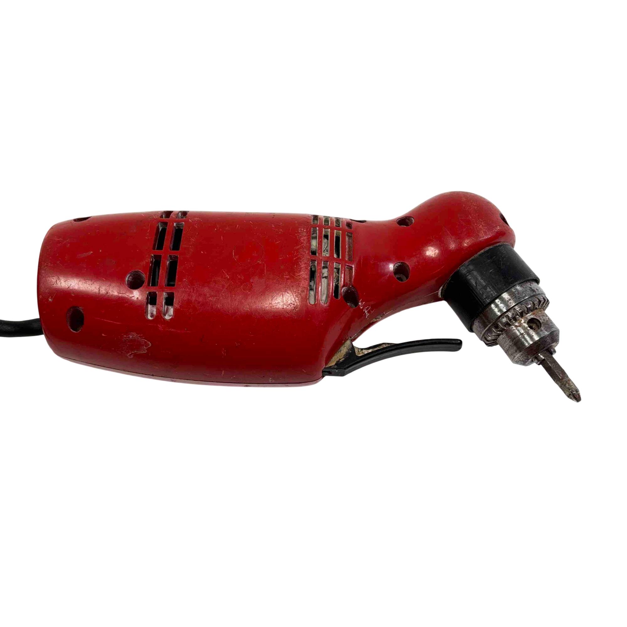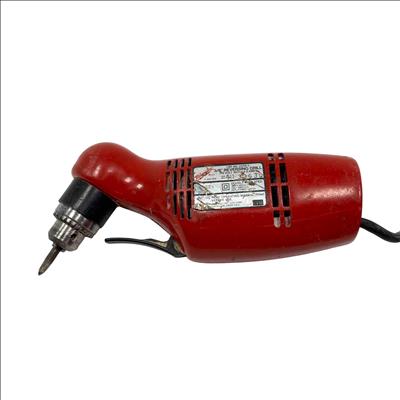 Milwaukee 0375-1 3/8" Right Angle Corded Electric Reversing Drill is designed for close quarter drilling and fastening tasks. It features a 3/8-inch chuck and a right-angle head that provides enhanced maneuverability in tight spaces. This powerful corded drill delivers high torque with versatile forward and reverse functionality to handle various drilling applications efficiently.