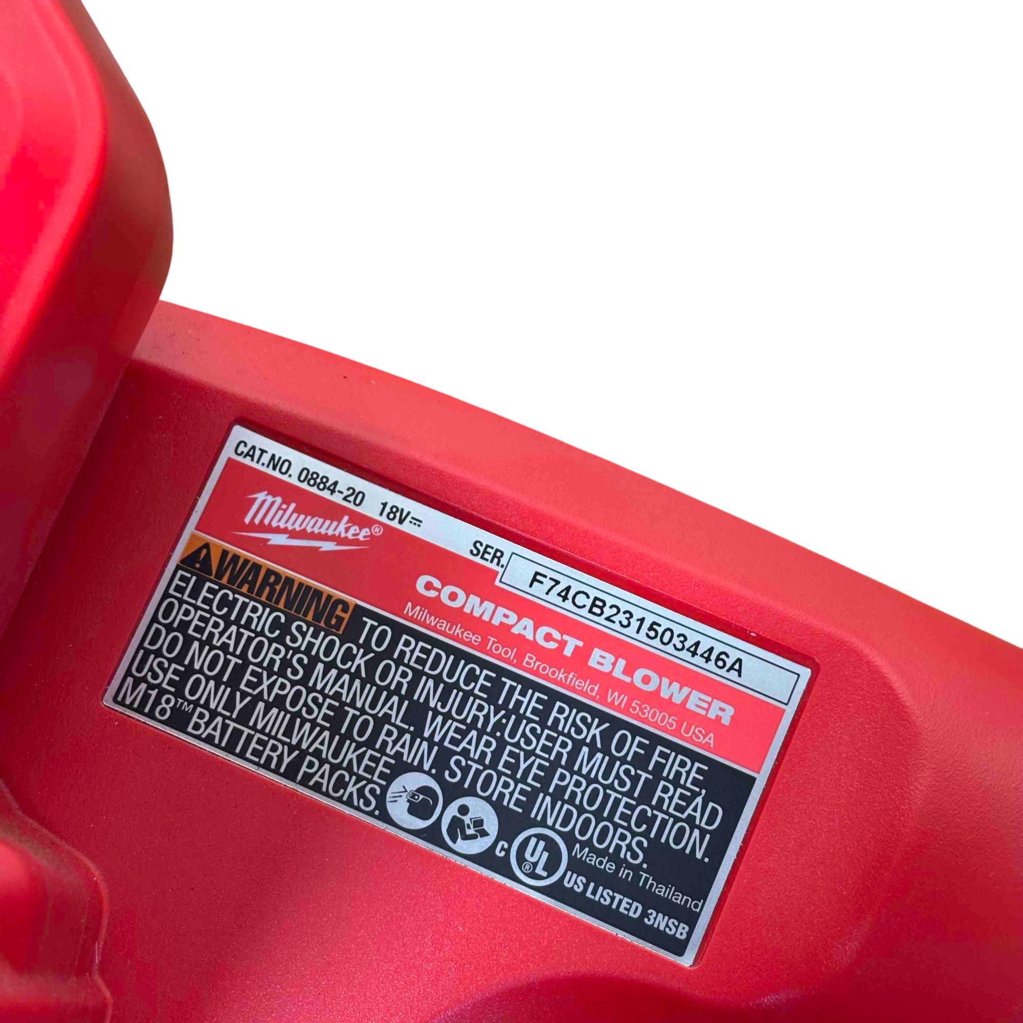 Milwaukee 0884-20 M18 18V Lithium-Ion Cordless Compact Blower 446A