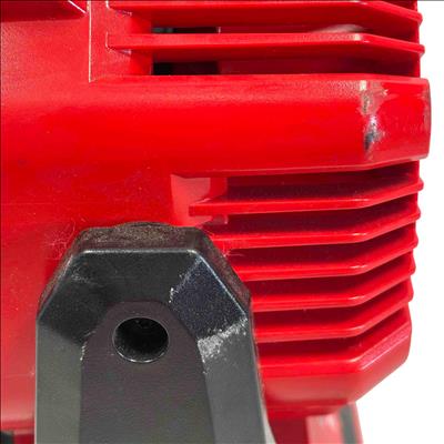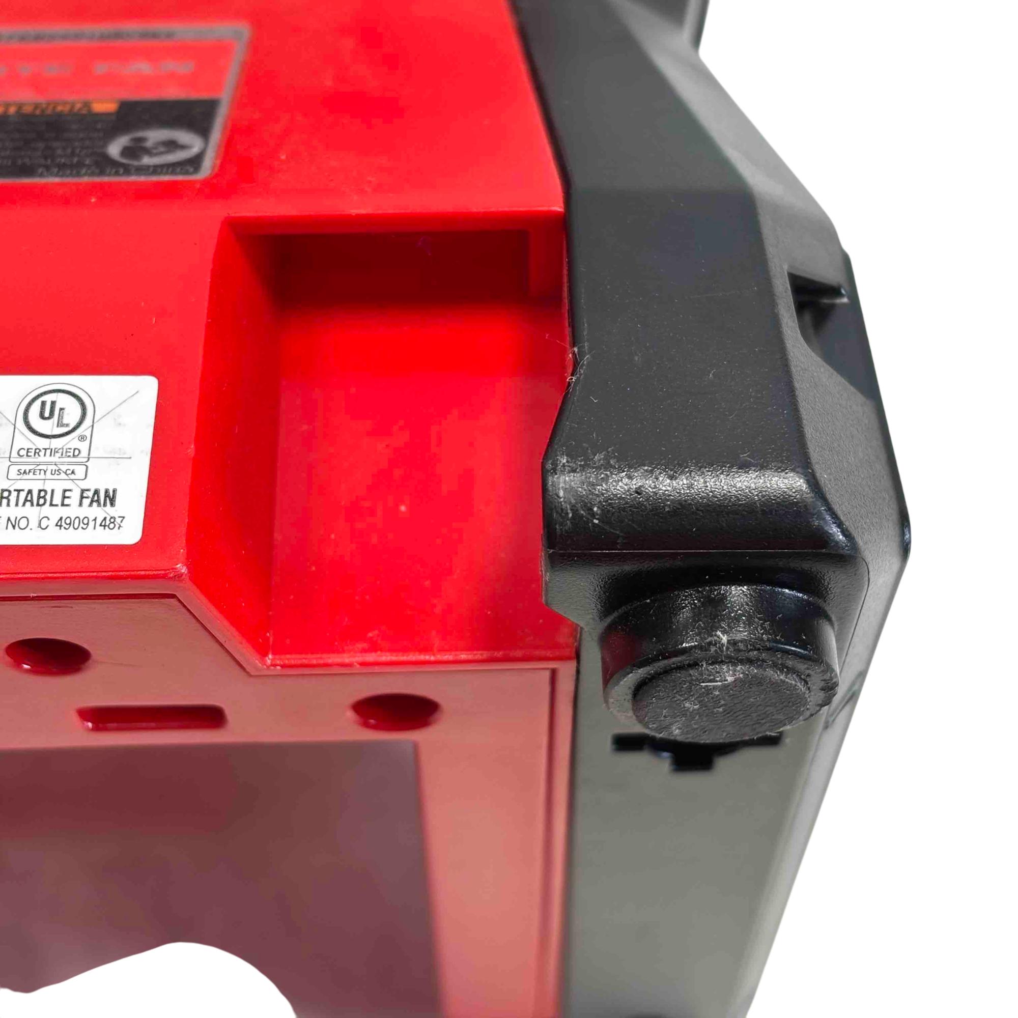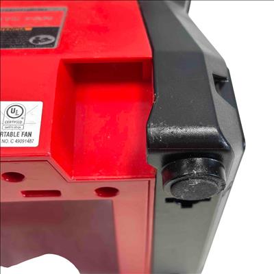 Previously owned. This jobsite fan has been tested and it works. The top of the fan has scuff marks above the logo. The right side of the fan has a white stain on the black plastic as well as scuff marks on the fan. The back of the fan has scratches on the middle of it, and there are scuffs around the edges. All four corners of the stand have scuffs on them. There are some stains and smudges around the setting dial. See photos for details.