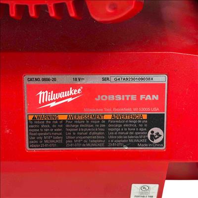 Milwaukee 0886-20 M18 Cordless Jobsite Fan