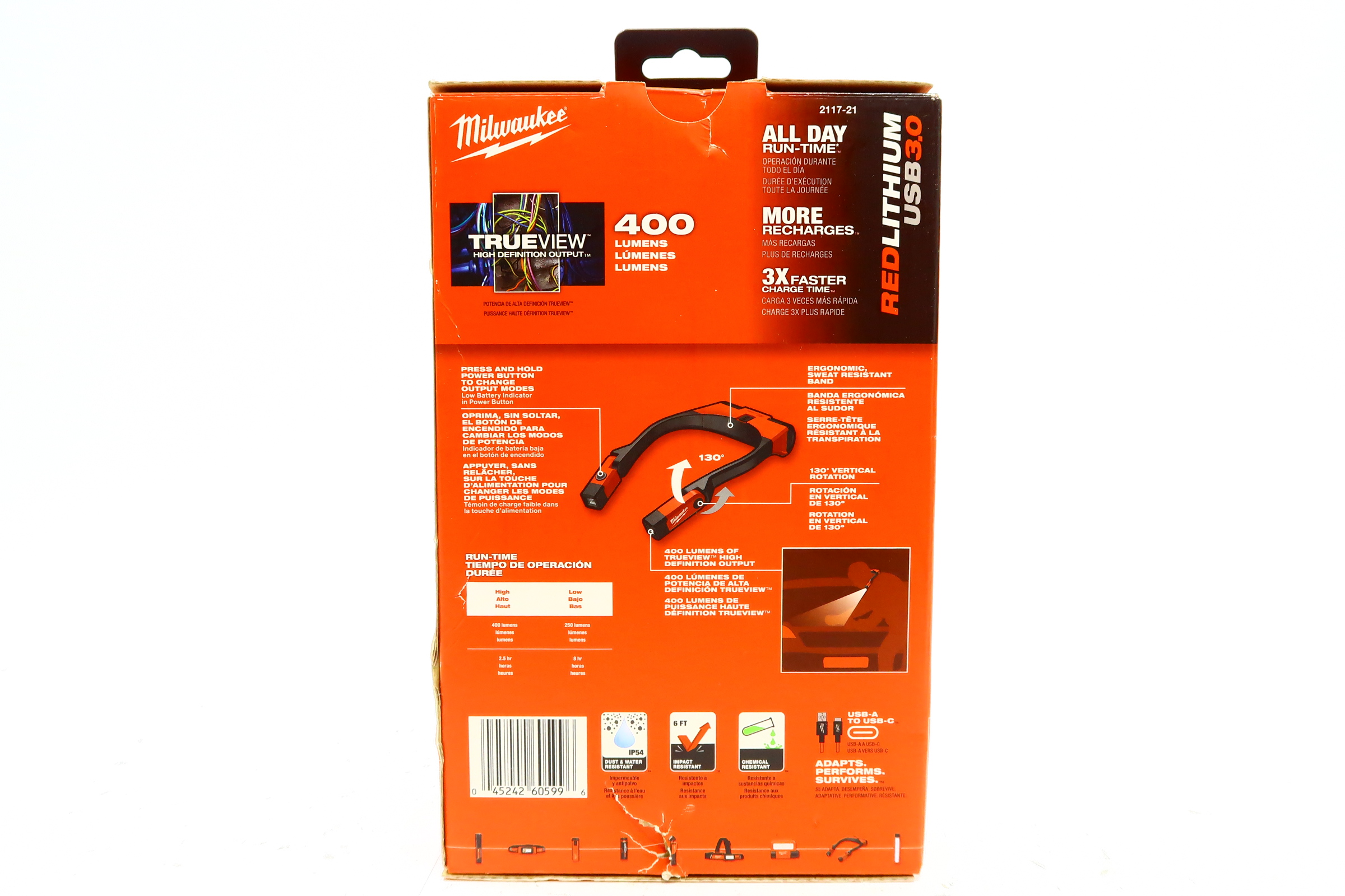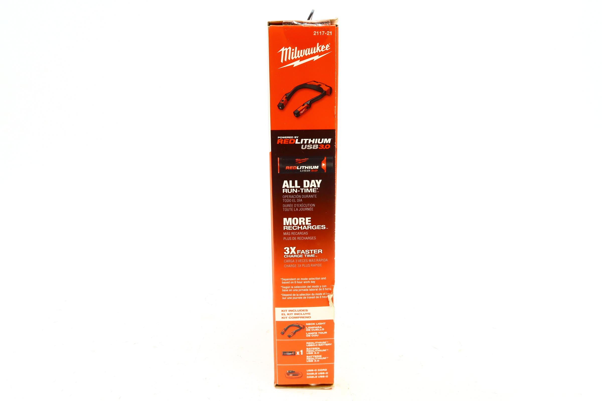 Our NEW REDLITHIUM USB 400L Neck Light is 45% BRIGHTER FOR LONGER and the MOST DURABLE. This rechargeable neck light provides 400 lumens of TRUEVIEW High-Definition Output and over 8 hours of run-time to keep you working all day. 2 mode options allow you to manage output and run-time, plus a battery gauge in the power button will always inform you how much power you have left before a recharge is needed. The REDLITHIUM USB 400L Neck Light has 130° of vertical light head rotation for easy positioning and an ergonomic, sweat-resistant band for your comfort.