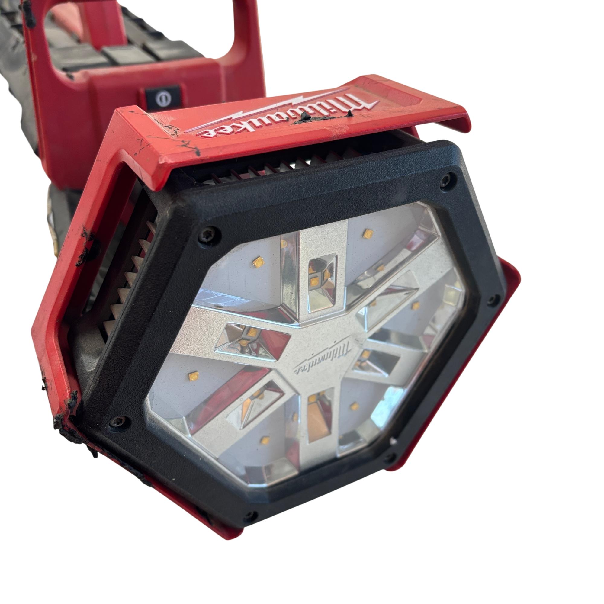 Milwaukee 2130-20 M18 TRUEVIEW LED Rocket Dual Power Tower Stand Light delivers versatile and powerful illumination ideal for job sites and outdoor work environments. This LED stand light features adjustable height and a rugged build with a distinctive red and black design, offering bright, consistent lighting with TRUEVIEW technology for enhanced clarity and color accuracy.