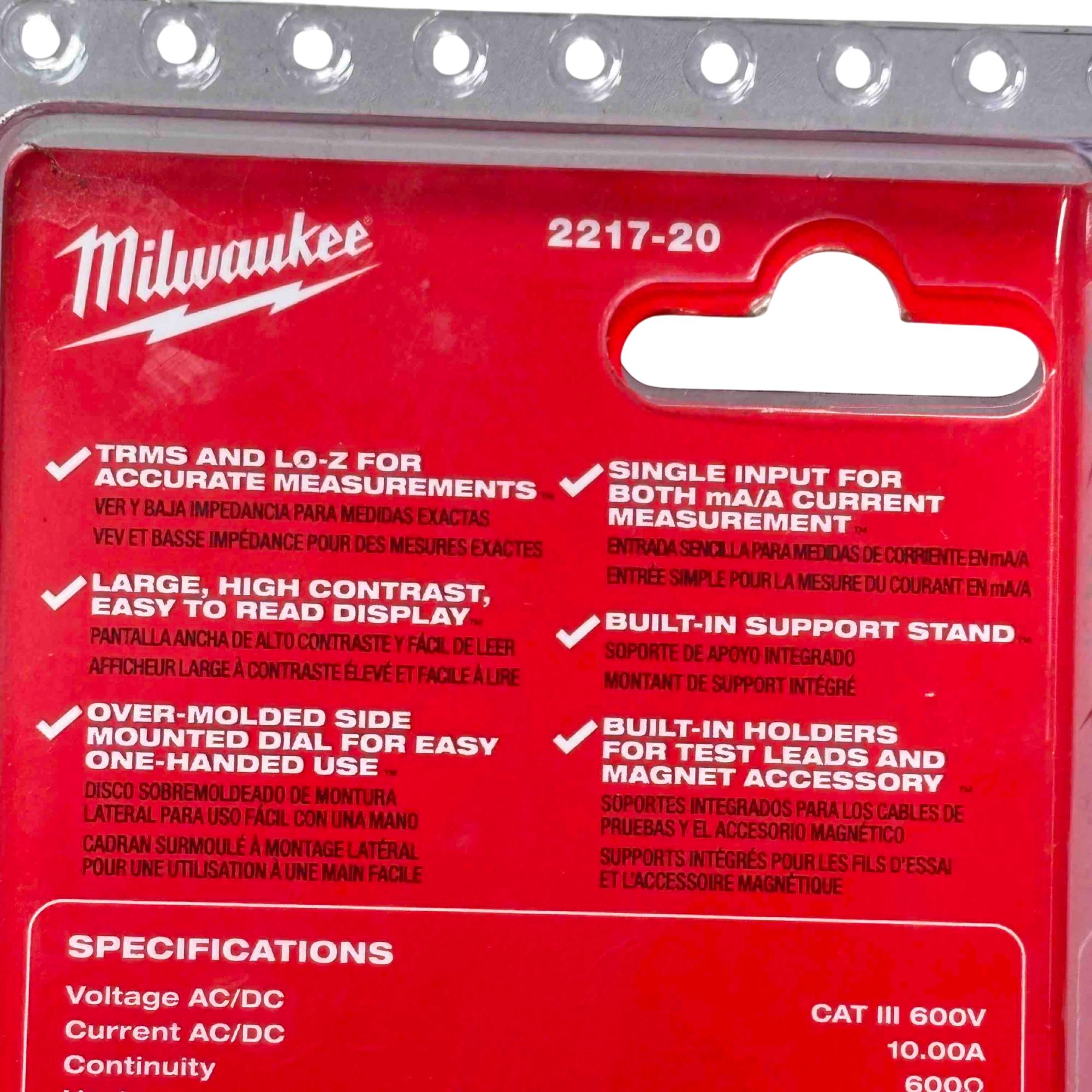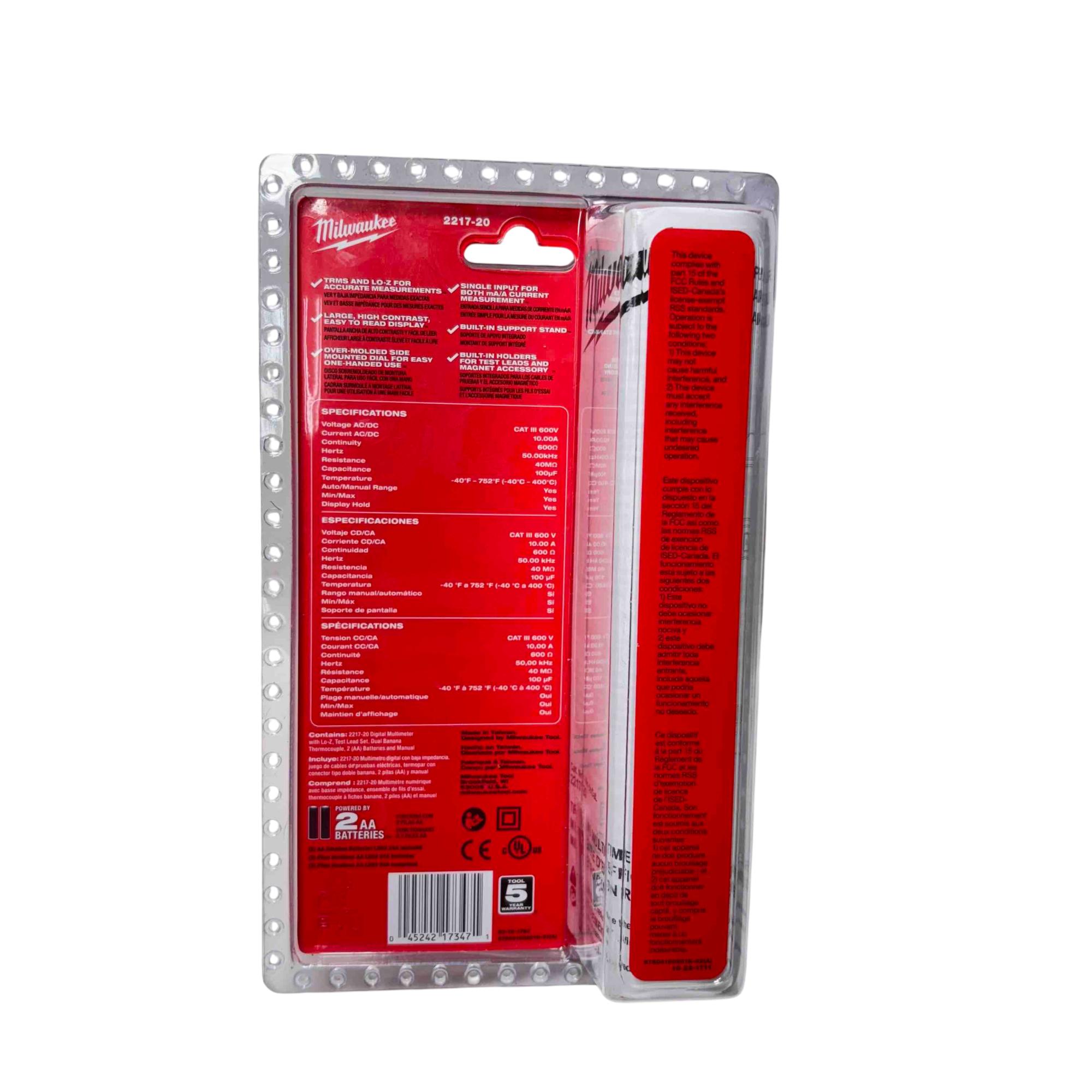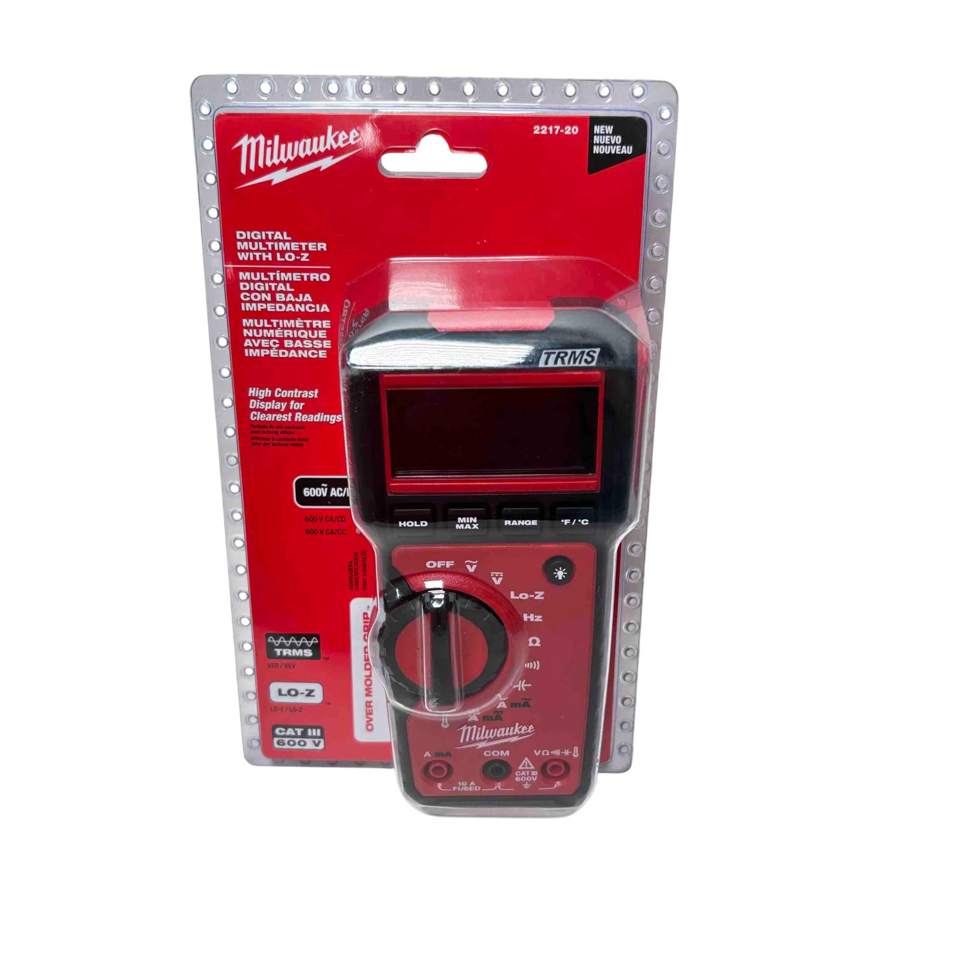 Upgrade your toolkit with the Milwaukee 2217-20 Digital Multimeter, a robust tool designed for precise measurements. Featuring Lo-Z and TRMS technology, it ensures accurate readings and a high contrast display for easy monitoring. The built-in support stand and ergonomic design make it practical for single-handed use, making this multimeter a perfect choice for professionals and DIY enthusiasts alike.