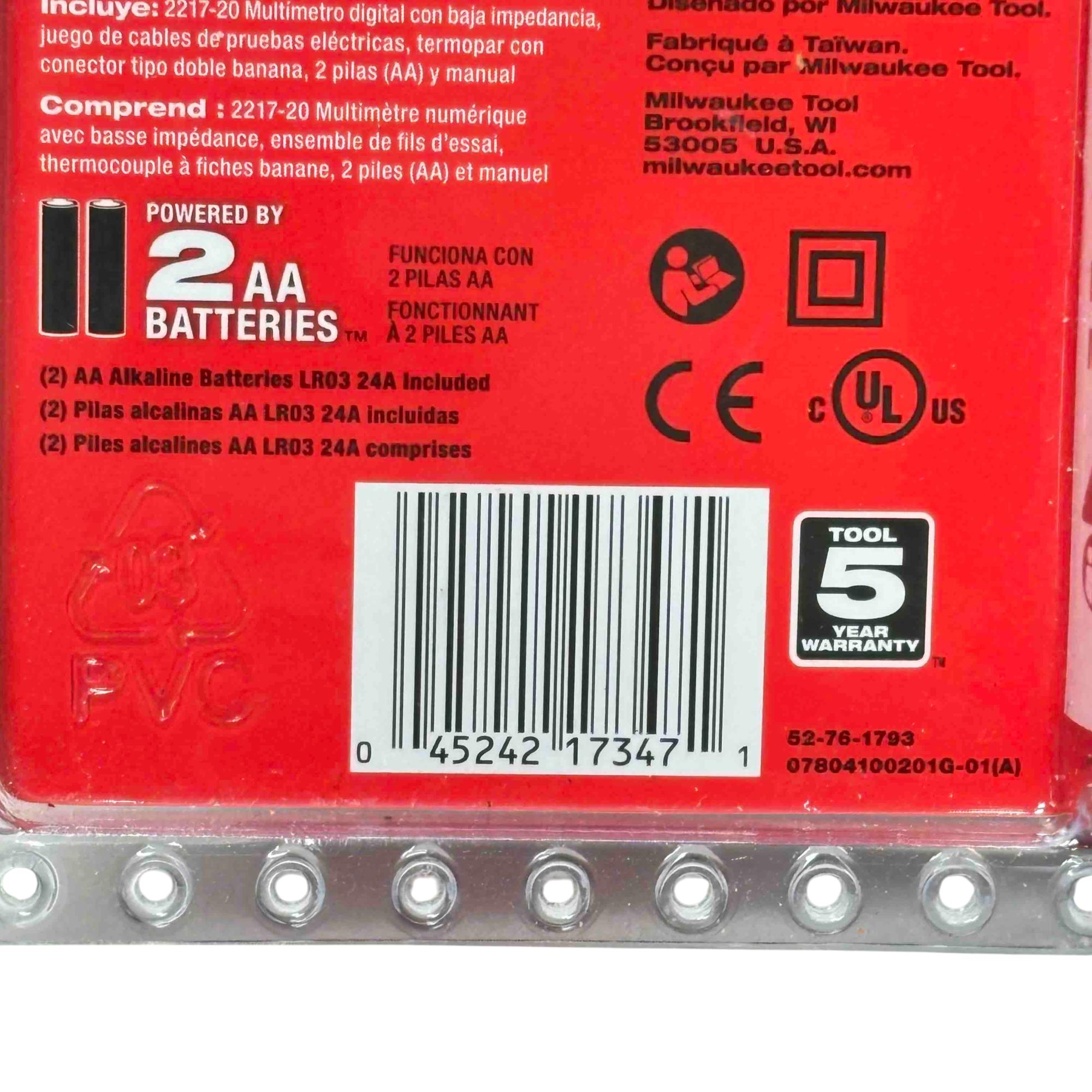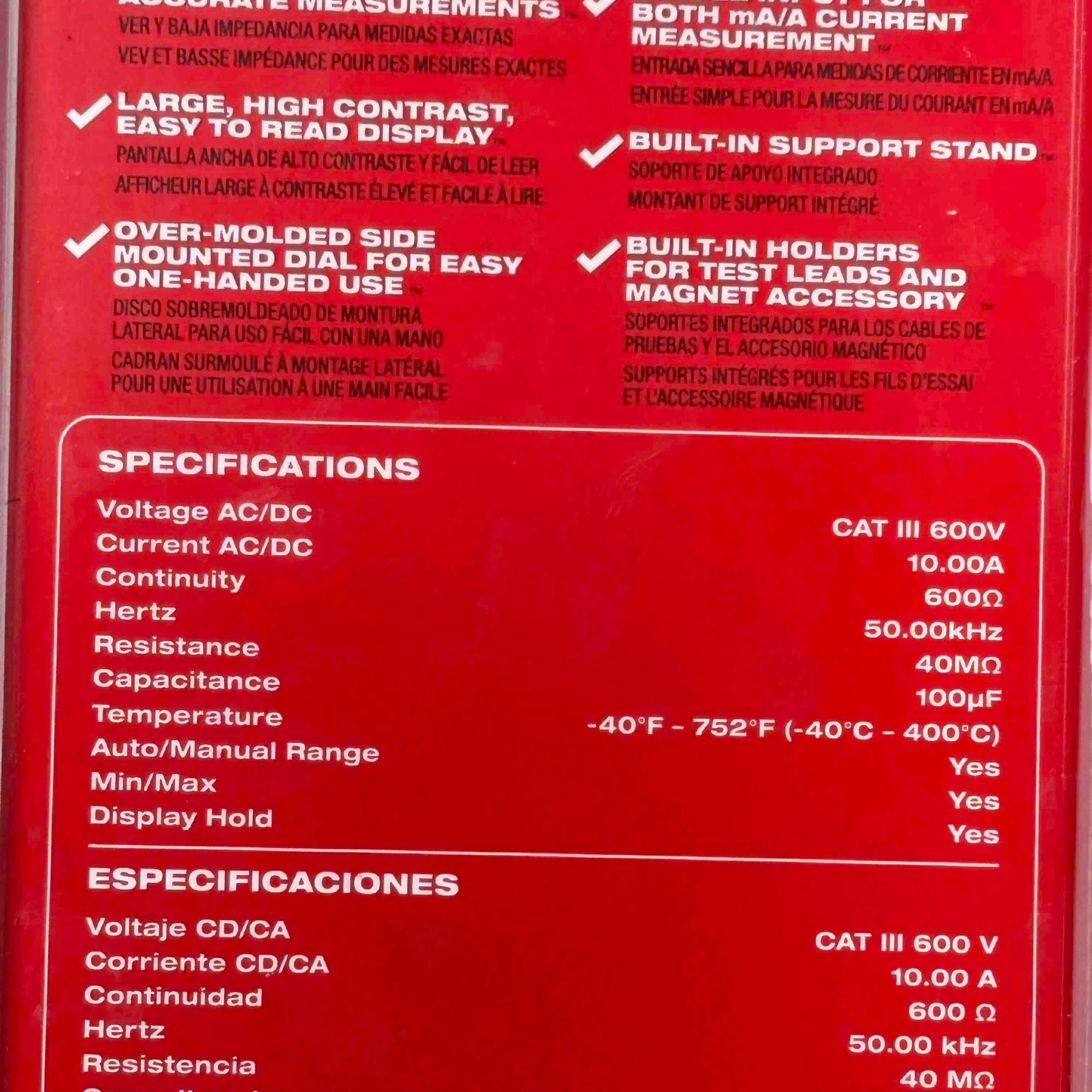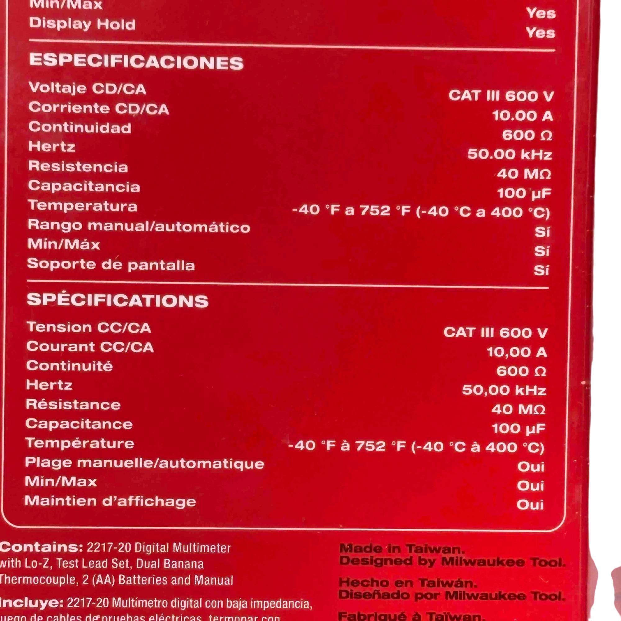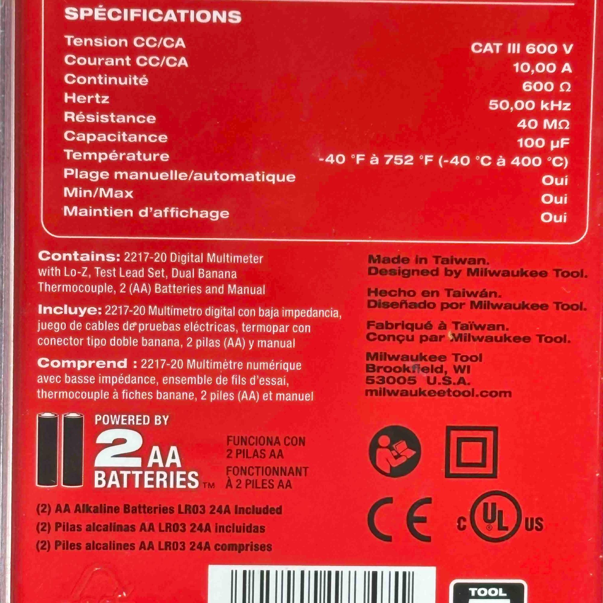 Upgrade your toolkit with the Milwaukee 2217-20 Digital Multimeter, a robust tool designed for precise measurements. Featuring Lo-Z and TRMS technology, it ensures accurate readings and a high contrast display for easy monitoring. The built-in support stand and ergonomic design make it practical for single-handed use, making this multimeter a perfect choice for professionals and DIY enthusiasts alike.