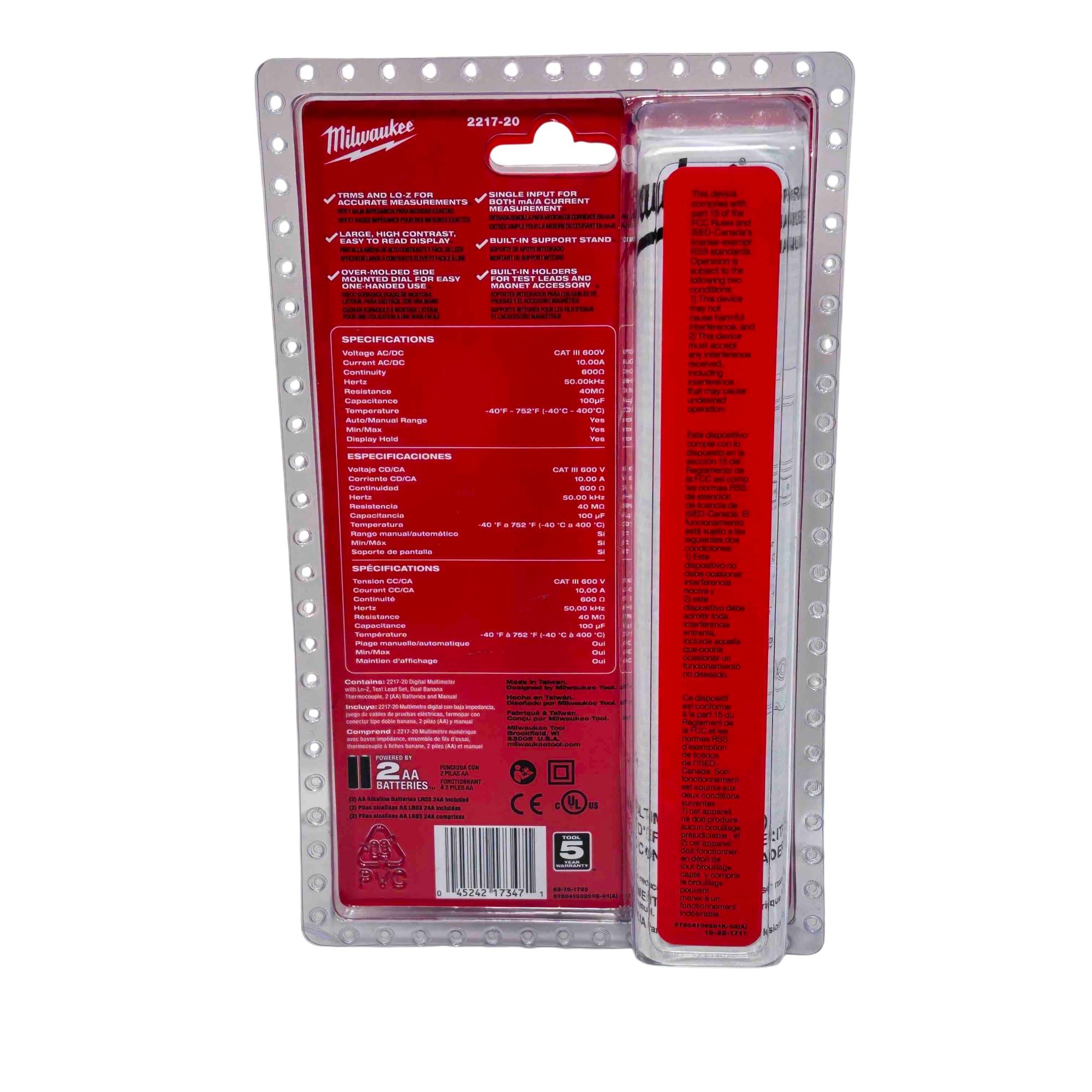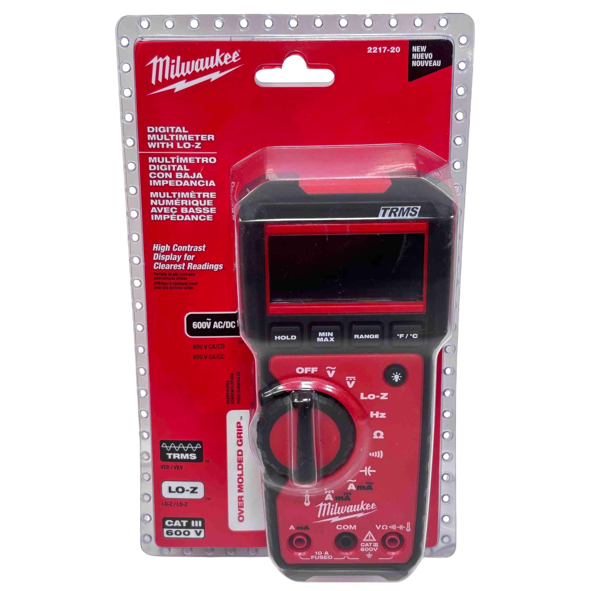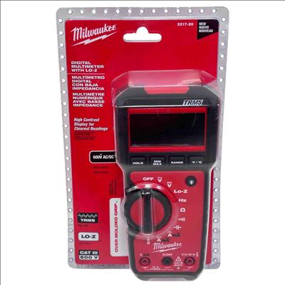 The Milwaukee 2217-20 Digital Multimeter offers professional-grade True RMS (TRMS) accuracy and Lo-Z for precise voltage readings, making it ideal for both commercial and residential electricians. Designed with an over-molded grip for durability and comfort, this multimeter features a high contrast display for easy readability and is capable of measuring up to 600V AC/DC. Get reliable results in any environment with this robust and dependable tool.
