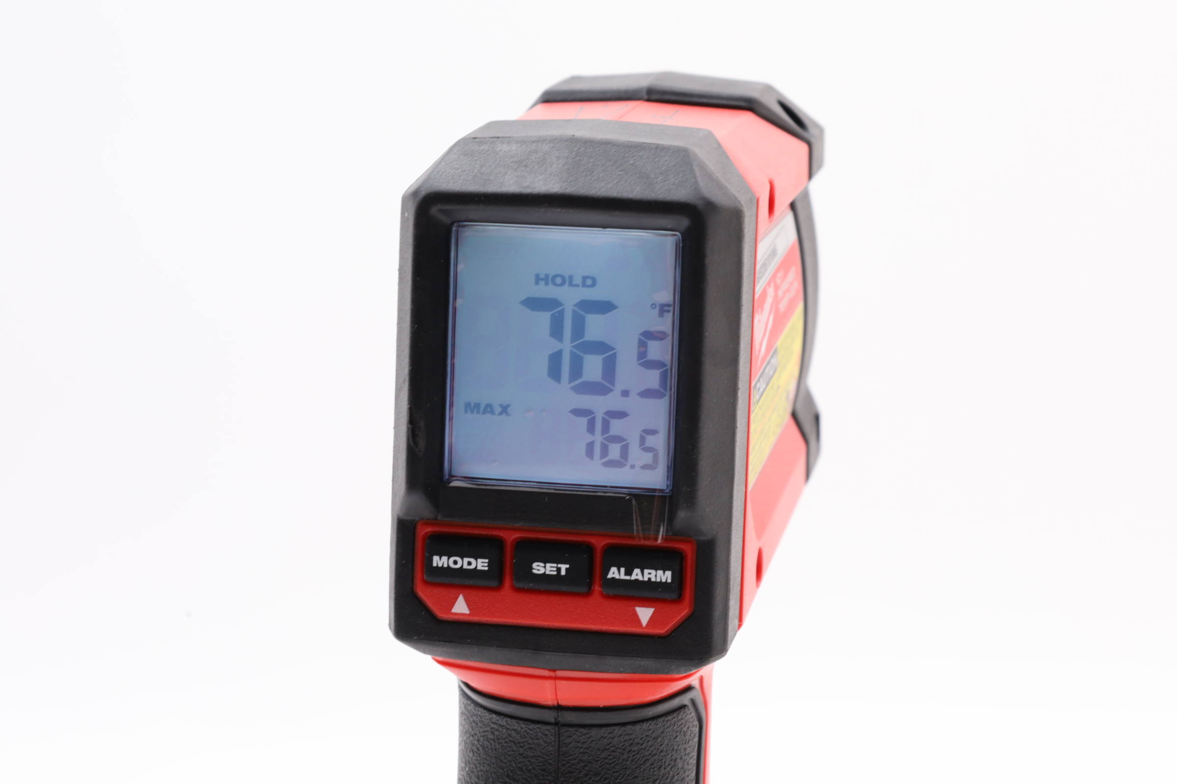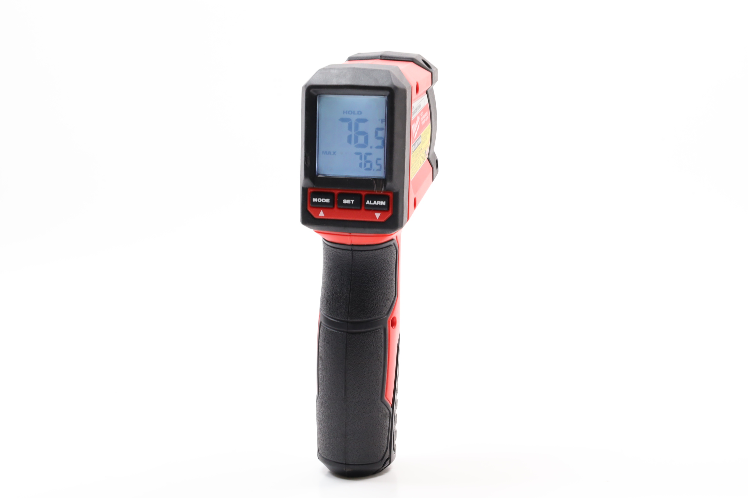 This infrared thermometer is a robust tool designed for a range of applications, from professional to industrial, offering precise temperature measurements from -22°F to 752°F. Its standout feature is a 10:1 distance-to-spot ratio, enabling accurate readings of a one-foot area from ten feet away. The device boasts a premium LCD display that ensures clarity in both indoor and outdoor environments, enhancing its versatility. User-friendly, it includes configurable high/low temperature alerts and multiple modes like hold, maximum, minimum, and average. Durability is a key aspect, with a design that includes a 7-point reinforced frame and a fully bumpered nose, ensuring it can withstand drops of up to 9 feet. The overmolded grip enhances handling, making it comfortable and easy to use, while the clear button functions simplify setup and operation.