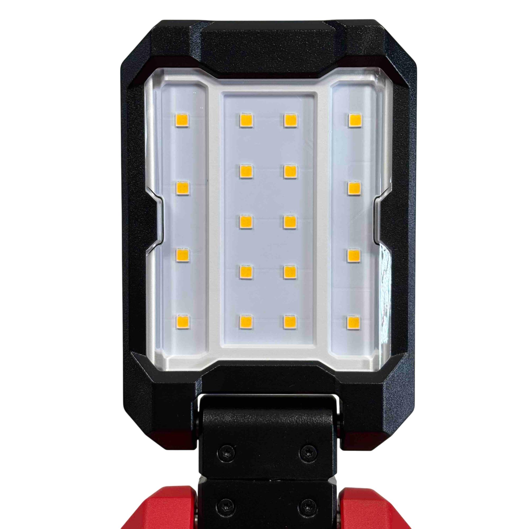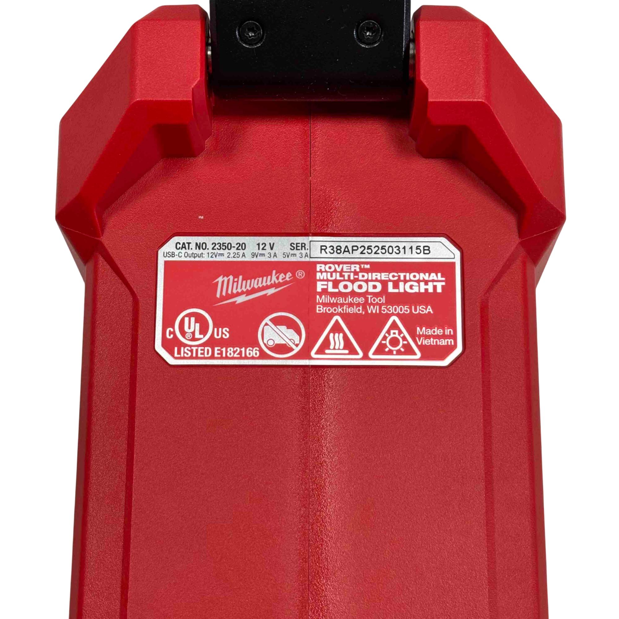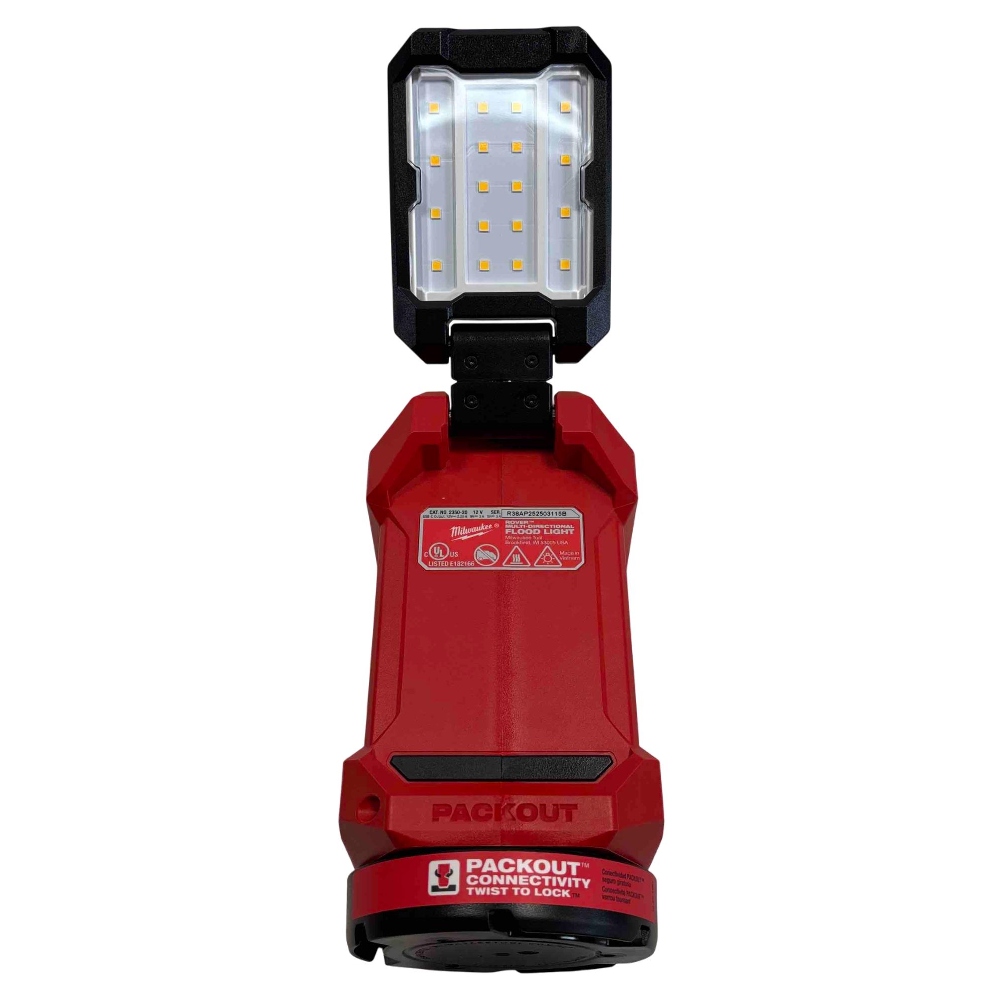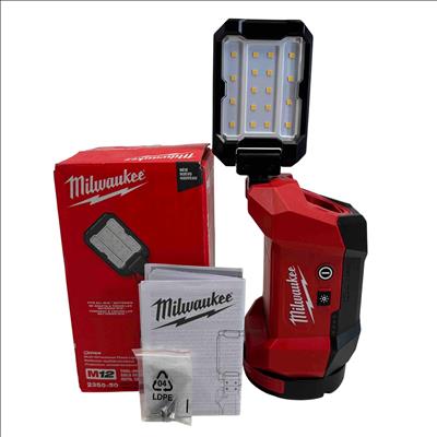 The Milwaukee 2350-20 M12 ROVER Multi-Directional Flood Light delivers versatile lighting with an adjustable reflector that provides wide area illumination. Designed to be compatible with all M12 batteries, this flood light features a sturdy red and black design ideal for various indoor and outdoor work environments, ensuring cord-free operation and enhanced visibility.