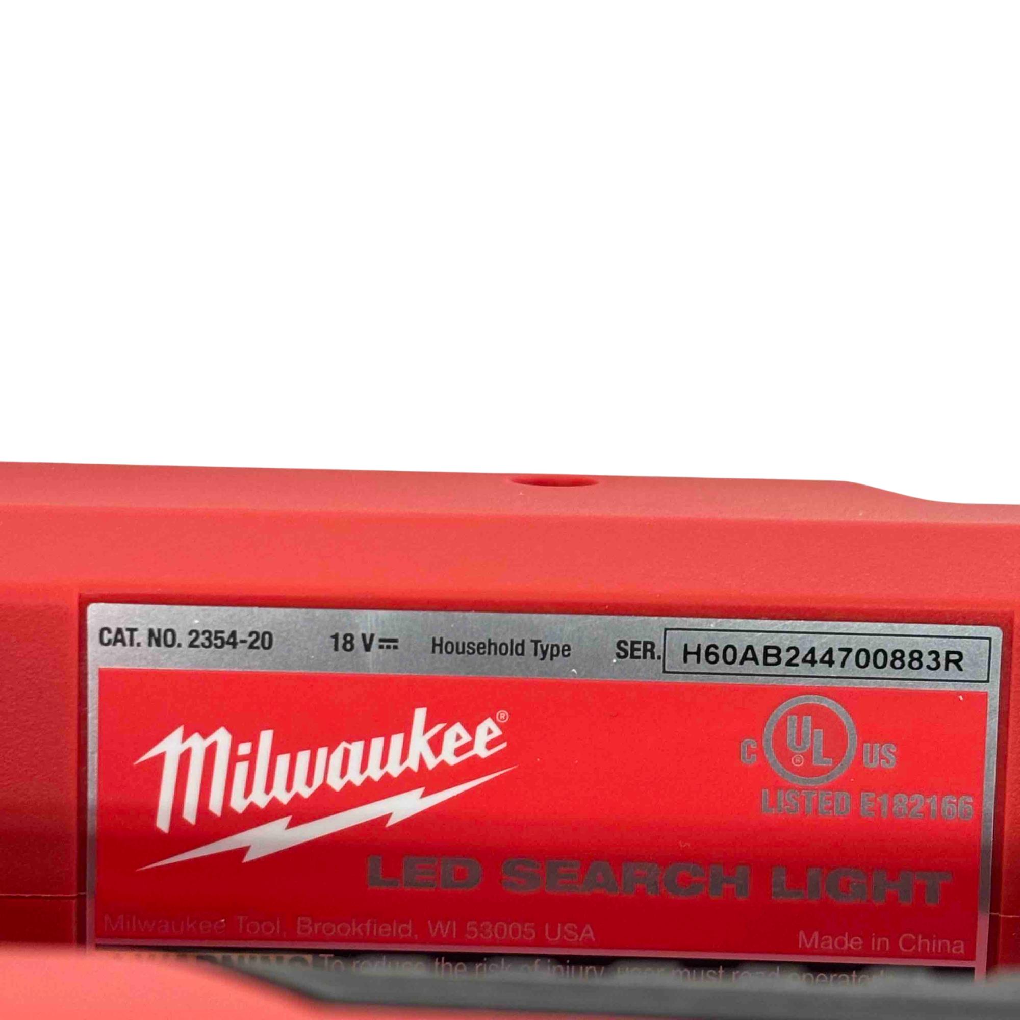 Illuminate your world with the Milwaukee 2354-20 M18 LED Search Light. This powerful, red and black tool is designed to deliver high-quality lighting in a portable, battery-operated format suited for any job site. With its durable construction and reliable performance, this light is an essential addition for professionals and DIY enthusiasts alike.