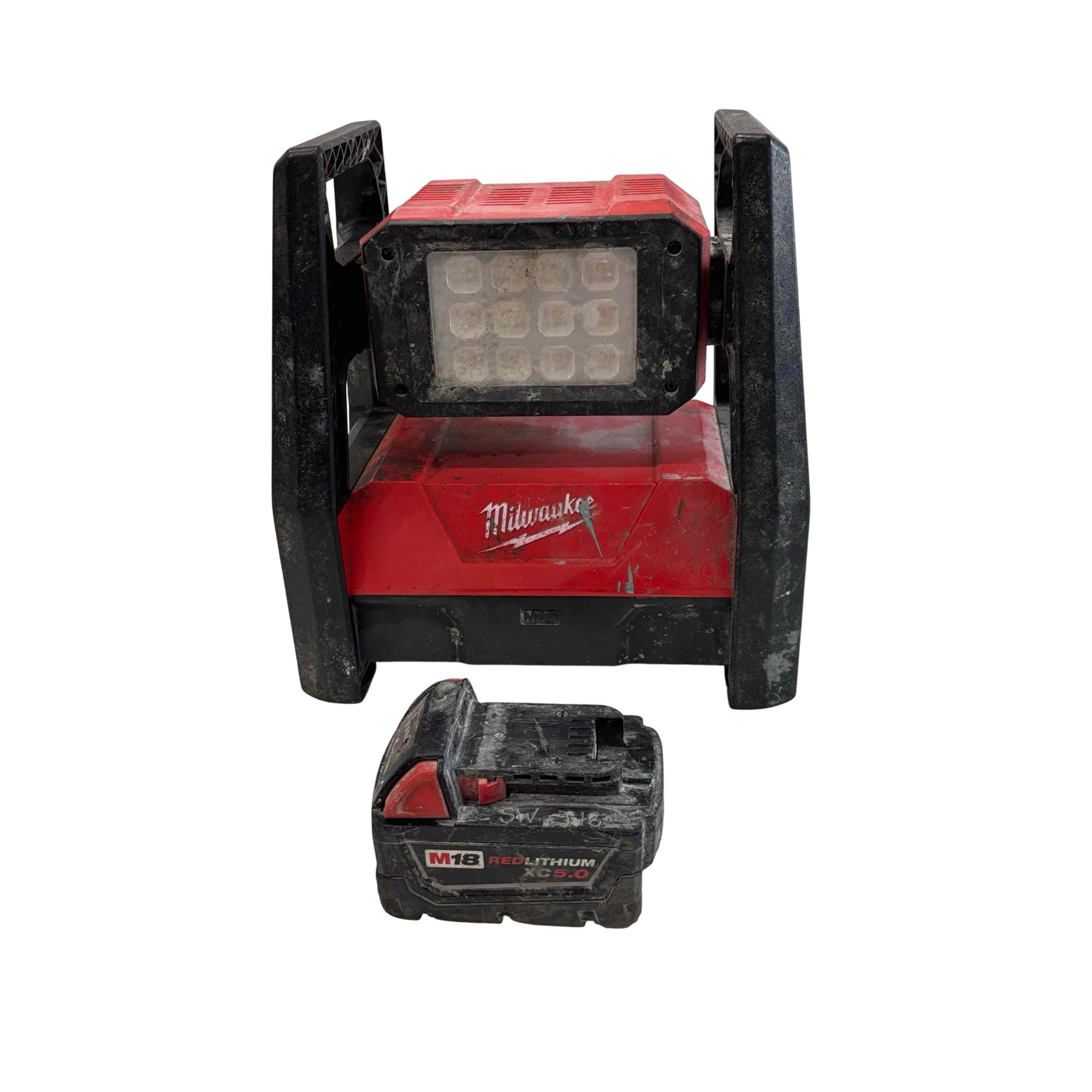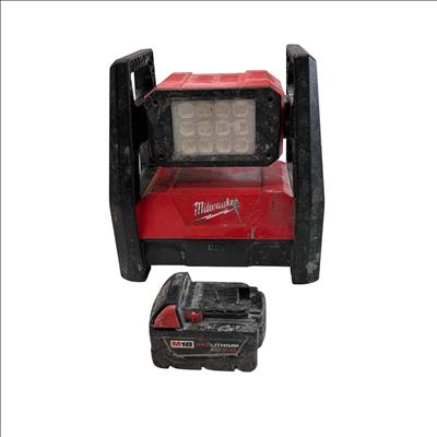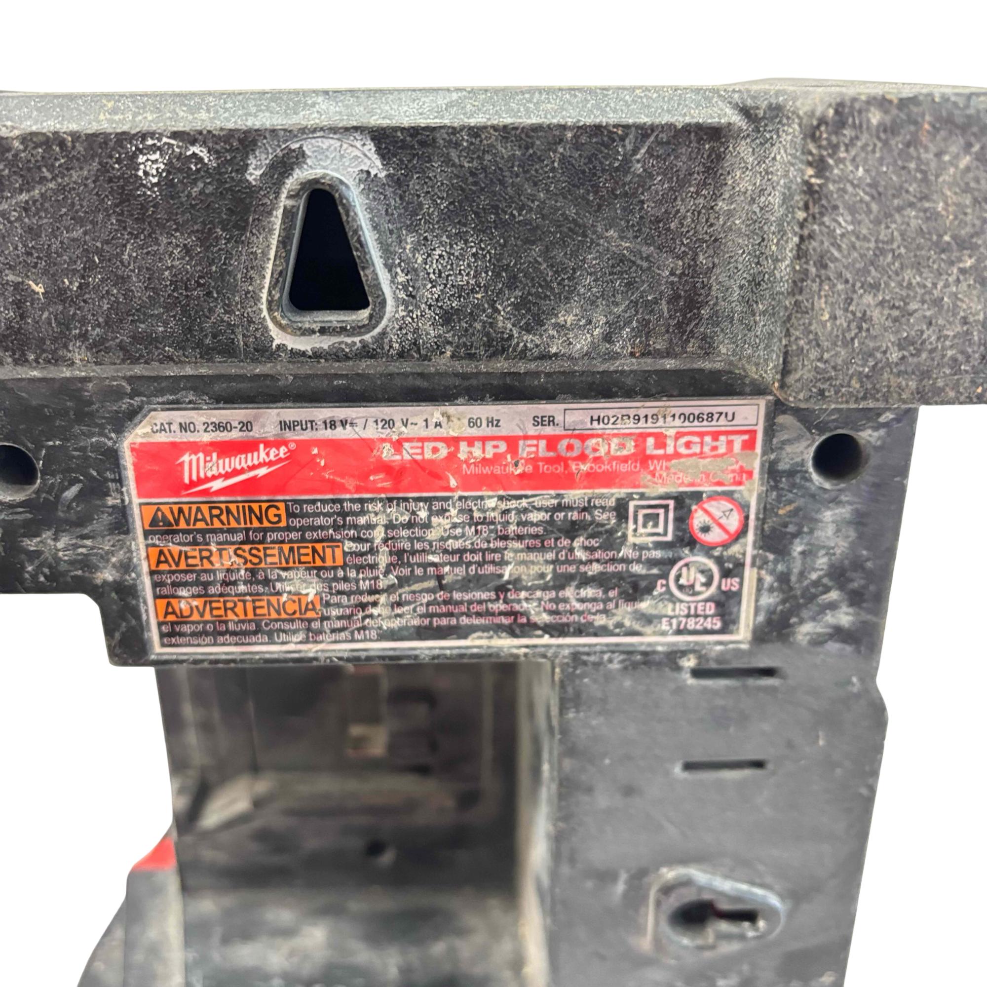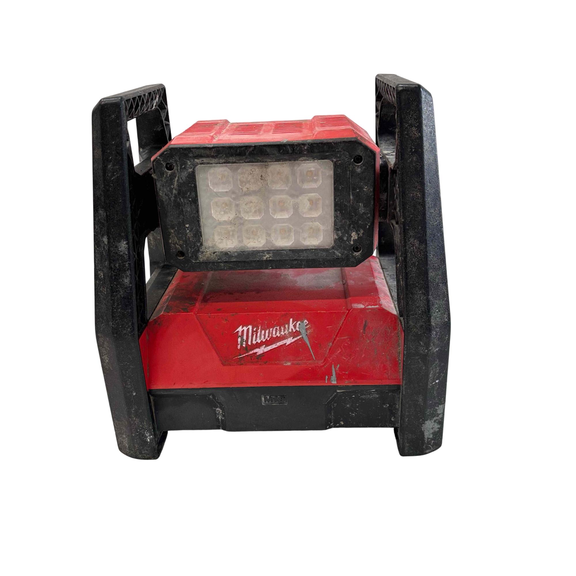 Milwaukee M18 Trueview LED HP Flood Light (Model 2360-20) is a durable and high-performance lighting solution designed for heavy-duty use. Featuring a robust red and black metal and plastic frame, it provides bright, clear illumination ideal for outdoor and worksite environments. Its sturdy construction includes a protective metal grate and a versatile adjustable frame for precise light positioning.
