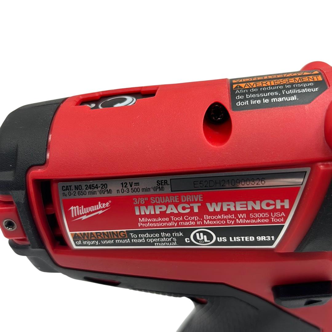 Experience the power and precision of the Milwaukee 2454-22 M12 FUEL 3/8" Square Drive Impact Wrench Kit. This kit includes a compact yet robust impact wrench, providing maximum torque for all your demanding applications. Complete with a charger and battery, its designed for efficiency and reliability in any professional setting.