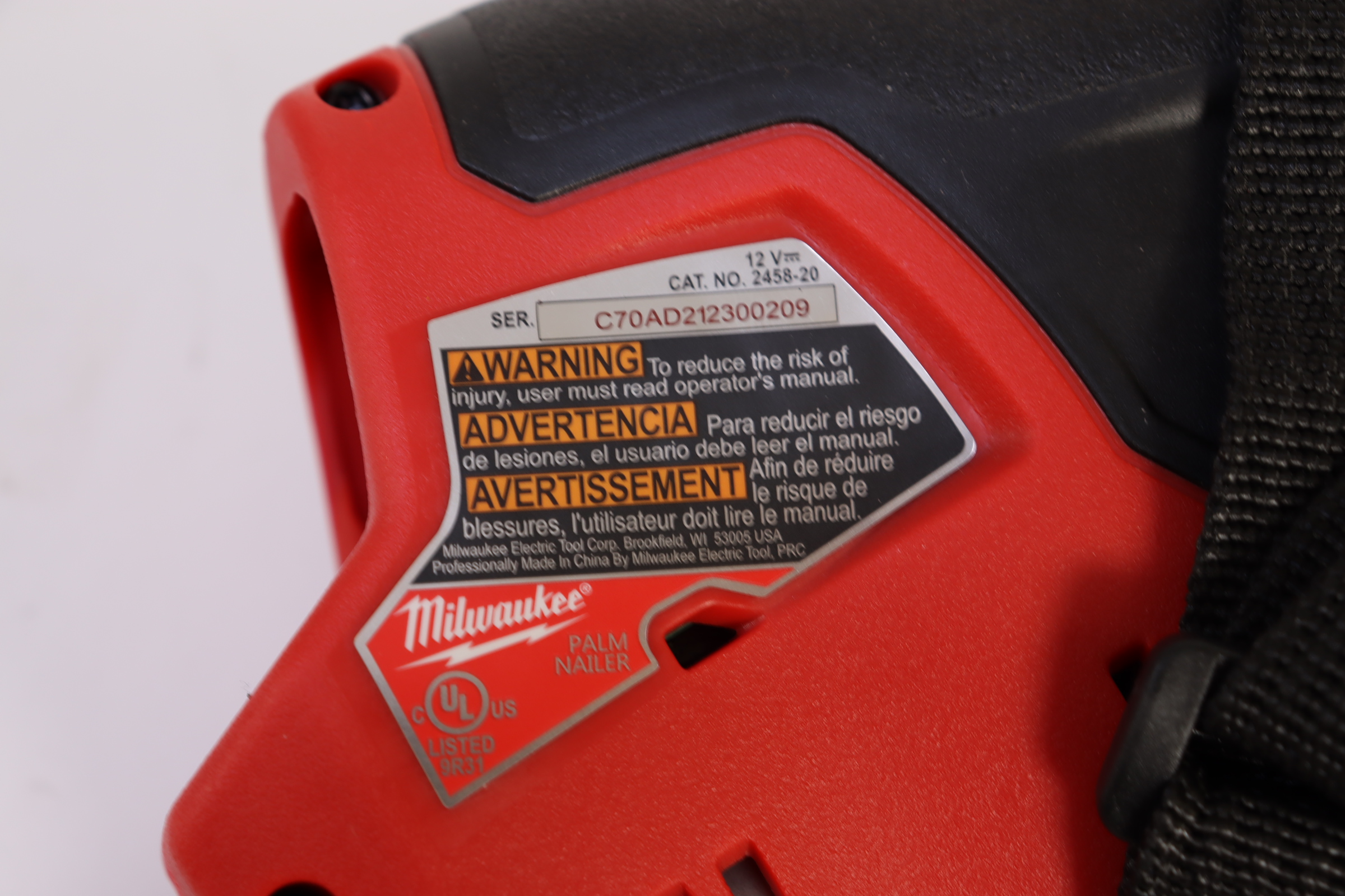 The Milwaukee M12 12-Volt Lithium-Ion Cordless Palm Nailer is a portable solution for professional nailing applications in places unreachable by a traditional nail gun. Its powerful impacting mechanism delivers 2.2 ft. lbs. of blow energy and with the M12 REDLITHIUM battery pack (sold separately), produces exceptional work per charge and superior performance in jobsite conditions. Featuring a 6D-16D magnetic collet for a secure hold on nails for easy 1-handed use, this tool has an ergonomic design for superior comfort and control no matter how long the job lasts.