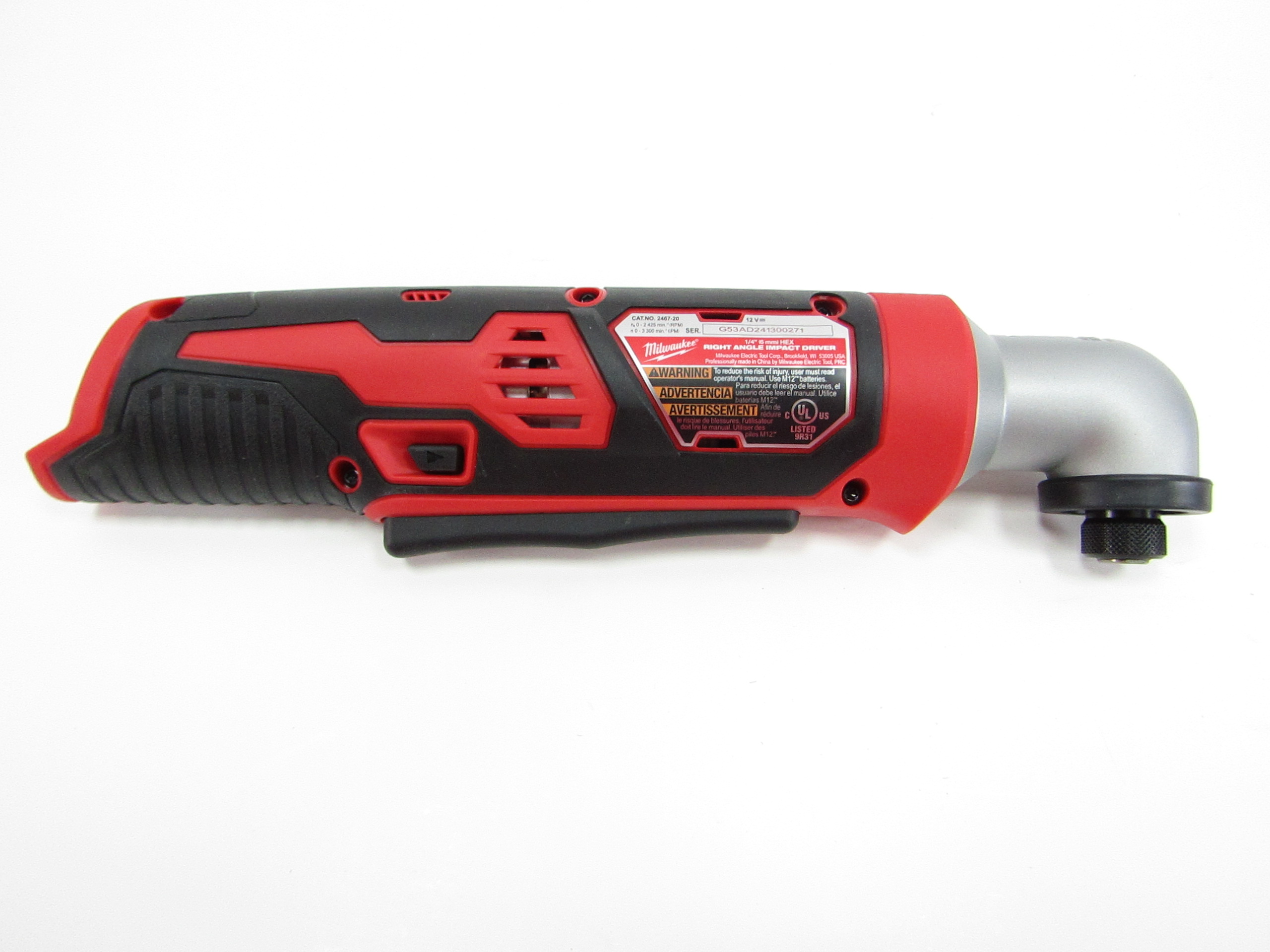 It drives faster in tighter spaces, than any other 12-Volt right angle impact driver on the market. With a 1/4 in. head diameter and the ability to use with most 1 in. bits, the M12 1/4 in. Hex Right Angle Impact Driver offers users maximum access for hard-to-reach fasteners. The tool provides the most power and highest RPM in its class and is optimized to run at full speed throughout the toughest applications. Variable speed with an extended paddle switch provides tradesmen maximum control and the ability to operate their tool from multiple grip positions.