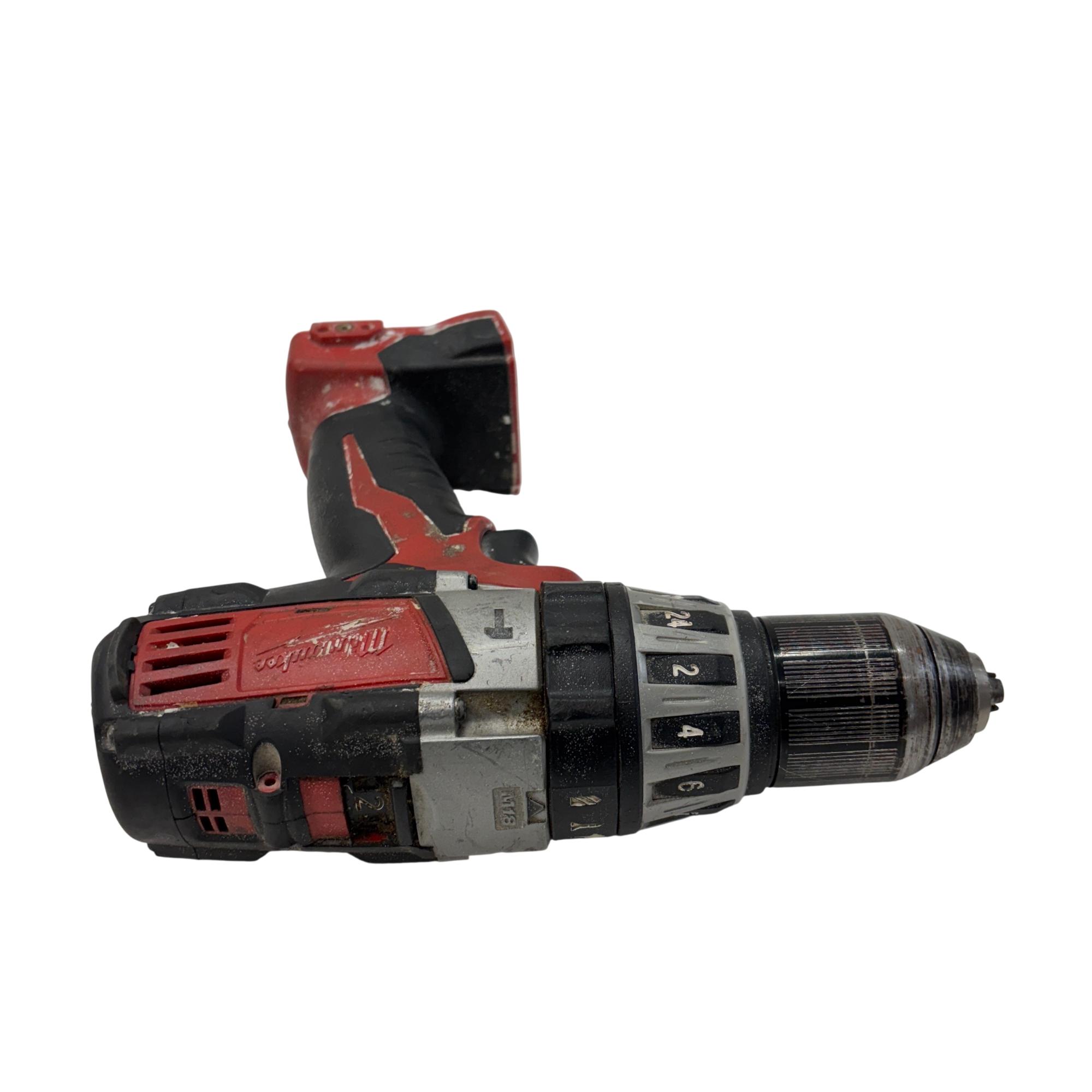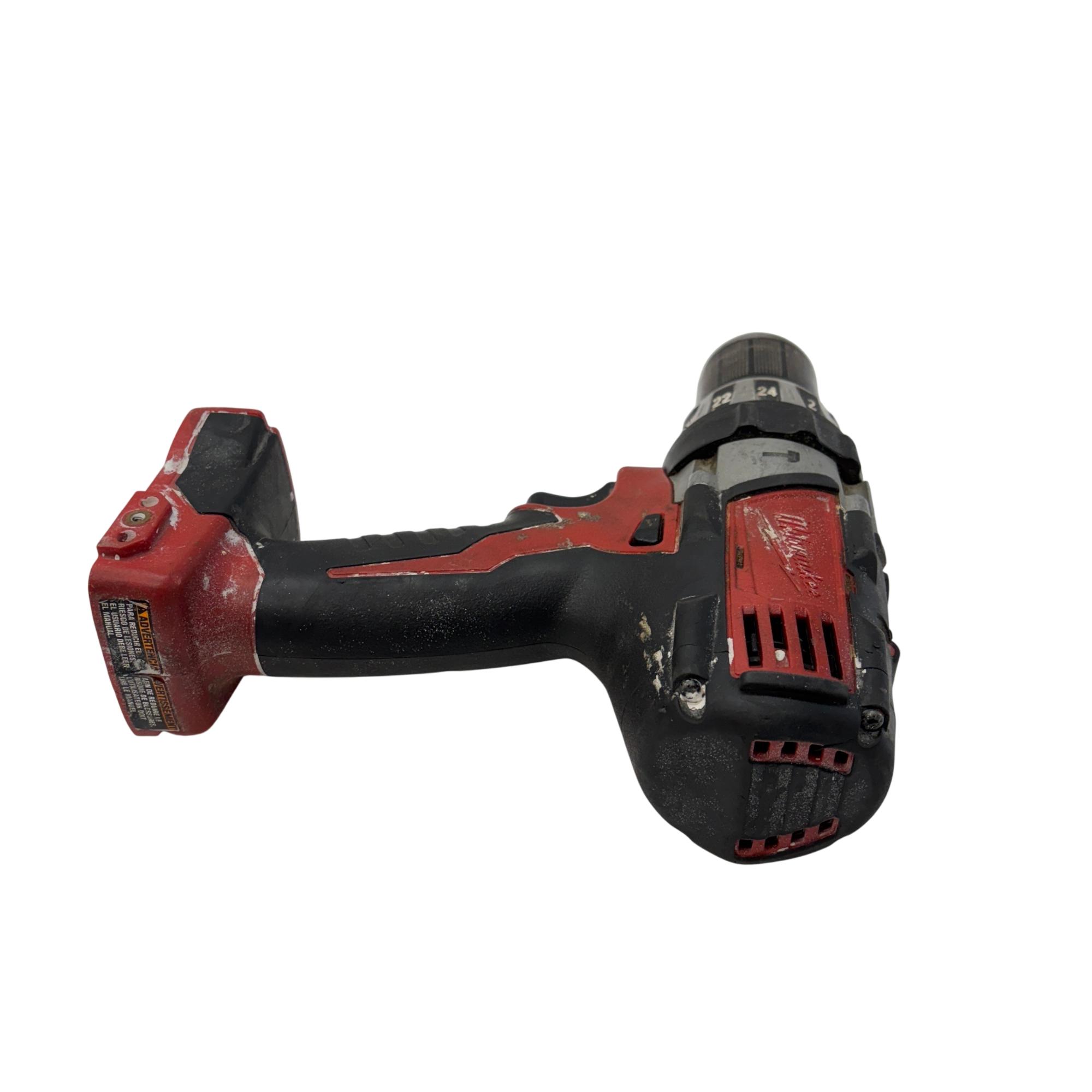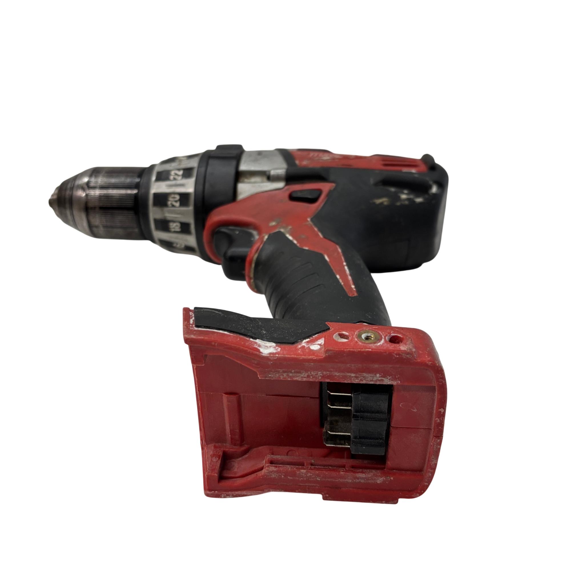 Milwaukee 2602-20 M18 18V Lithium-Ion Cordless 1/2" Hammer Drill/Driver delivers powerful performance with a high-speed motor capable of reaching up to 1700 RPM. This versatile tool features a durable red and black design optimized for heavy-duty drilling and driving tasks, suitable for professional and DIY use.