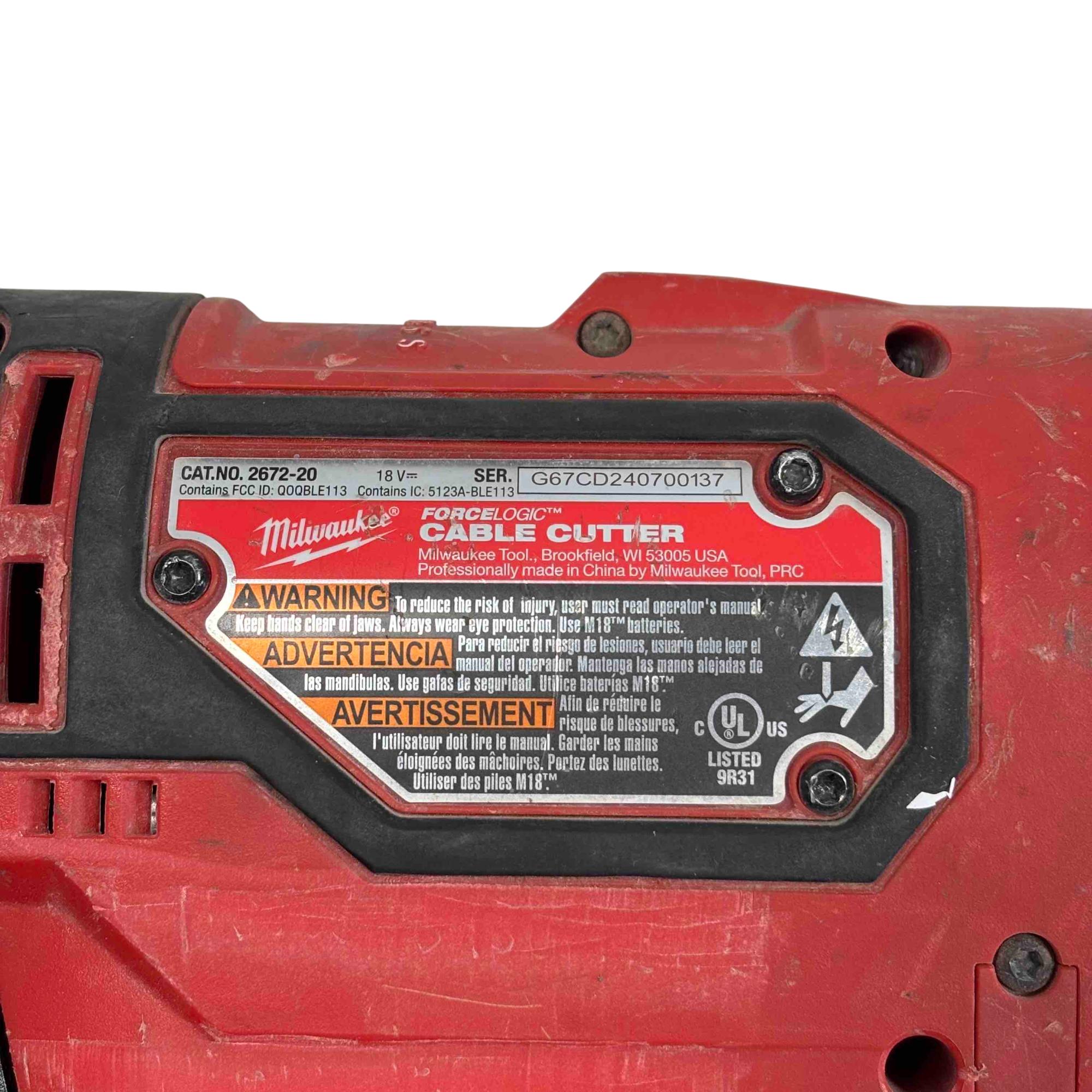 The Milwaukee 2672-20 M18 FORCE LOGIC Brushless Cordless Cable Cutter delivers powerful cordless cutting performance for copper and aluminum cables up to 35 mm in diameter. Featuring advanced hydraulic technology and a robust build, it provides precise and efficient cutting with enhanced control and durability.