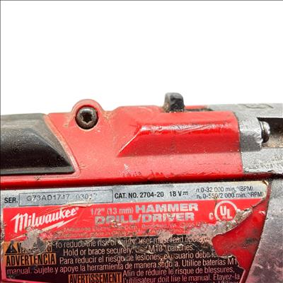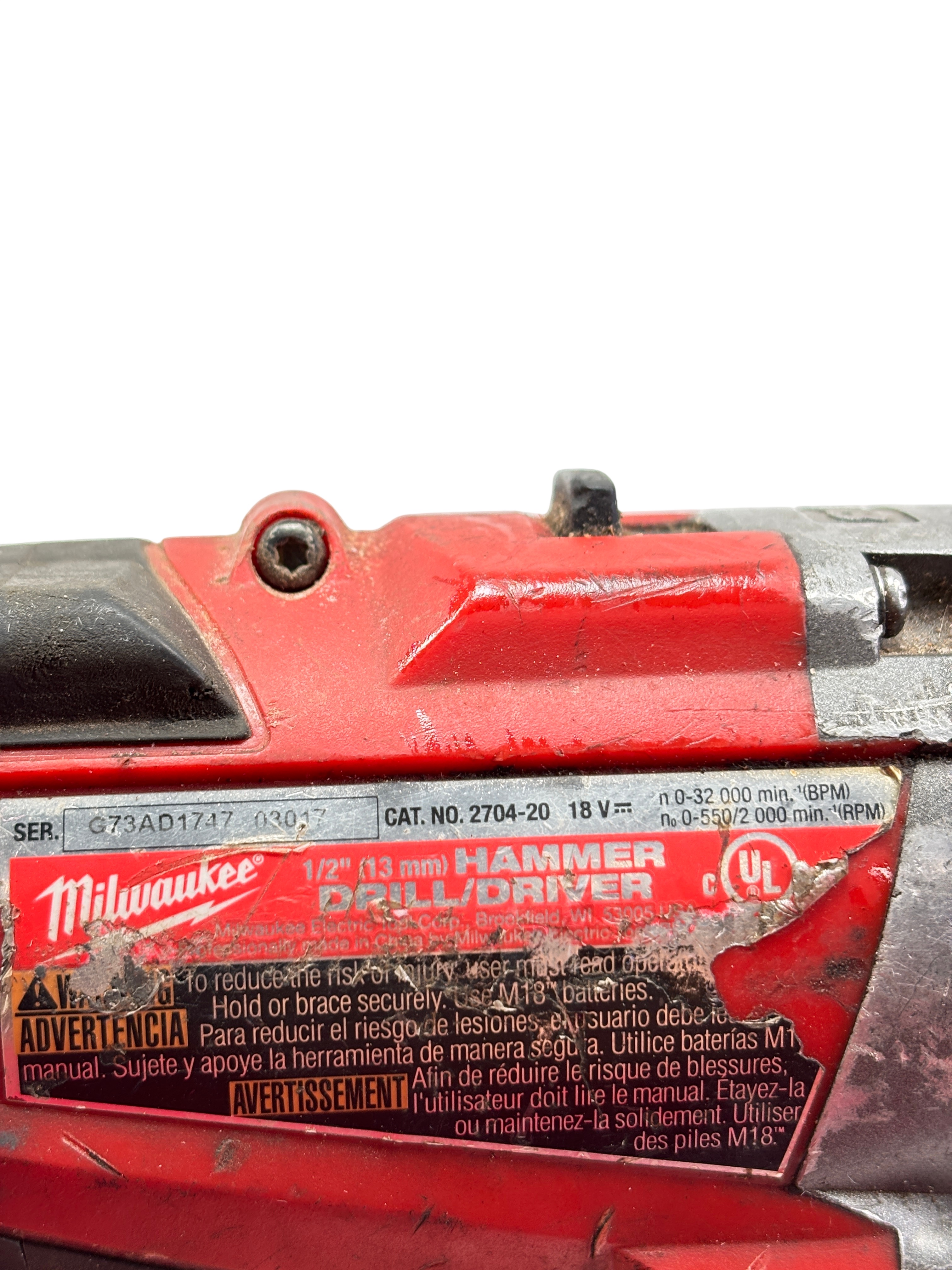 The Milwaukee 2704-20 Hammer Drill/Driver is a powerful 18V cordless tool designed for professional and DIY use. Featuring a 1/2 inch (13 mm) keyless chuck and hammer function, this drill delivers versatile performance for drilling and driving in various materials. Compatible with Milwaukee's M18 lithium-ion batteries, it offers reliable power and convenience. This unit is sold as the drill only, without battery or charger,