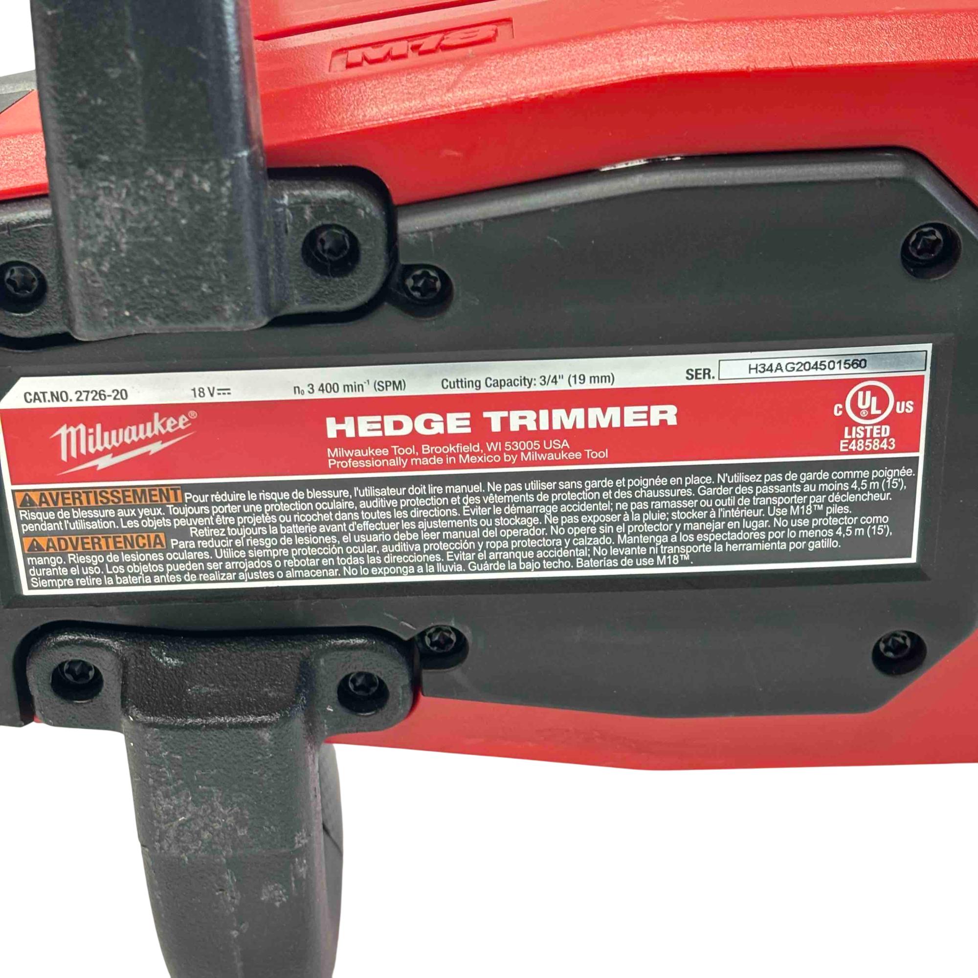Experience the ultimate in trimming performance with the Milwaukee M18 FUEL 2726-20 Brushless Cordless Hedge Trimmer. Designed for efficiency and precision, this powerful tool delivers a 3/4-inch cutting capacity and is perfect for both professional landscapers and DIY enthusiasts. With its durable, brushless motor and cordless convenience, you can tackle any trimming job with ease.