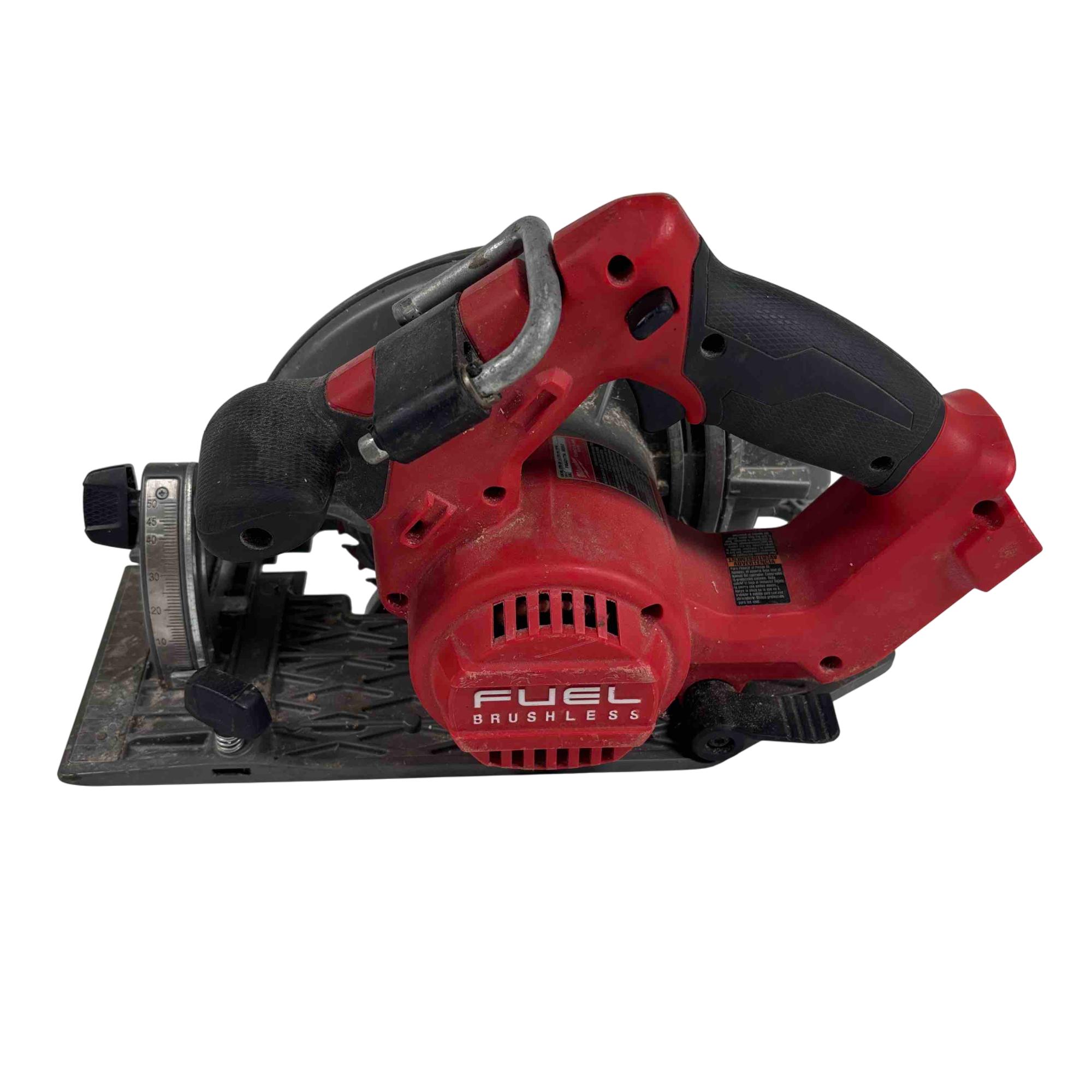 Utilizing a POWERSTATE brushless motor the M18 FUEL 7-1/4” Circular Saw cuts faster than corded counterparts. Weighing in at only 9 lbs with battery pack, the saw is up to 40% lighter than competitive corded circular saws, without sacrificing cut depth or performance. REDLINK PLUS Intelligence has the most advanced system of cordless power tool electronics, providing optimized performance and overload protection by using total system communication between tool, battery, and charger. Features an LED light to increase accuracy in low light situations and a rafter hook for easy storage in-between cuts. It also features a magnesium shoe as well as upper and lower guards to reduce tool weight while not sacrificing durability.