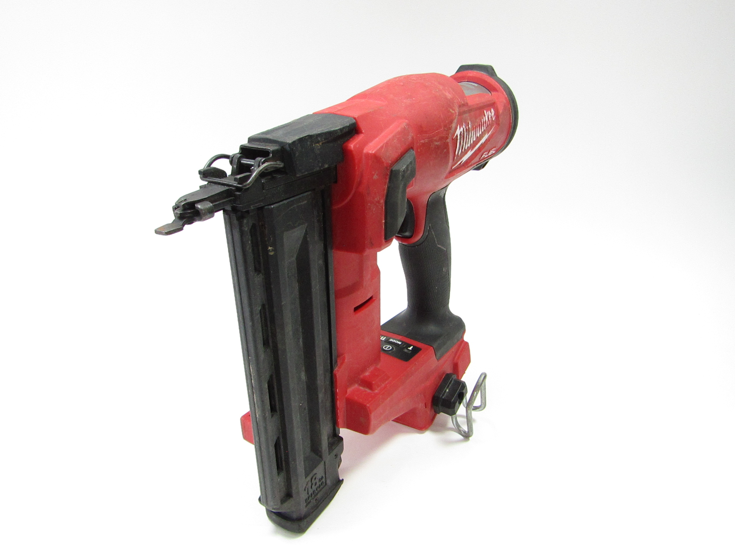 A high-performance tool for professional carpenters and remodelers, offering the feel of a pneumatic nailer without the need for compressors or hoses. This cordless nailer is powered by an efficient, brushless motor and boasts a magazine capacity of 110 nails, accommodating nail sizes from 5/8" to 2-1/8". It features both sequential and contact actuation firing modes, ensuring versatility and precision in various applications. The side-load magazine design enhances ease of use, and the nailer is capable of seamlessly driving 2” brads into solid oak with no ramp-up time.