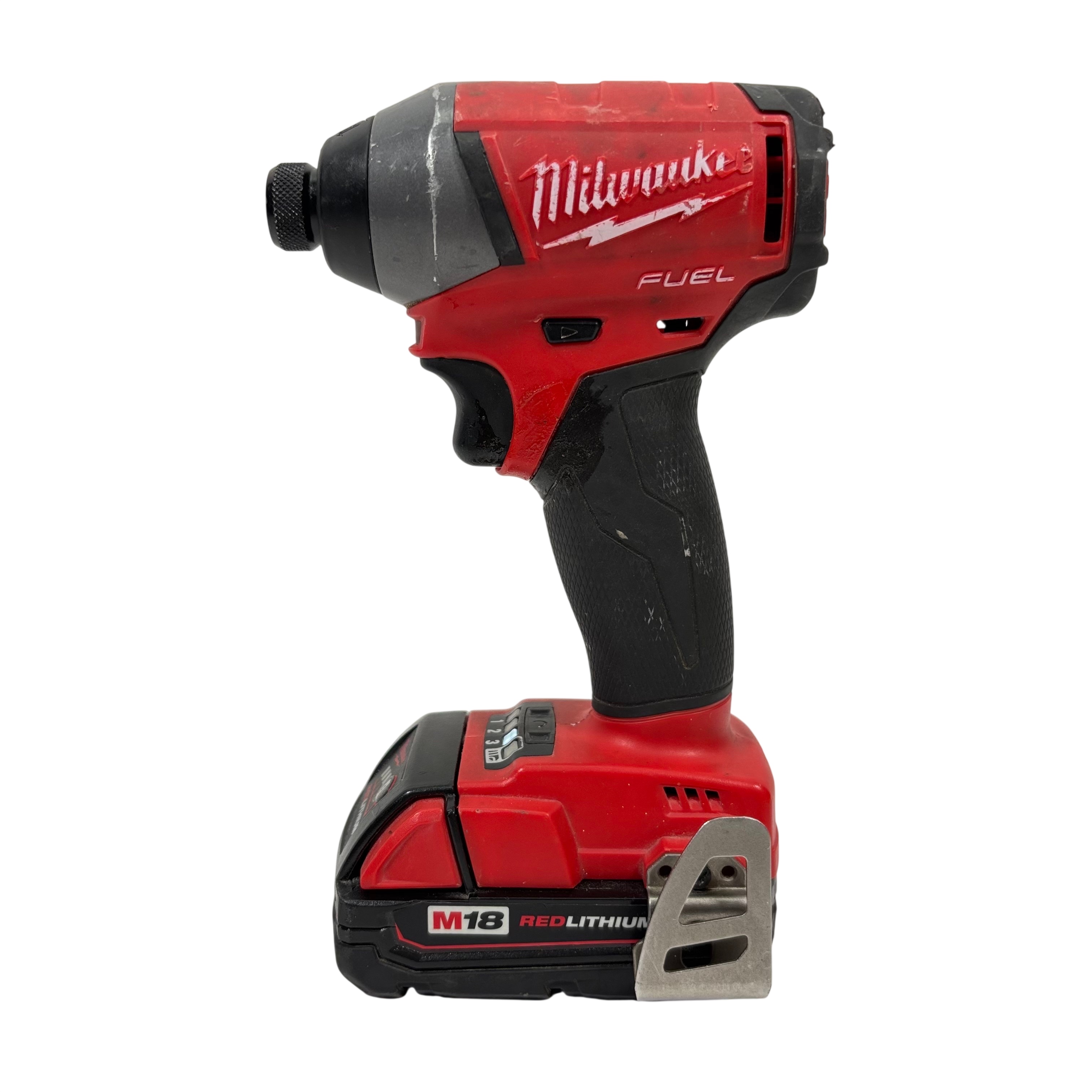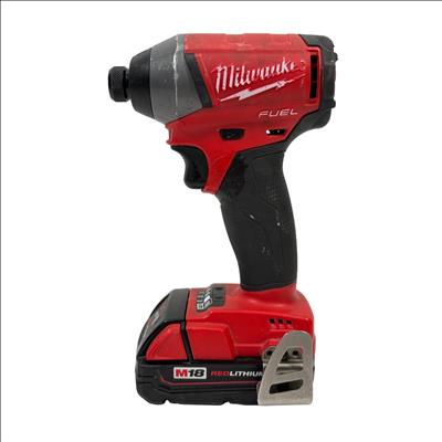 The Milwaukee M18 Fuel 1/4" Hex Impact Driver delivers powerful 18V performance with a brushless motor designed for longer life and increased efficiency. Featuring a compact design and variable speed up to 3,000 RPM, this impact driver is ideal for fastening applications in tight spaces. The tool includes a REDLITHIUM lithium-ion battery for extended runtime and durability. Perfect for professionals and DIY enthusiasts, this cordless impact driver combines power, portability, and Milwaukee's trusted quality.