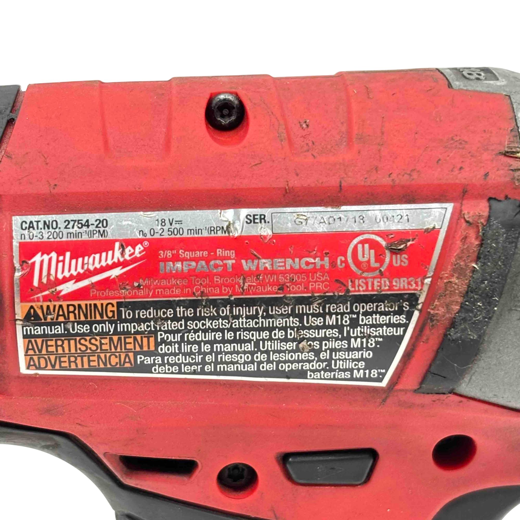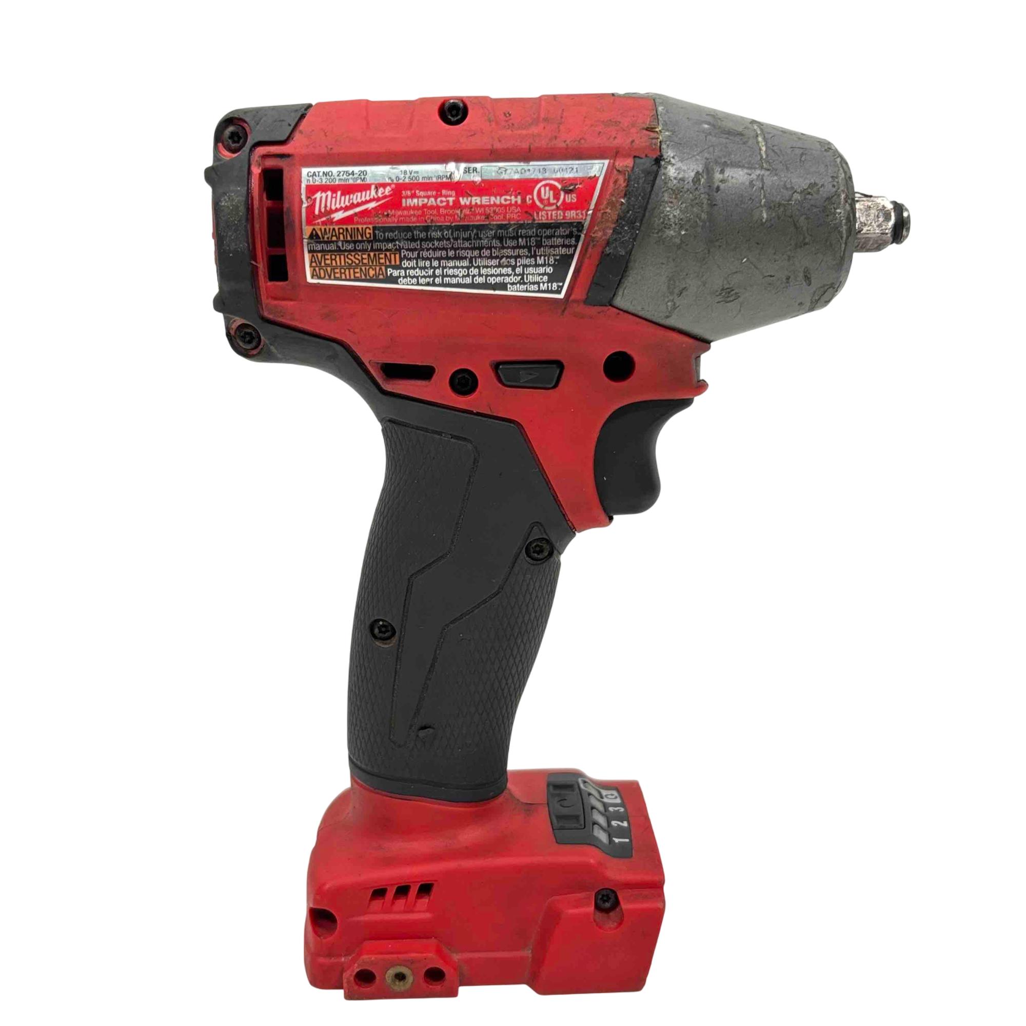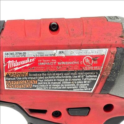 Milwaukee M18 FUEL 2754-20 18V Lithium-Ion Cordless 3/8" Compact Impact Wrench delivers high power and compact performance in a lightweight design, ideal for fastening and loosening bolts in tight spaces. Featuring brushless motor technology and a friction ring anvil, this tool provides precise control and durability for professional-grade applications.