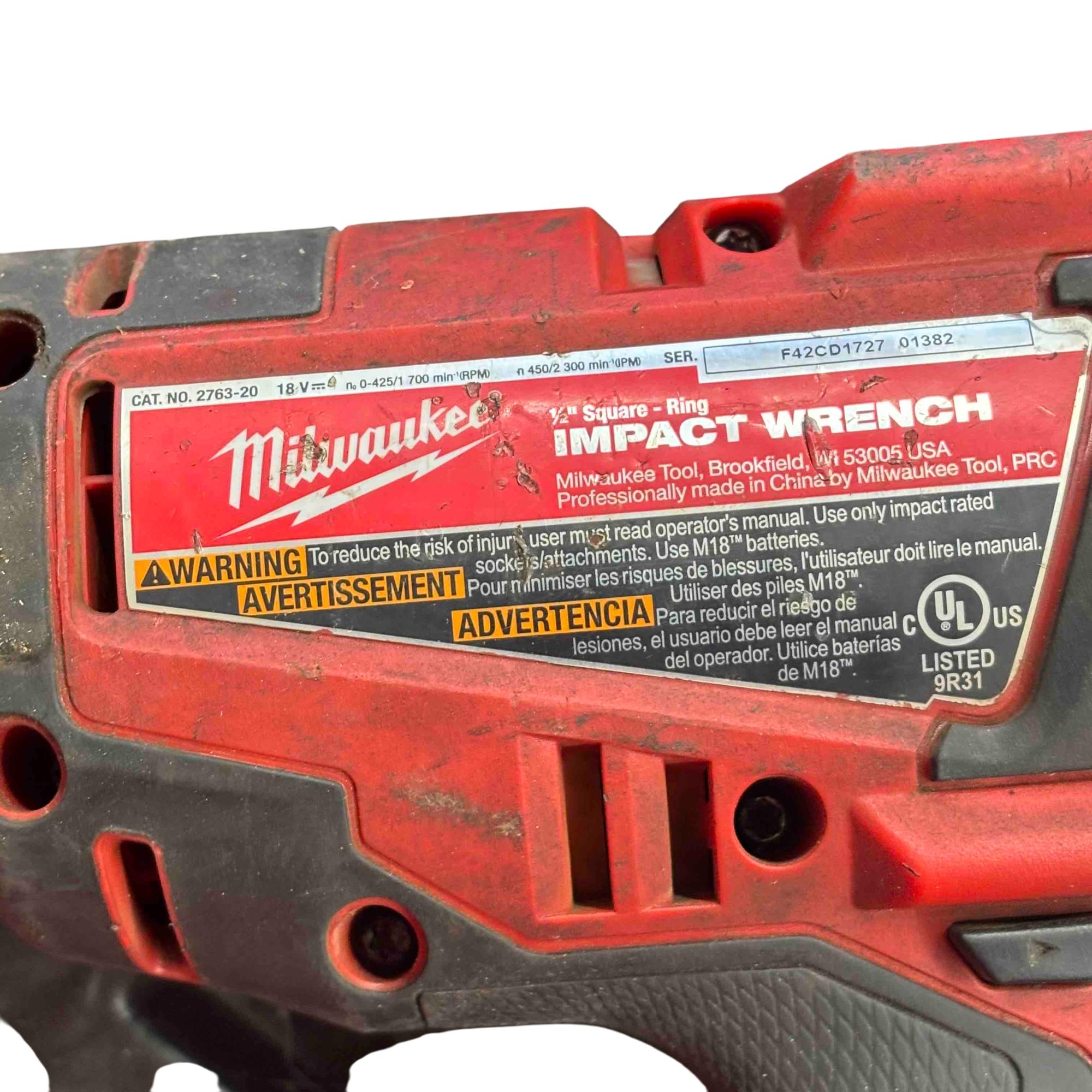 Unlock powerful torque and enduring performance with the Milwaukee 2763-20 M18 FUEL Brushless 1/2" Cordless Impact Wrench. Engineered for tough tasks, this high-performing tool comes with a durable M18 REDLITHIUM XC5.0 Battery, ensuring long-lasting battery life and maximum productivity. Ideal for both professional and DIY enthusiasts, take your projects to the next level with this robust and reliable impact wrench.