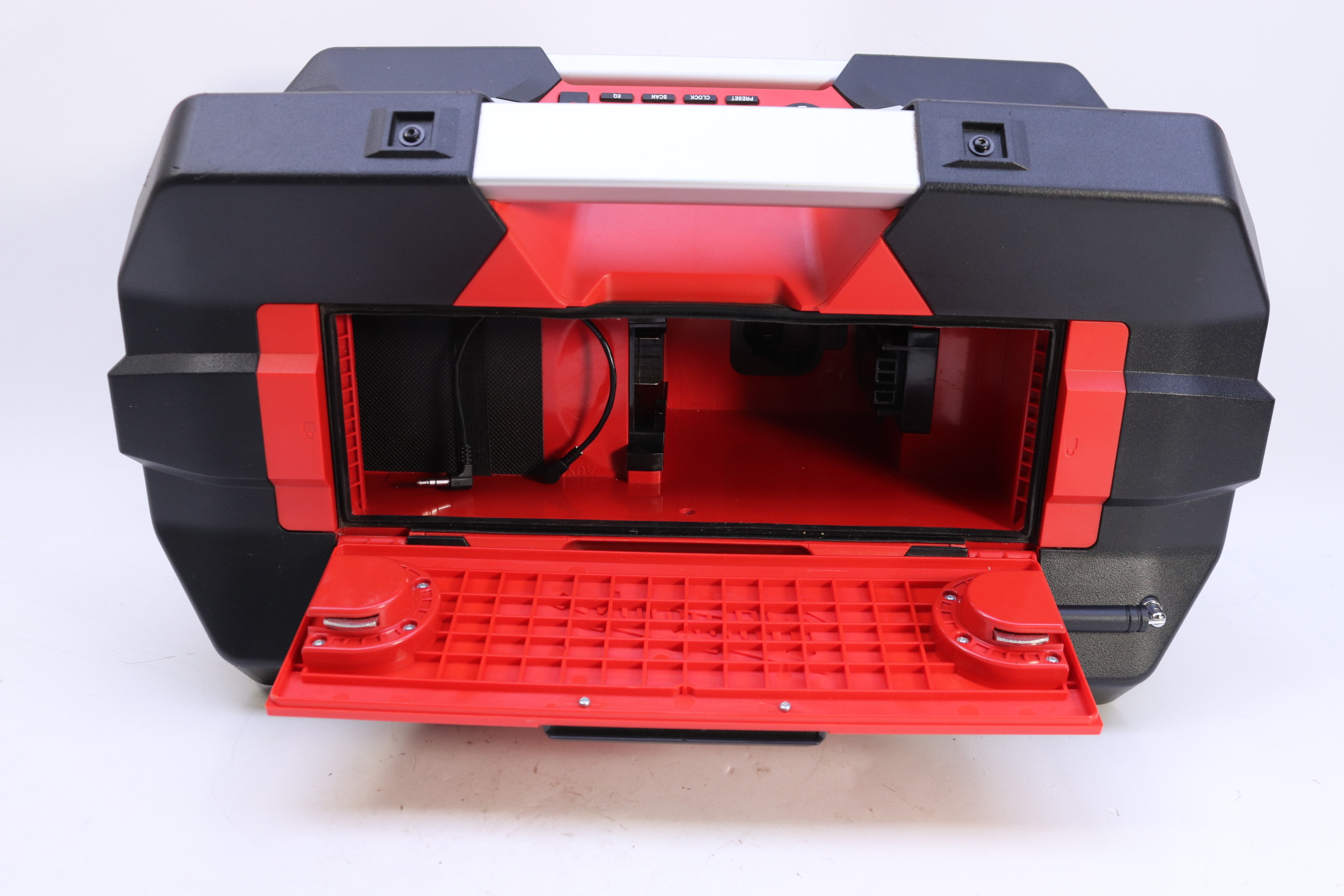 Powered by all Milwaukee 12V-28V batteries including M series, V series and NiCad; the Jobsite Radio delivers the highest reception accuracy and signal clarity in its class with an exclusive AM/FM tuner and digital processor. In addition, the Job Site Radio features premium speakers that produce a rich, full sound and a built in weather sealed MP3 compartment to protect MP3 players and other audio devices. Backed by legendary Milwaukee durability, a shock absorbing ABS polymer and steel construction protects internal components from weather and abusive job site conditions.