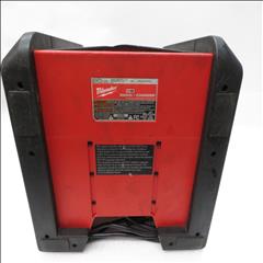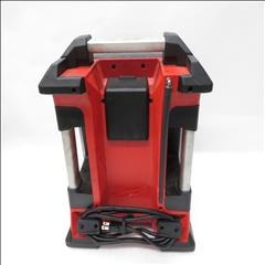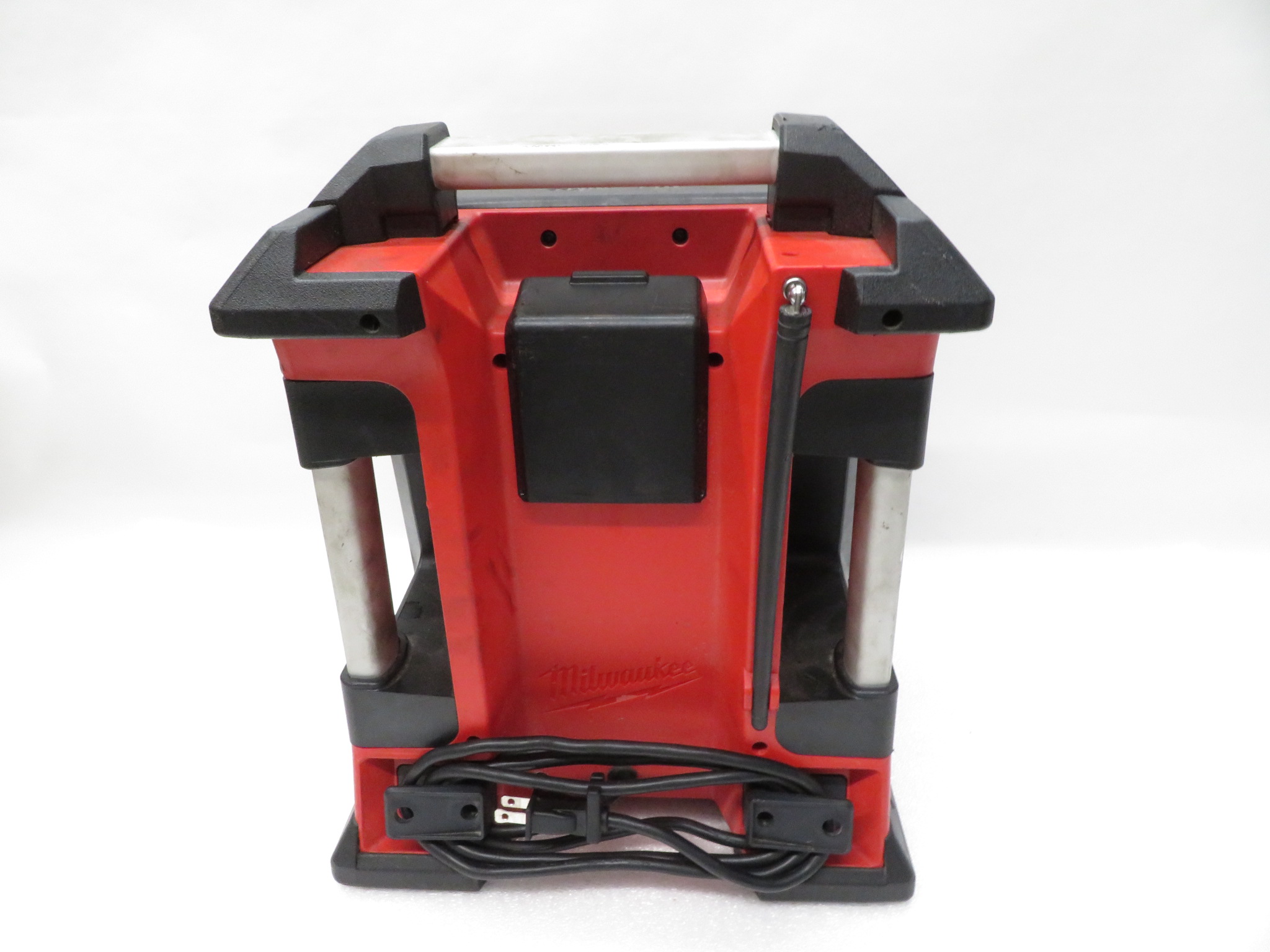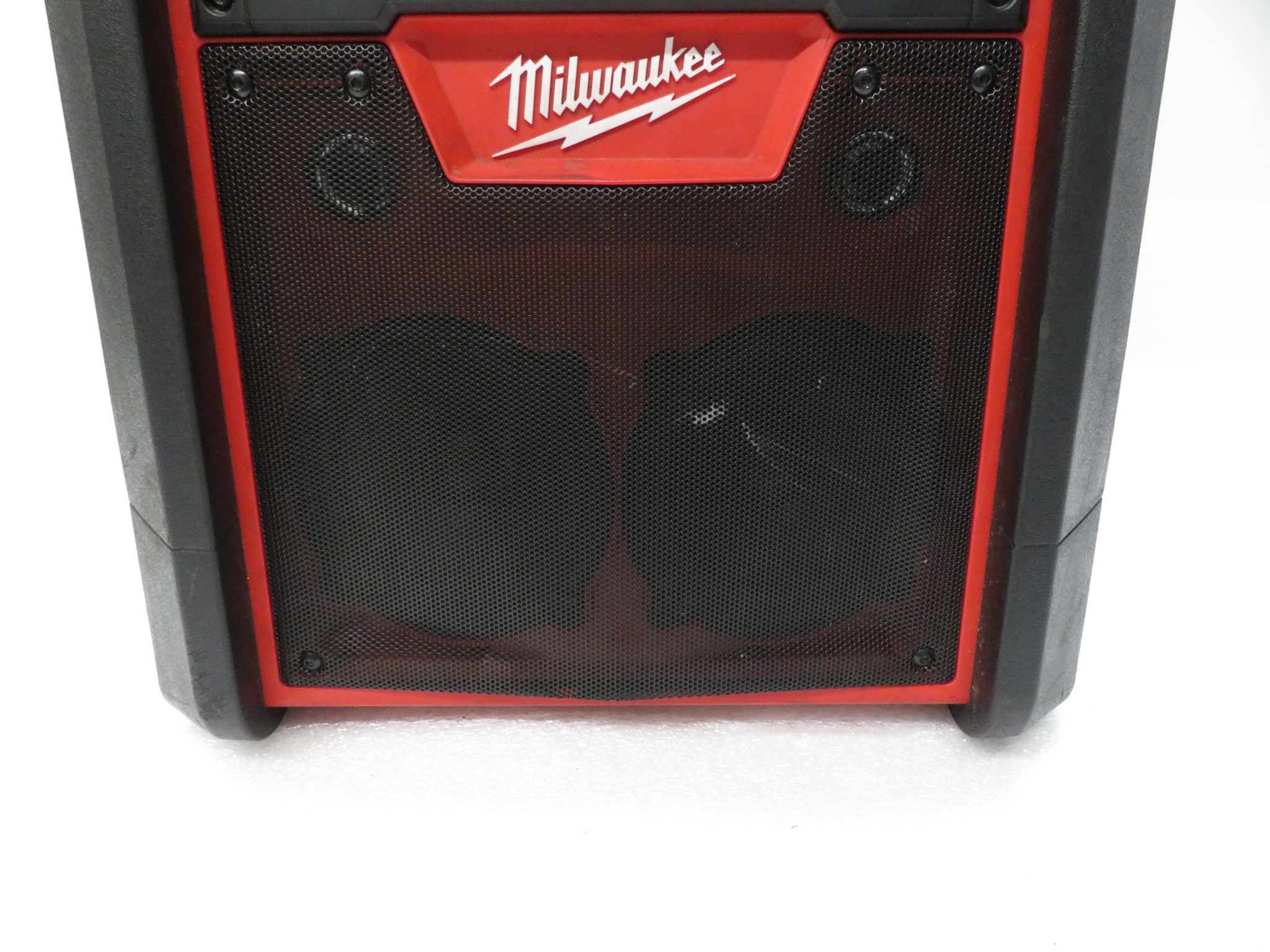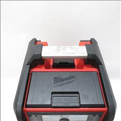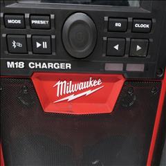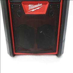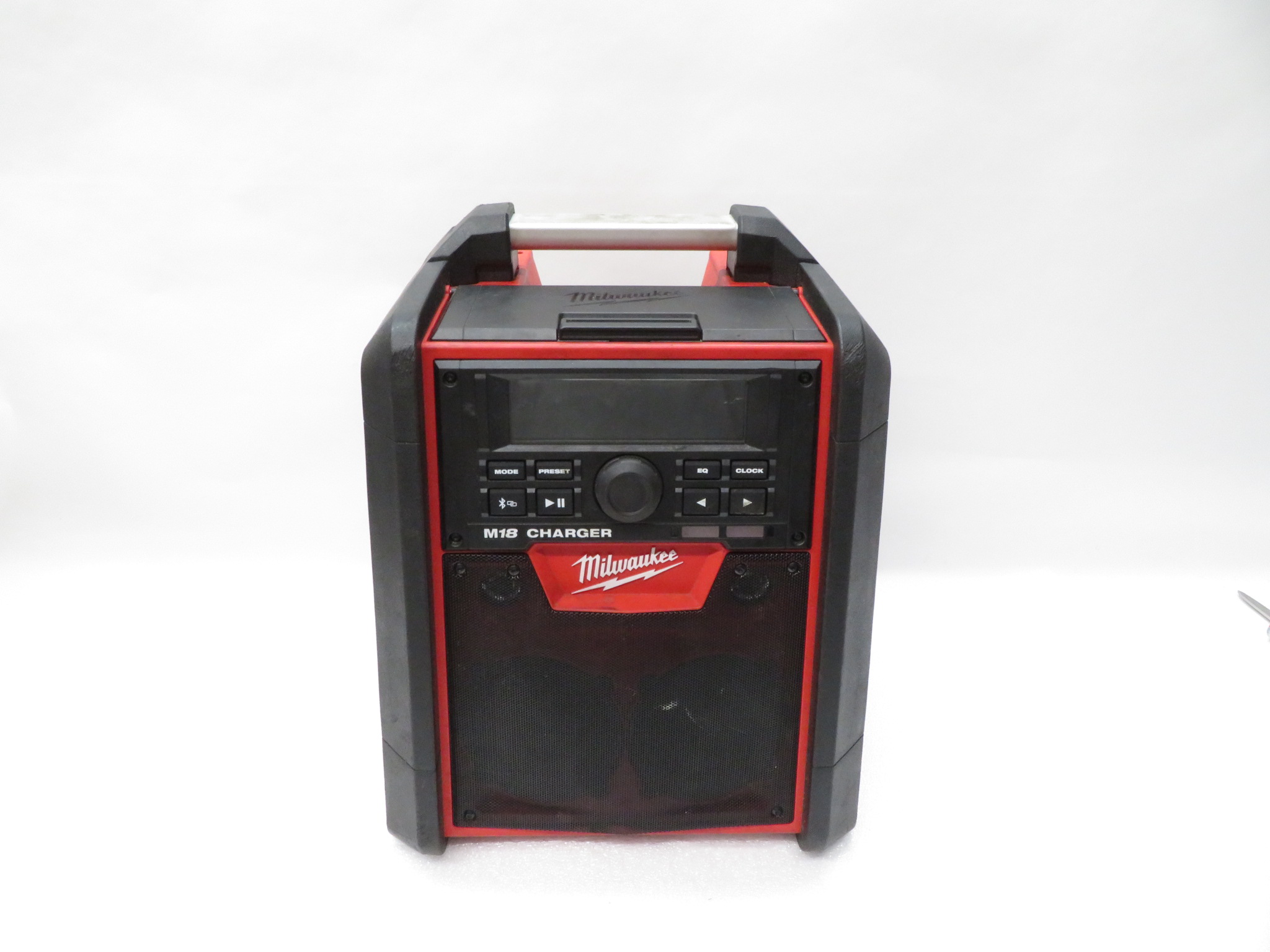A multifunctional device designed for use on construction sites, offering Bluetooth connectivity for wireless audio streaming from up to 100 feet away, along with robust reception and sound quality. It doubles as a charger for M18 batteries and features a USB port for faster device charging. The unit is built to withstand harsh conditions with a reinforced roll cage and weather-sealed storage compartment for small items and smartphones. It also includes premium speakers, a 40-Watt amplifier, and customizable sound settings for an enhanced audio experience.