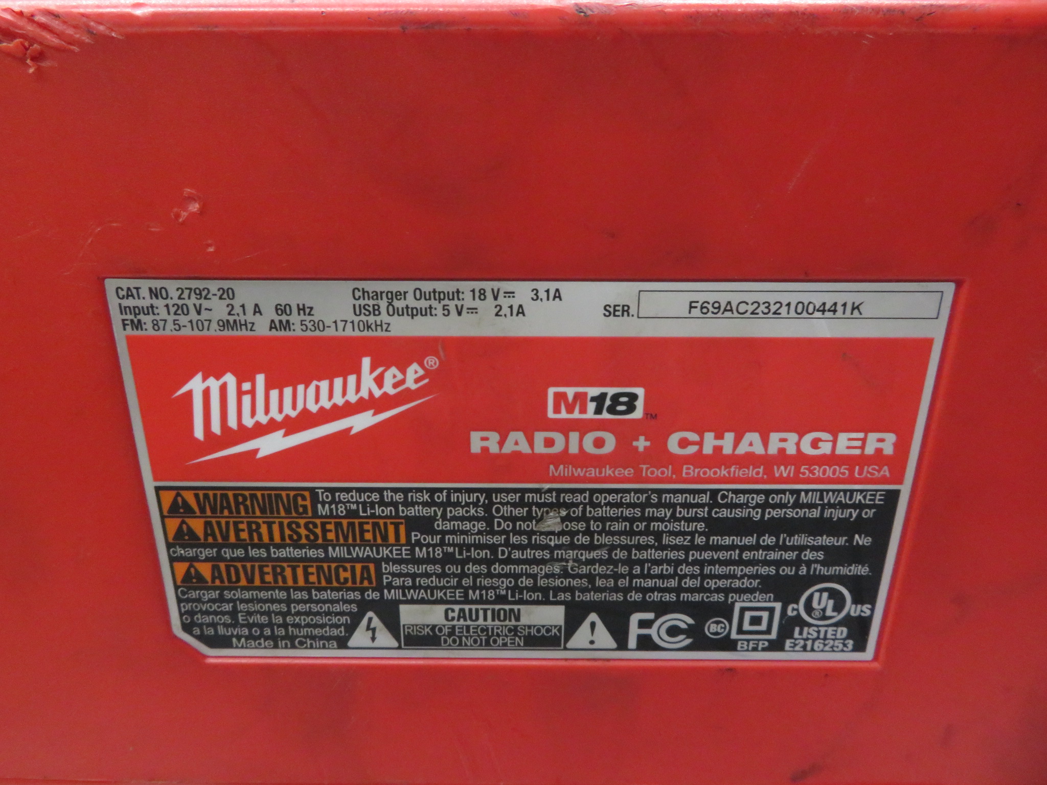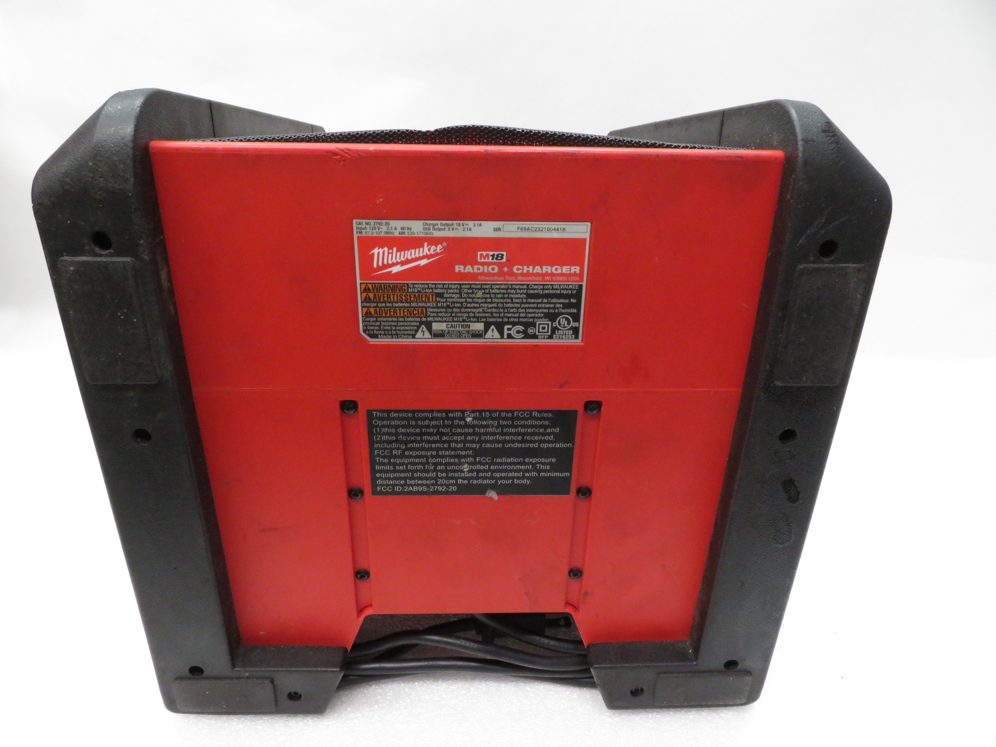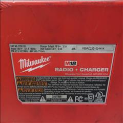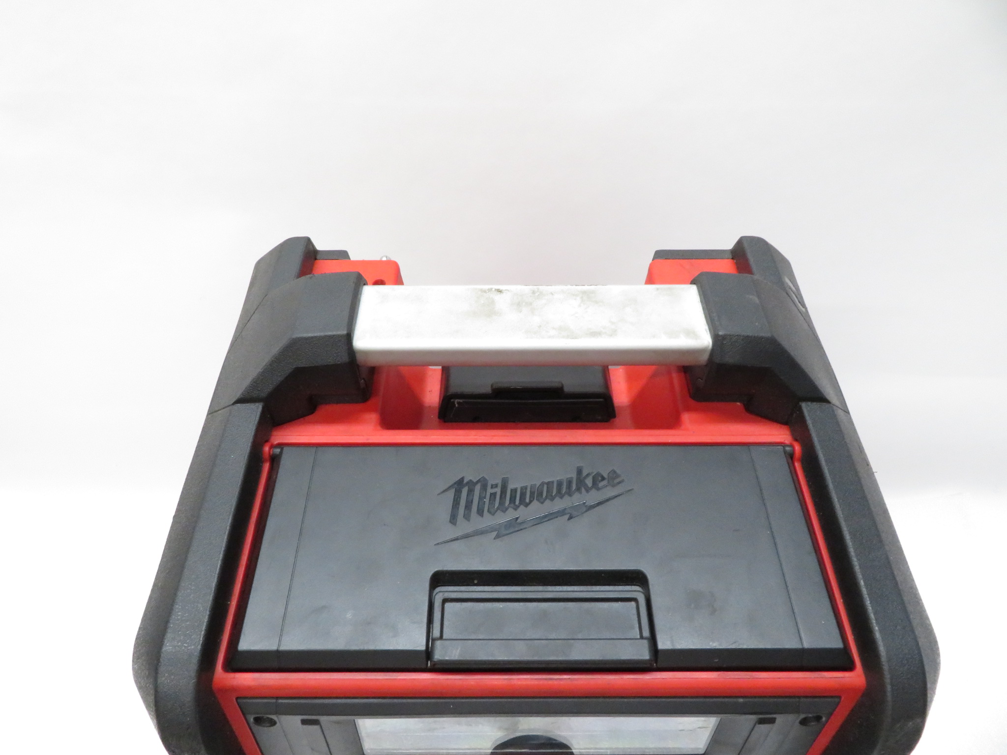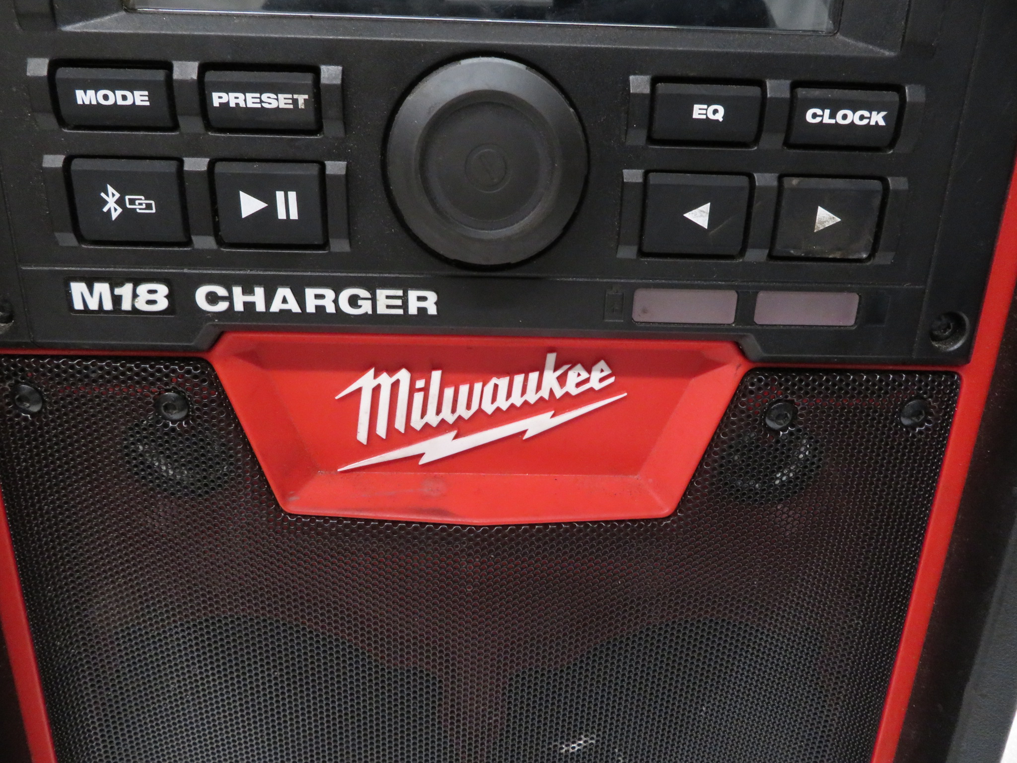 A multifunctional device designed for use on construction sites, offering Bluetooth connectivity for wireless audio streaming from up to 100 feet away, along with robust reception and sound quality. It doubles as a charger for M18 batteries and features a USB port for faster device charging. The unit is built to withstand harsh conditions with a reinforced roll cage and weather-sealed storage compartment for small items and smartphones. It also includes premium speakers, a 40-Watt amplifier, and customizable sound settings for an enhanced audio experience.