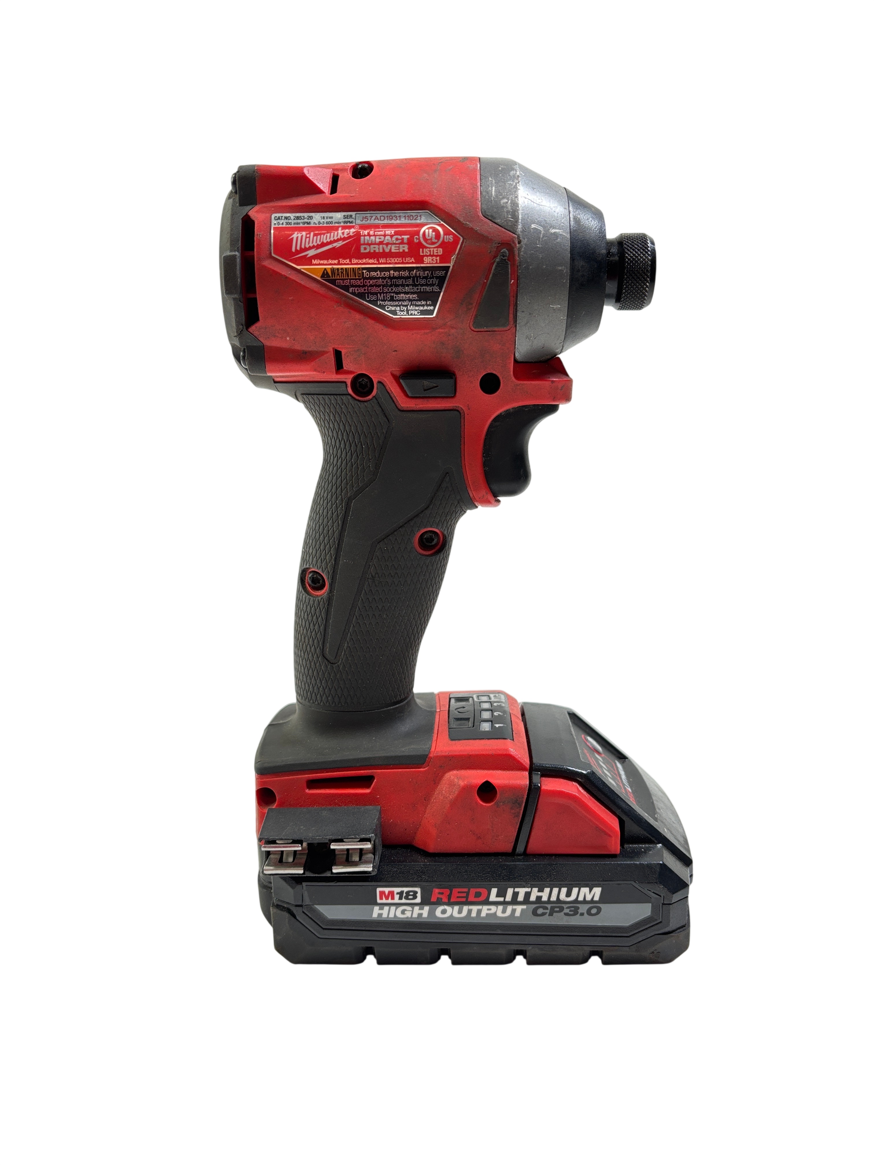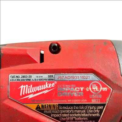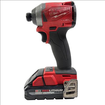 The Milwaukee 2853-20 M18 FUEL Cordless Impact Driver features an 18V REDLITHIUM High Output CP3.0 battery that delivers superior power and runtime. This compact impact driver is equipped with a brushless FUEL motor for increased efficiency and durability. It includes a 1/4-inch hex chuck suitable for impact-rated sockets and attachments, making it ideal for professional fastening applications. Lightweight and ergonomically designed, this tool is perfect for demanding job sites where power and portability are essential.