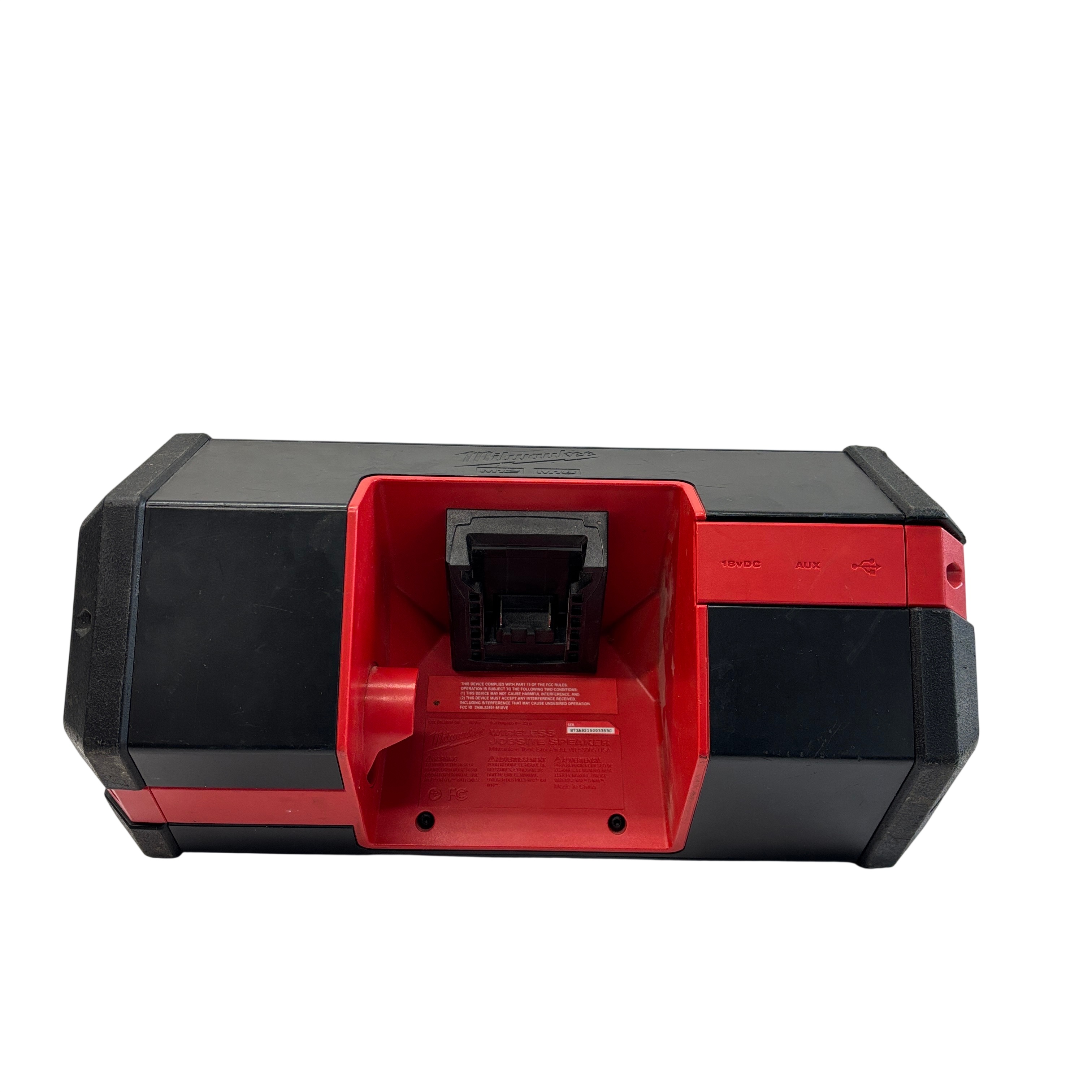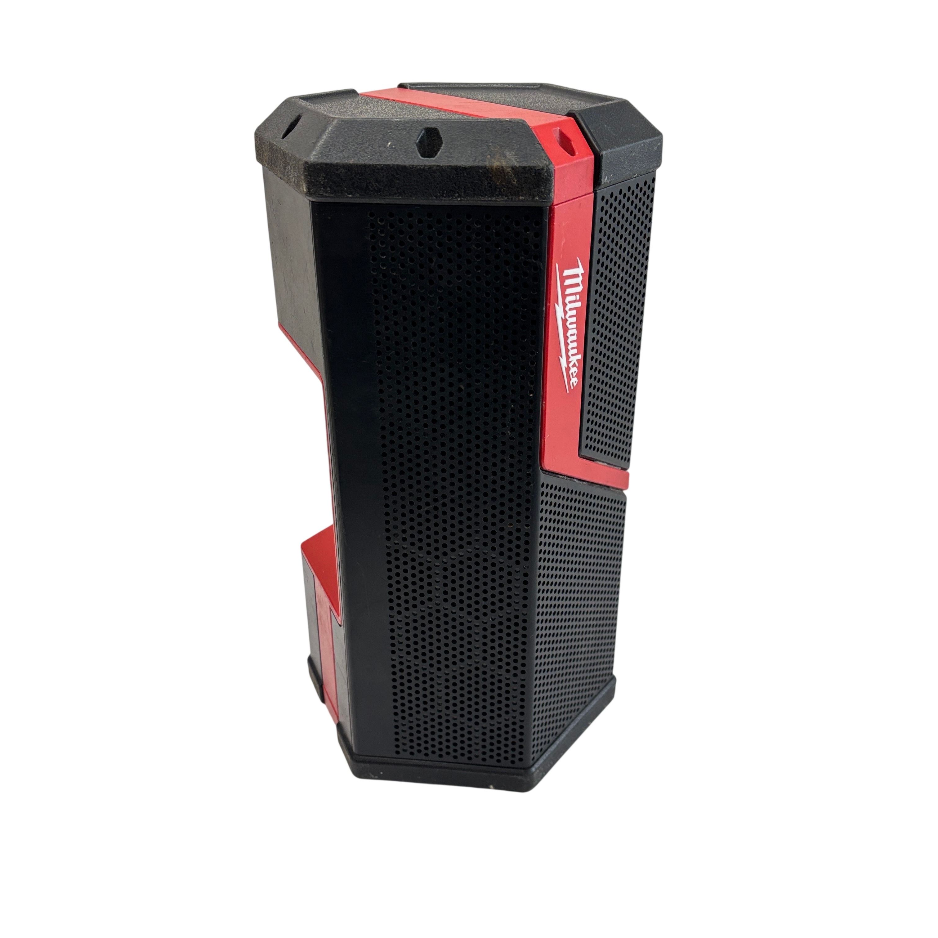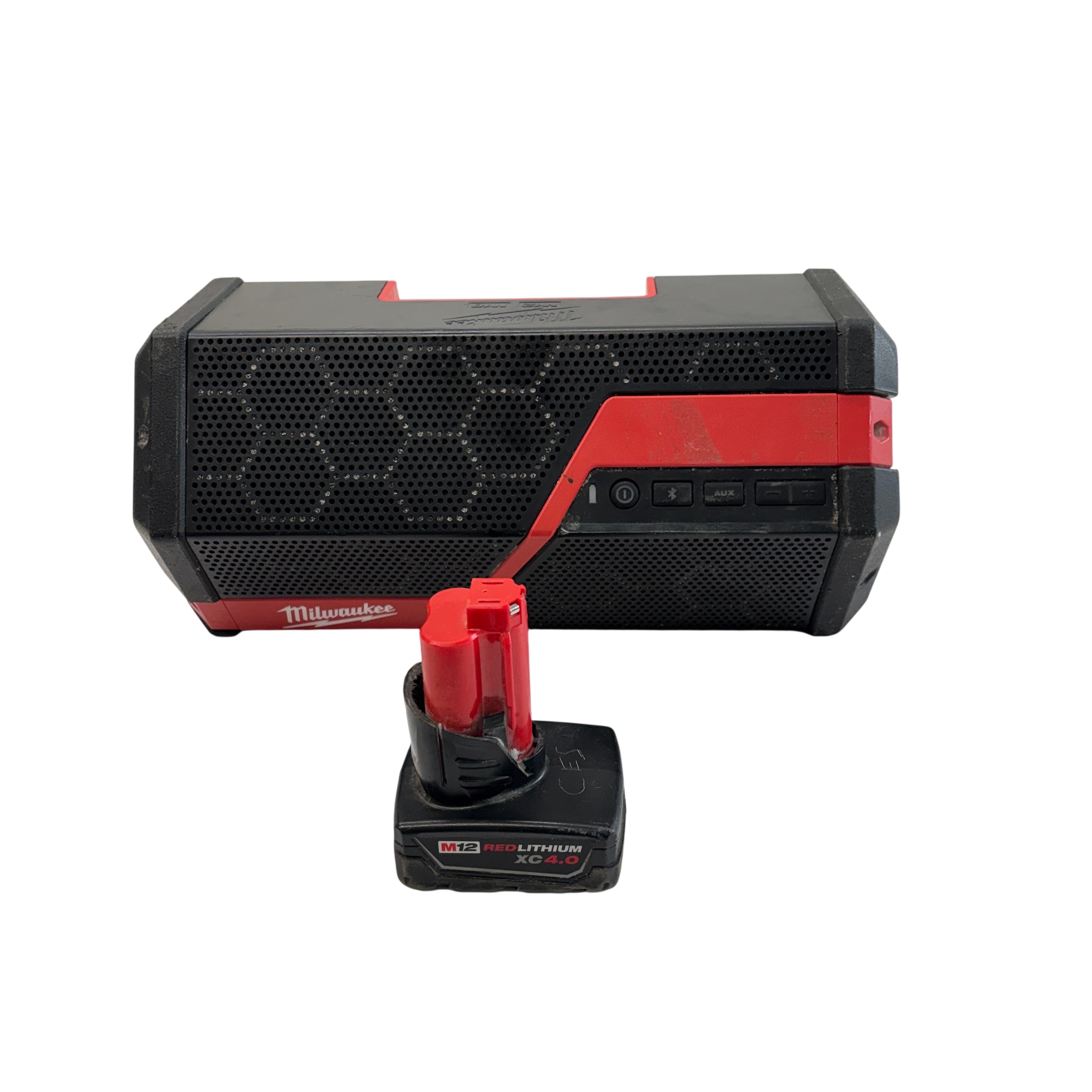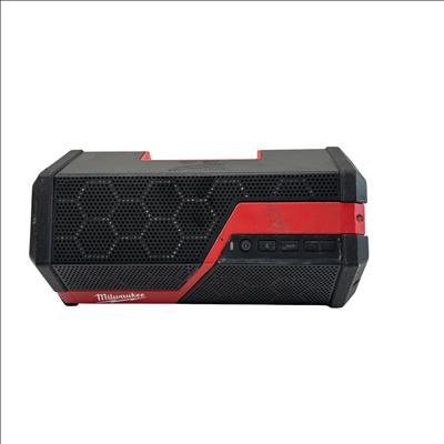 The Milwaukee Wireless Jobsite Speaker (Model 289120) is a rugged, battery-powered Bluetooth speaker designed for tough jobsite environments. Powered by an 18V M12 REDLITHIUM XC 4.0 battery, this speaker delivers wireless audio with AUX and USB input options for versatile connectivity. Its durable red and black housing is built to withstand jobsite conditions, making it an ideal companion for contractors and professionals who need reliable sound on the go.