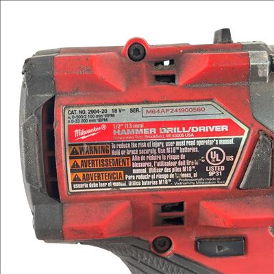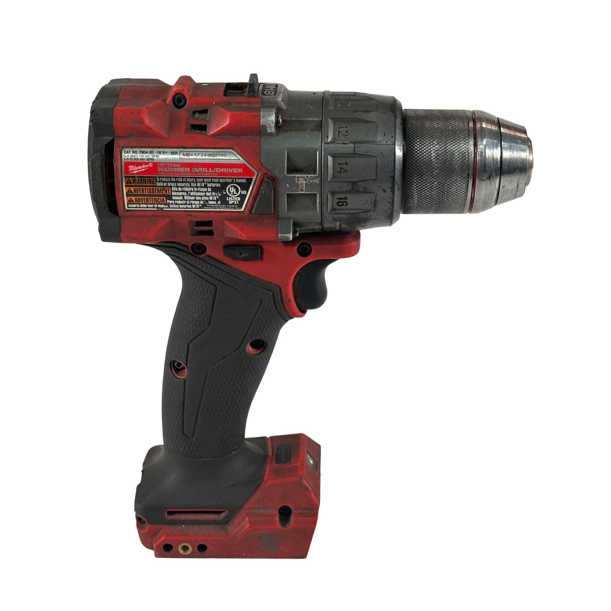 Milwaukee 2904-20 M18 FUEL cordless 1/2-inch hammer drill/driver is built for demanding drilling and fastening applications. Featuring a compact, lightweight design with a brushless motor, it delivers high torque and fast performance under load. An all-metal chuck provides strong bit retention, while hammer drill functionality allows effective drilling into masonry. Safety and control are enhanced with an auto-stop feature, mechanical clutch, belt clip, and integrated LED light for improved visibility in low-light work areas.