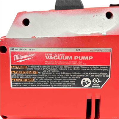 Milwaukee M18 FUEL 2941-21 18V Cordless 5 CFM Vacuum Pump is designed for efficient and portable HVAC system evacuation. This durable machine delivers powerful 5 CFM performance with a compact, cordless design, making it ideal for professional-grade vacuum pumping tasks in the field.