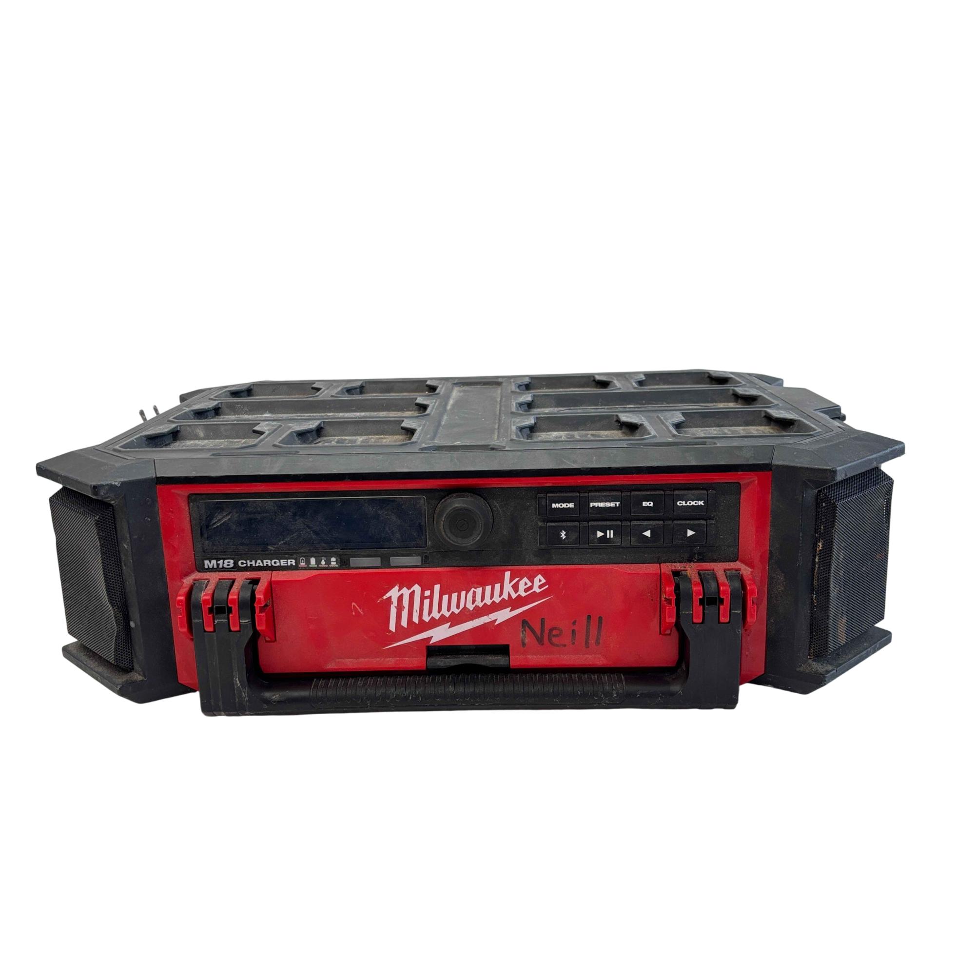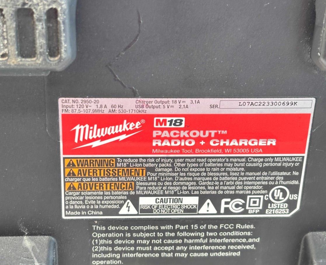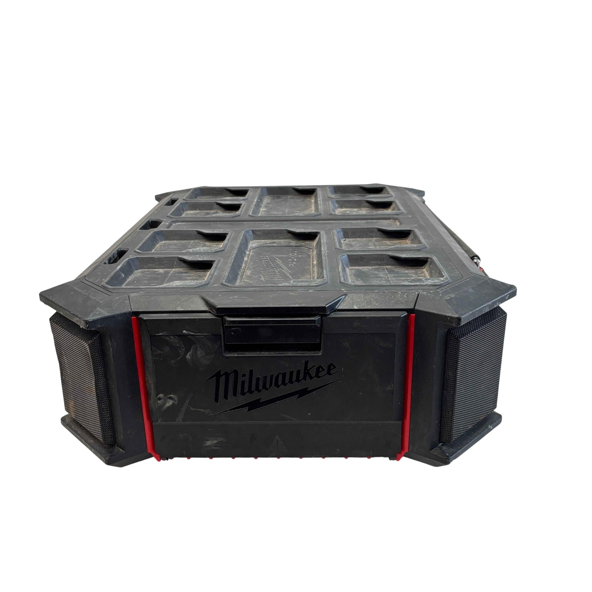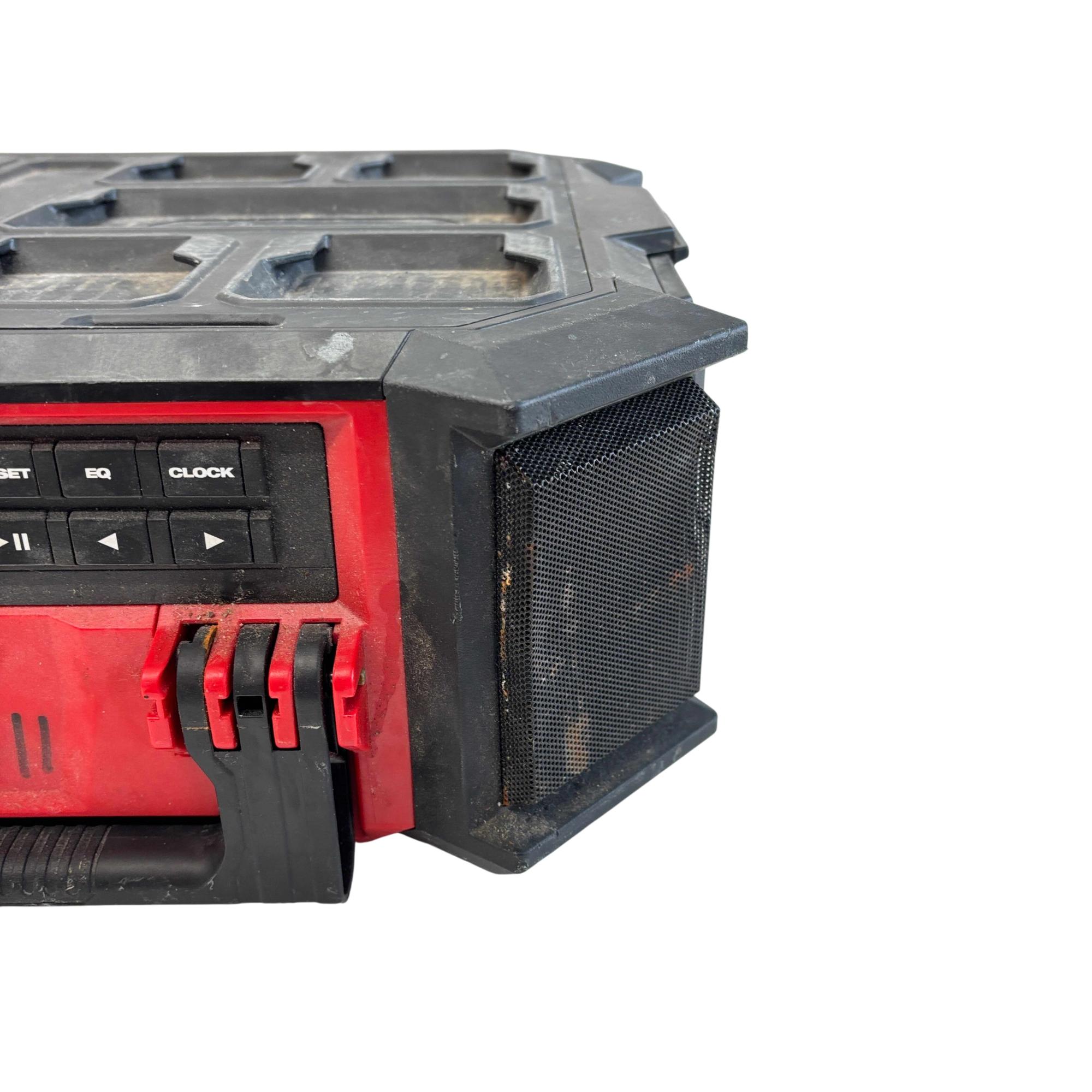 Milwaukee 2950-20 M18 PACKOUT Radio + Charger is a versatile jobsite radio designed for durability and superior sound quality. It features a rugged housing compatible with the PACKOUT modular storage system and delivers clear audio with AM/FM, Bluetooth connectivity, and presets for customized listening. Engineered for heavy-duty use, this radio integrates seamlessly into Milwaukees M18 tool ecosystem.