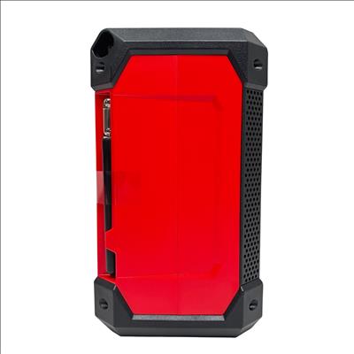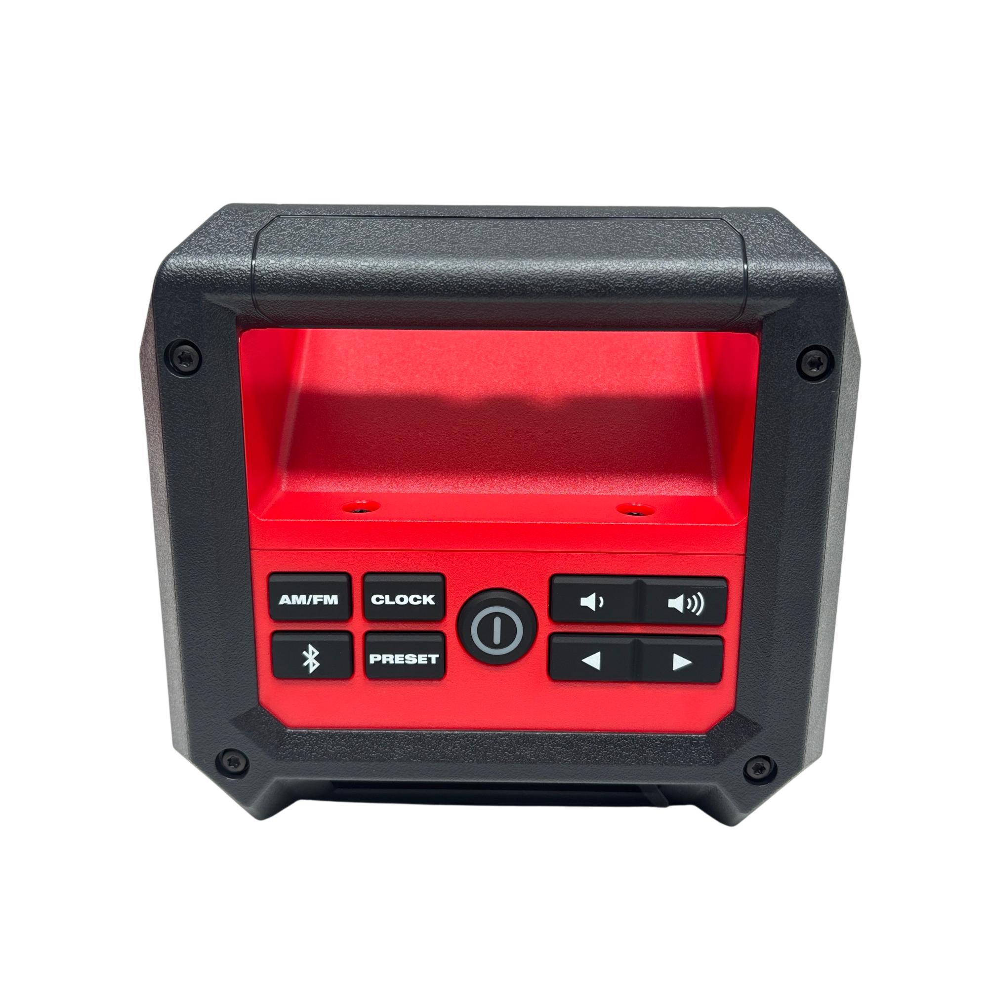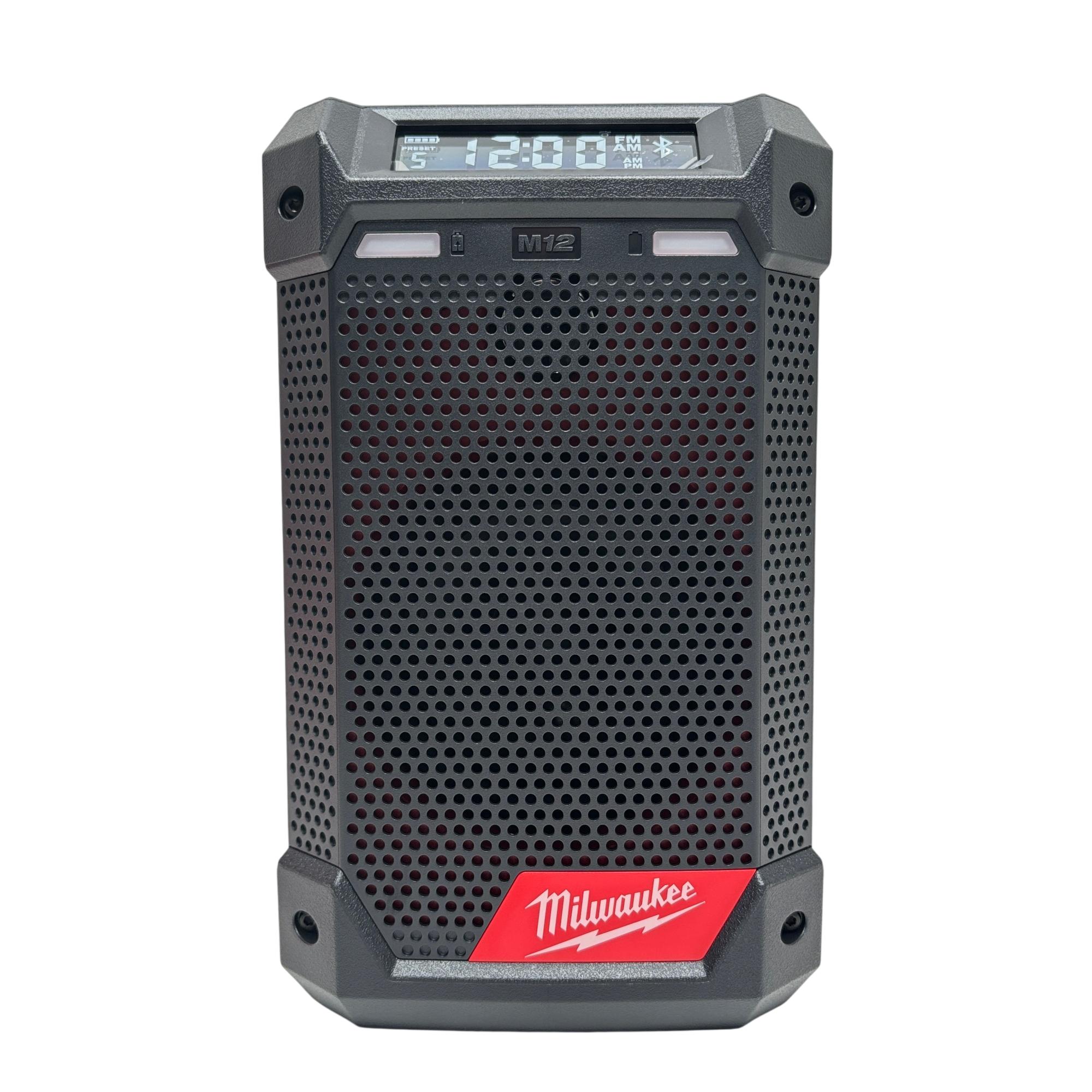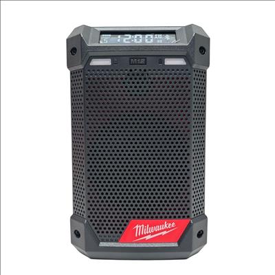 This 12-volt cordless jobsite radio features Bluetooth 4.2 and AM/FM connectivity for versatile audio options. It has a full-range speaker with tweeter for clear mids and highs, a 2.1-amp USB output for charging devices, and a 12-volt DC port for quick battery charging. The integrated design offers multiple hanging options, and its IP54 rating provides water and debris resistance.
