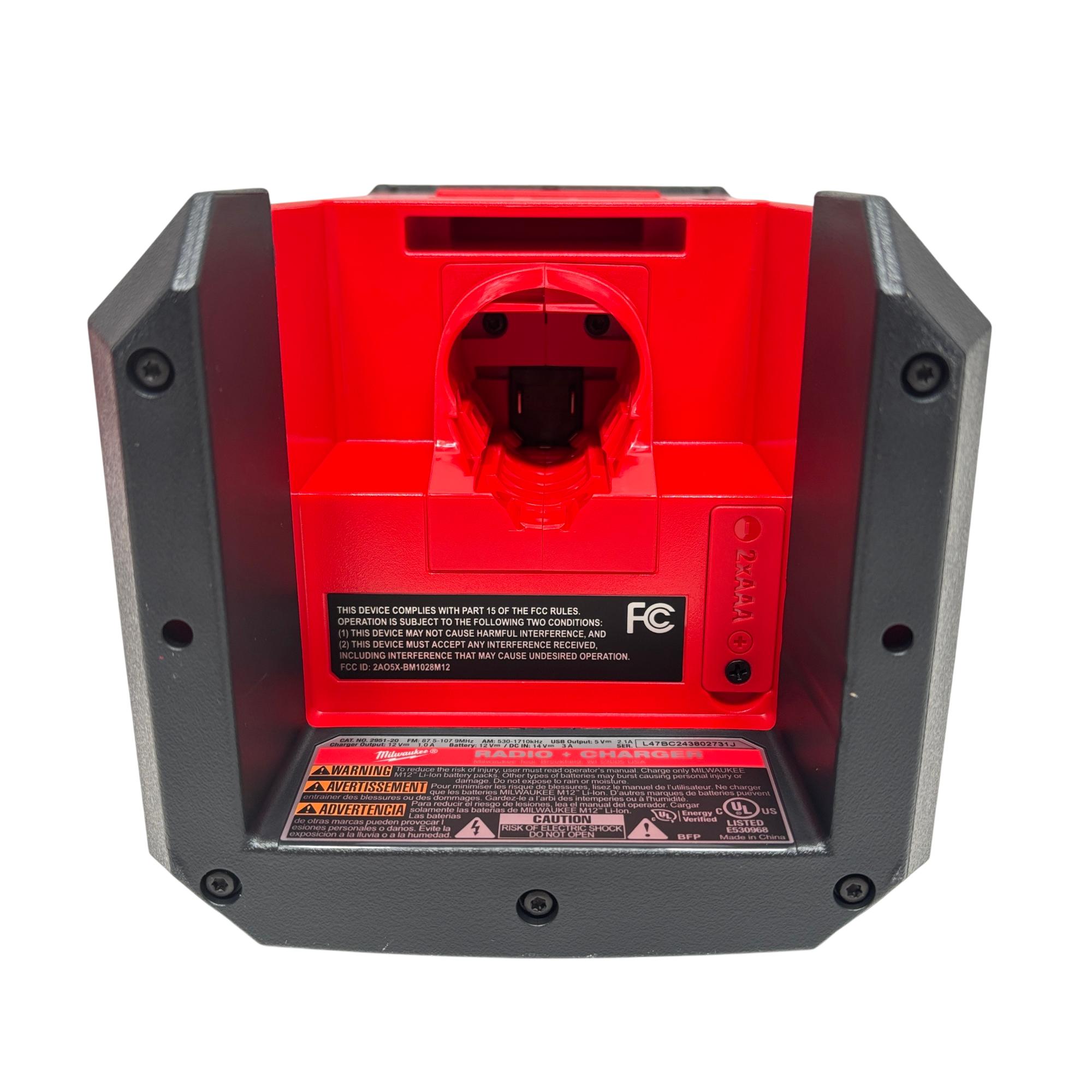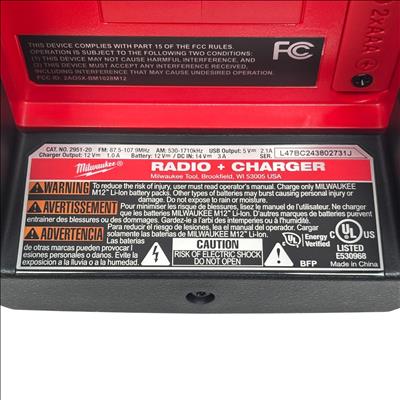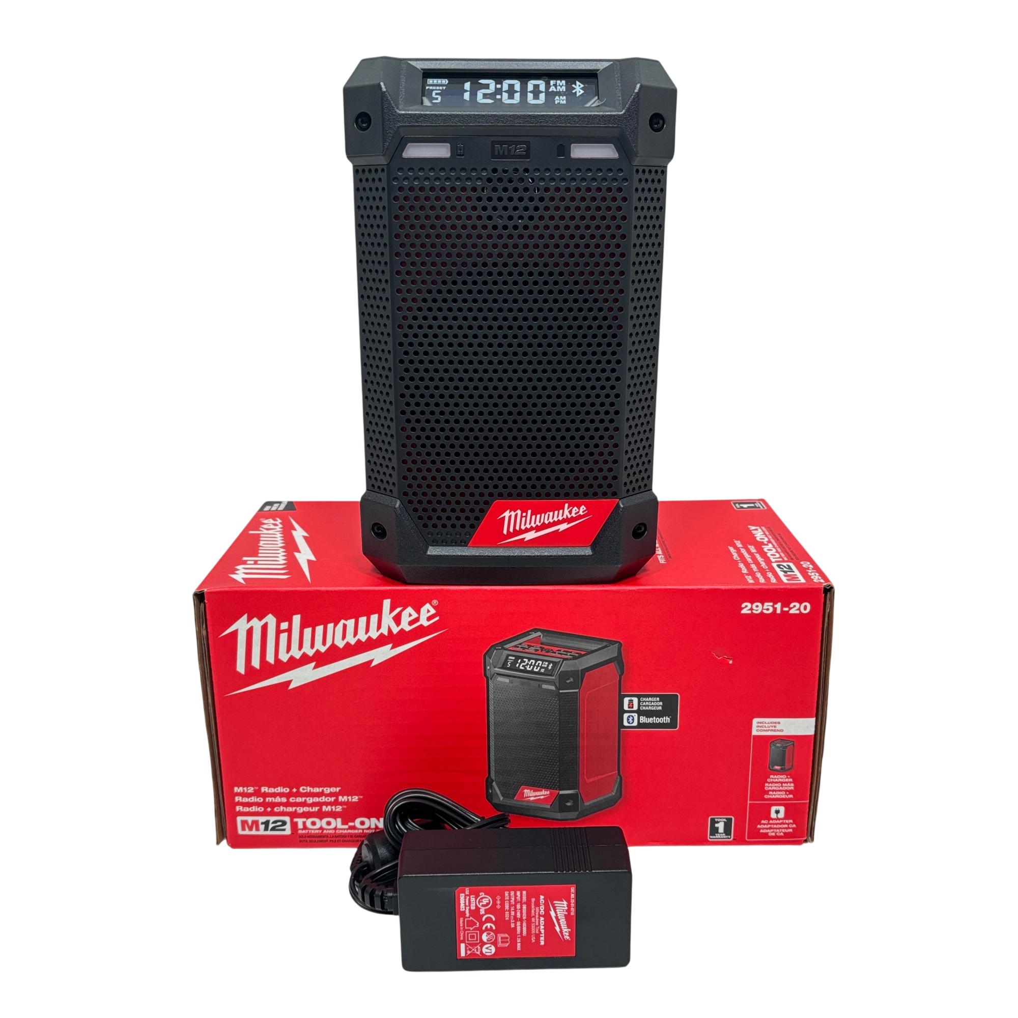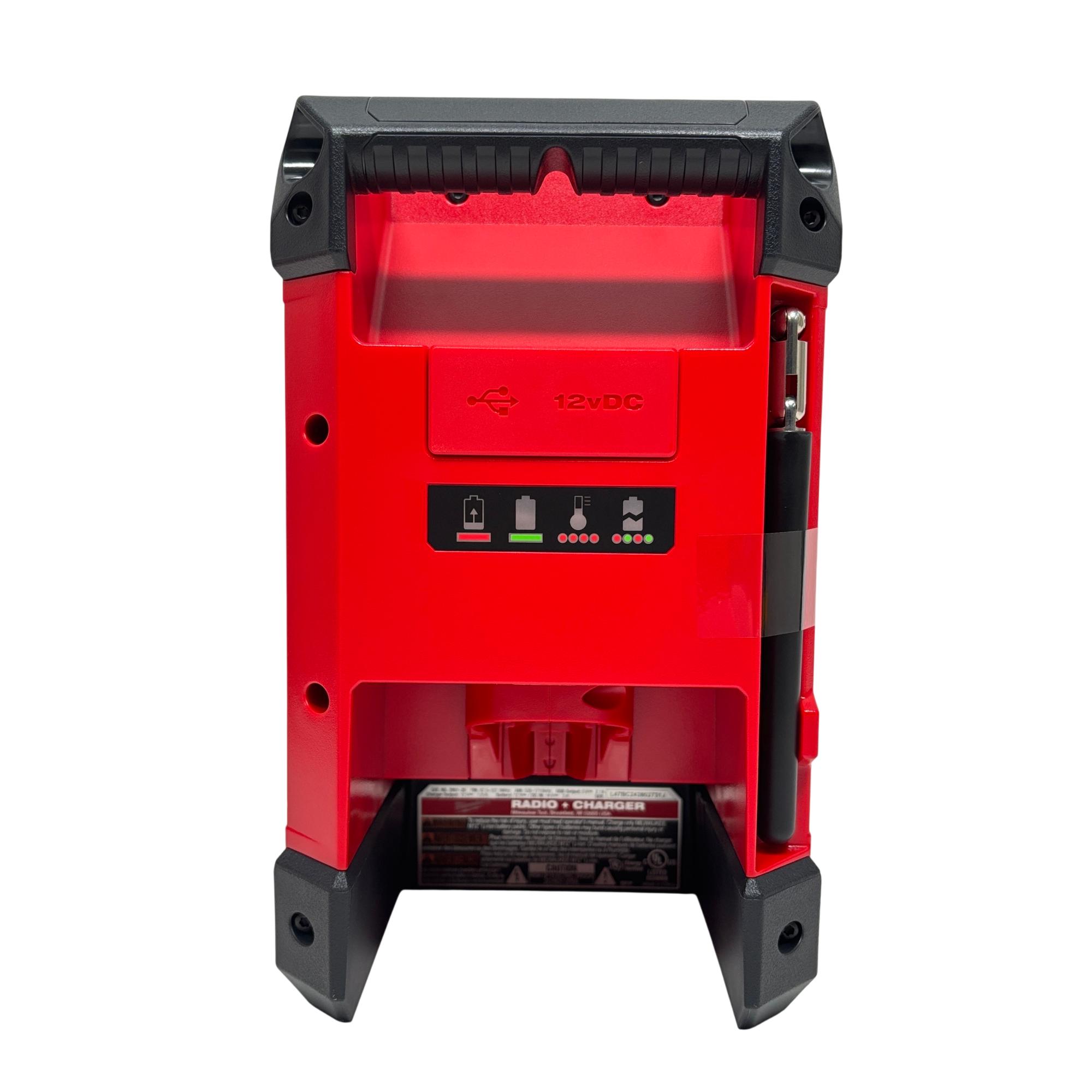 This 12-volt cordless jobsite radio features Bluetooth 4.2 and AM/FM connectivity for versatile audio options. It has a full-range speaker with tweeter for clear mids and highs, a 2.1-amp USB output for charging devices, and a 12-volt DC port for quick battery charging. The integrated design offers multiple hanging options, and its IP54 rating provides water and debris resistance.