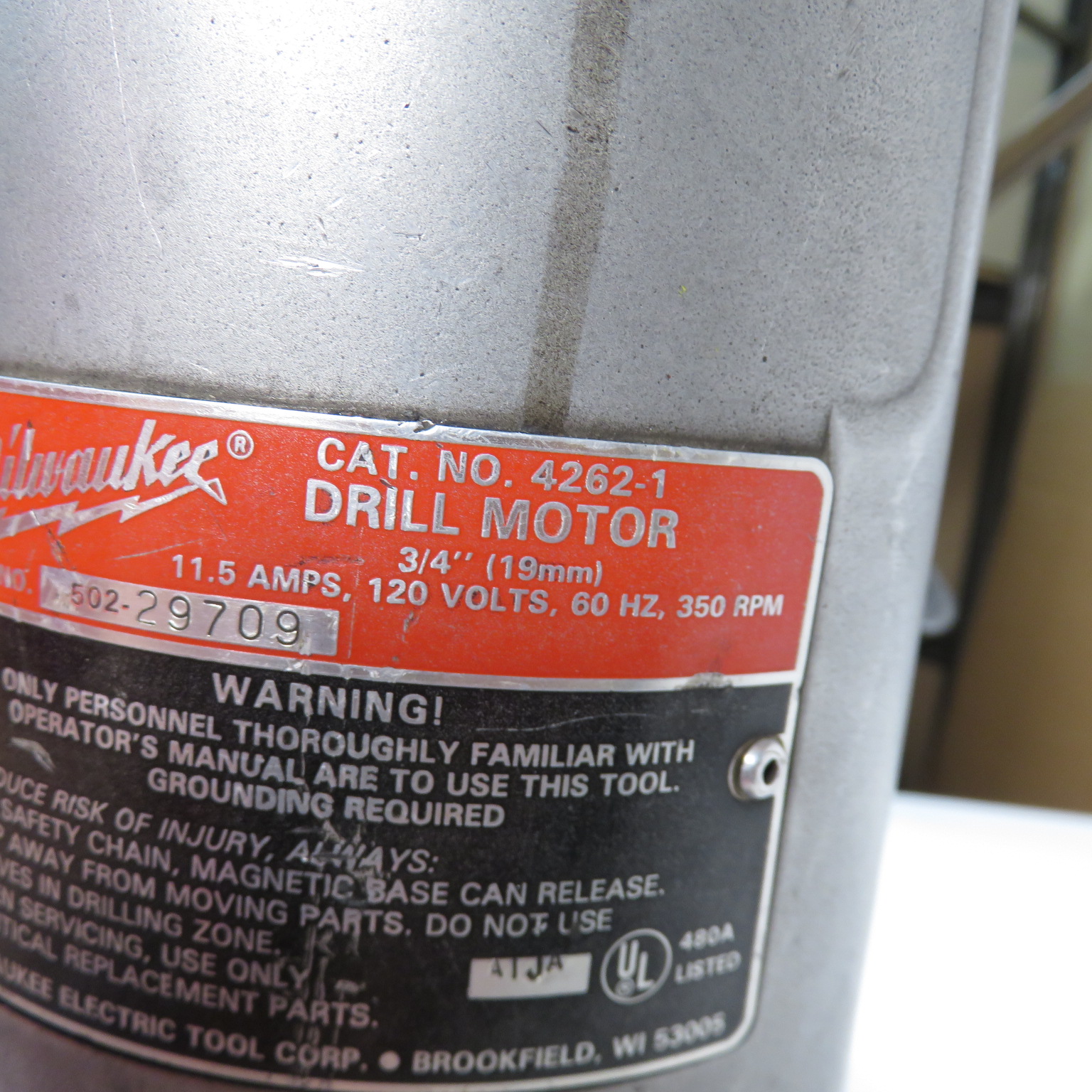 No job is too large for this heavy-duty drill press motor. Built for production drilling, this 11.5-amp drill motor can handle the toughest drilling jobs with up to a ¾” threaded hole capacity. The unit runs at 350 no-load RPM, geared low for maximum torque. It can produce up to 1670 pounds of drill point pressure with a 1-inch steel plate. A ¾” chuck permits fast and easy bit changes while eliminating slippage and breakage. The dual-mount gear case with reverse mount permits tight quarter drilling.
