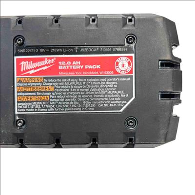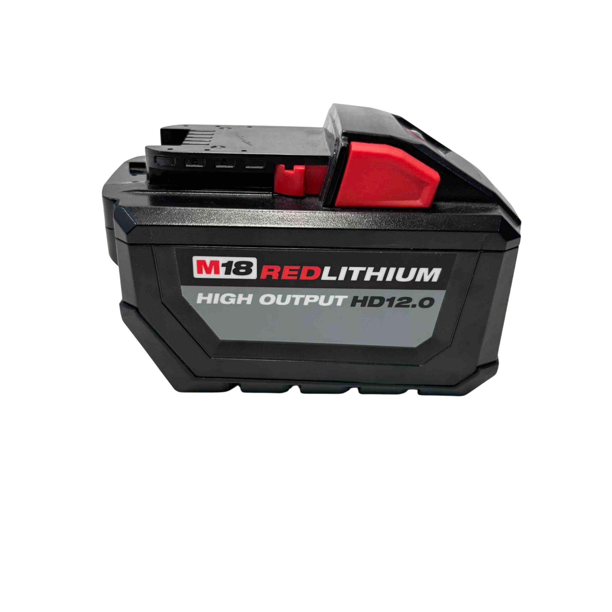 Power your tools with the Milwaukee M18 REDLITHIUM High Output HD12.0 Battery Pack. This premium 18V lithium-ion battery delivers unmatched run-time, power, and performance, providing up to 50% more power and runs 50% cooler than standard models. Its heavy-duty 12.0Ah capacity keeps you working longer on the toughest jobs, making it ideal for professionals who demand high output and reliability.
