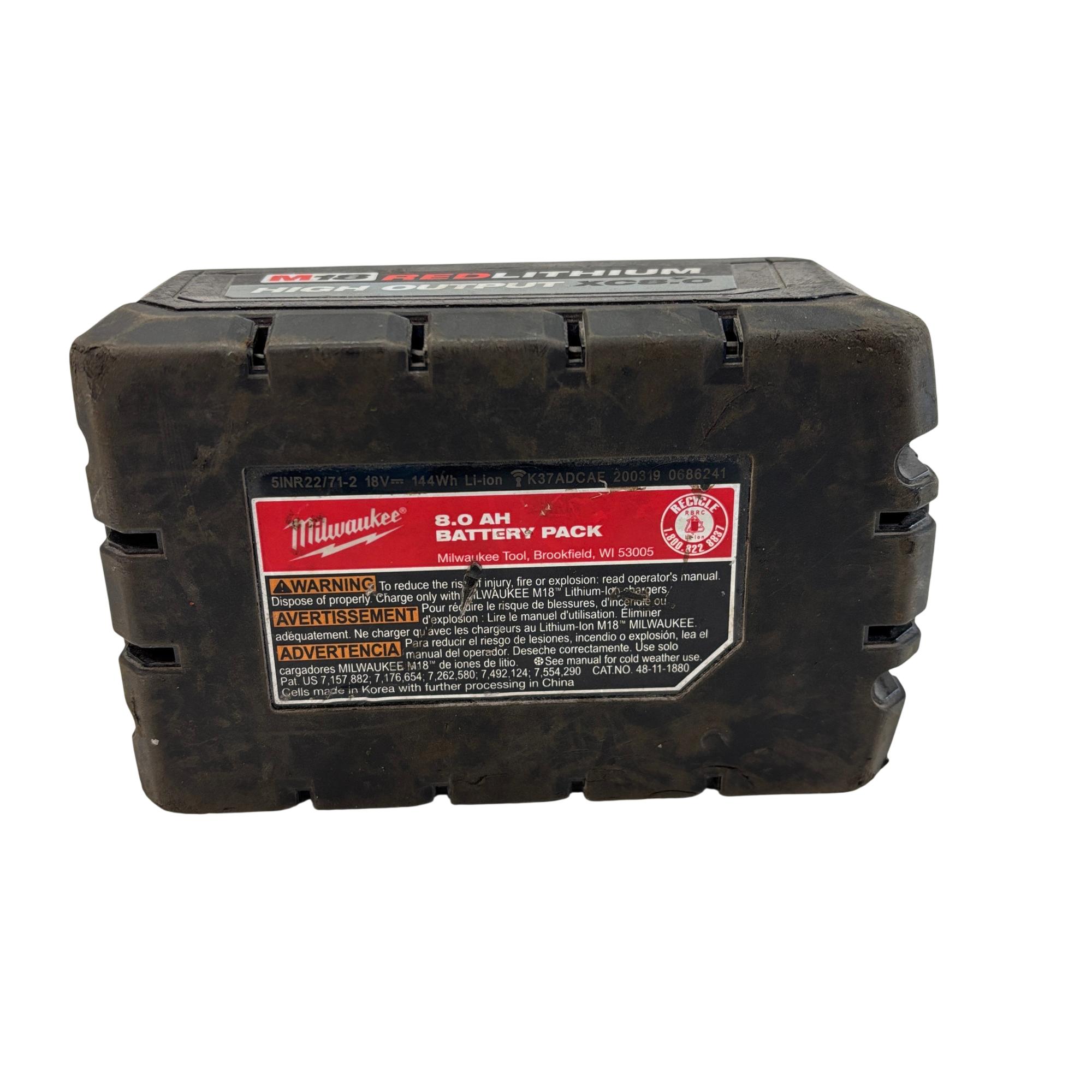 The Milwaukee 48-11-1880 M18 HIGH OUTPUT XC 8.0 Ah battery pack delivers enhanced power and performance for demanding applications. Its REDLINK intelligence helps optimize output and protect against overload through communication with compatible tools and chargers. Built with durable construction for tough jobsite conditions, it offers reliable operation and long service life. The onboard fuel gauge shows remaining charge, and the pack works with the full range of M18 cordless tools.