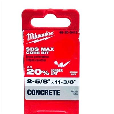Tackle tough concrete drilling jobs with the Milwaukee 48-20-5412 SDS Max Core Bit. This expertly-engineered bit is designed for use with SDS Max rotary hammers, featuring German-made durability and up to 20% longer life for demanding worksites. Ideal for professionals, this core bit ensures fast, precise holes in concrete—perfect for your next project.