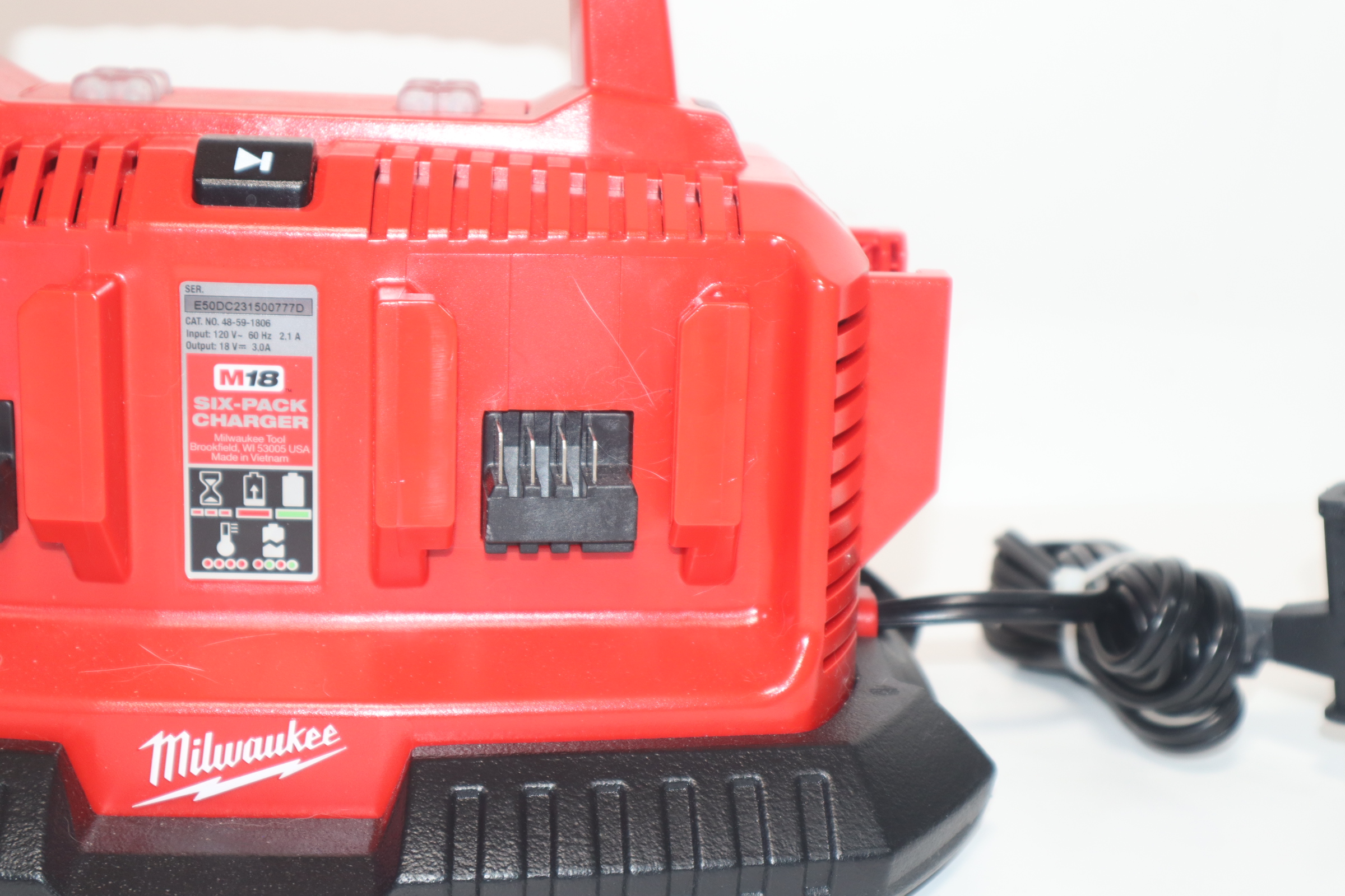 The M18 Six Pack Sequential Charger offers a compact design, integrated hang holes for vertical mounting, and a pass-through plug to conserve outlet space. The new unit will charge M18 compact batteries in 30 minutes and extended capacity (XC) batteries in 60 minutes. With this new six pack charger, users can reduce the amount of time spent changing out batteries, increasing productivity on the jobsite.