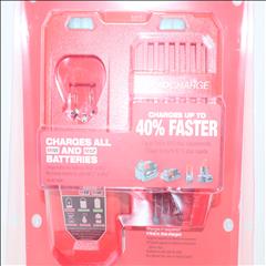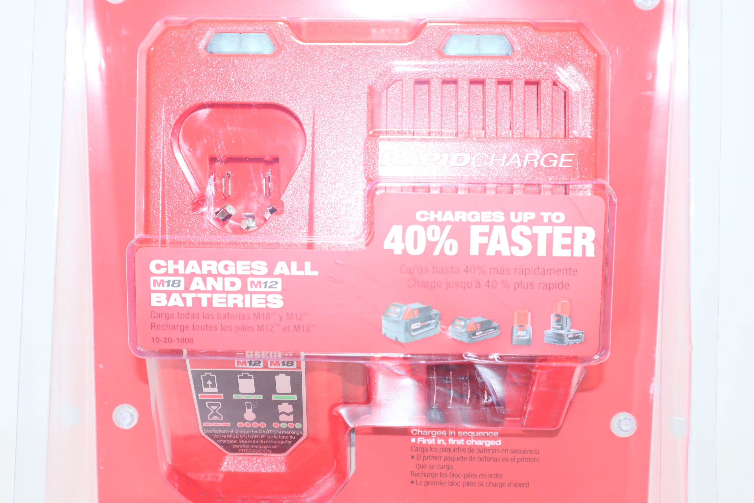 The M18 & M12 Rapid Charger charges battery packs up to 40% faster, reducing your downtime and maximizing your productivity. The battery charger accepts all MILWAUKEE M18 and M12 batteries, providing a charging upgrade for both systems. The charger features REDLINK Intelligence and communicates directly with your batteries to monitor cell voltage, temperature, and charge status to optimize the performance and extend the life of the pack. As an added level of communication, the charger indicates when the battery reaches an 80% charge, providing you with the confidence that a substantial amount of work can be completed without having to wait for a full charge.