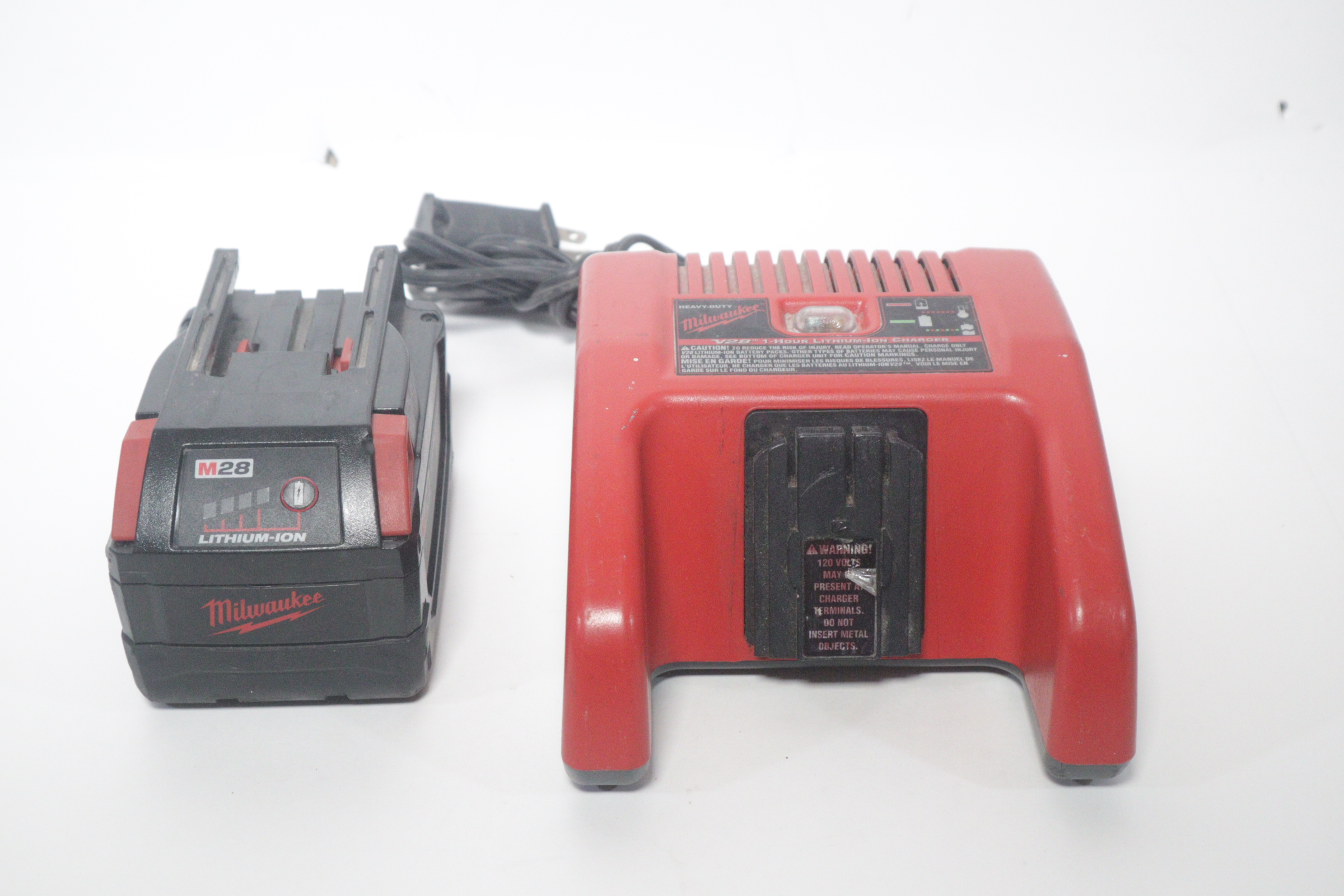 Milwaukee 48-59-2801 V28 Lithium-Ion Battery Charger 0411 & Milwaukee 48-11-2830 M28 REDLITHIUM Battery Pack