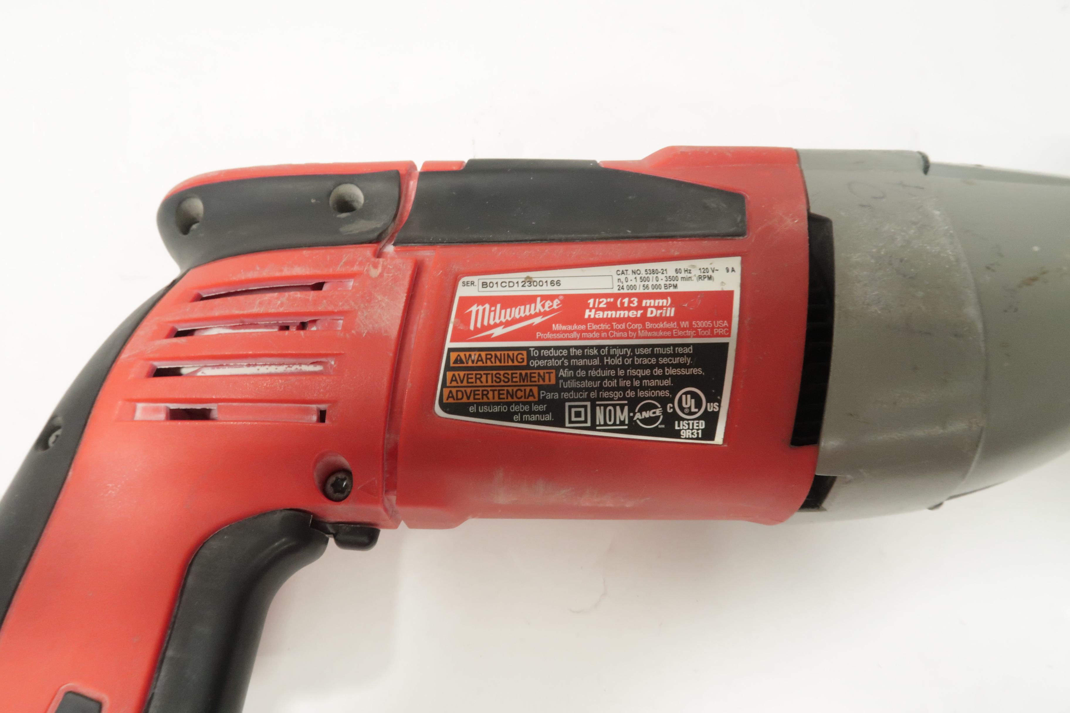 Power, durability and versatility for a variety of tough worksite applications. This powerful 9-amp, ½” Hammer Drill features dual speed ranges (0-1,500 and 0-3,500 RPM) for better operator control, regardless of your materials or accessories. There’s a percussion drilling mode for masonry and a rotary drilling mode that accommodates a variety of bits for holes in wood, metal and plastic. Its high speed and compact size make it ideal for setting fasteners in concrete and drilling small holes for anchors. Yet its heavy-duty metal gear case, self-stopping brushes, and ball and roller bearing construction make it tough enough to handle the most grueling jobsite applications. The Anti-Vibration System (AVS) and ergonomic handle reduce user fatigue and increase comfort and control. The dual-speed hammer drill comes equipped with a removable side handle.