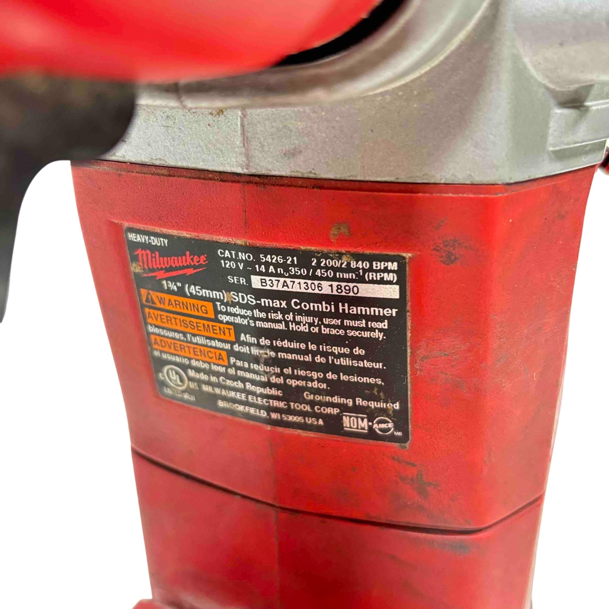 Unleash the power and precision of the Milwaukee 5426-21 SDS-Max AVS Heavy-Duty Combi Hammer Drill. Designed for professional-grade performance, this tool combines remarkable durability with an easy-to-handle lightweight frame, perfect for tackling the toughest jobs. With its robust 120V motor, this red and black powerhouse ensures efficient drilling and chiseling with maximum control and comfort.