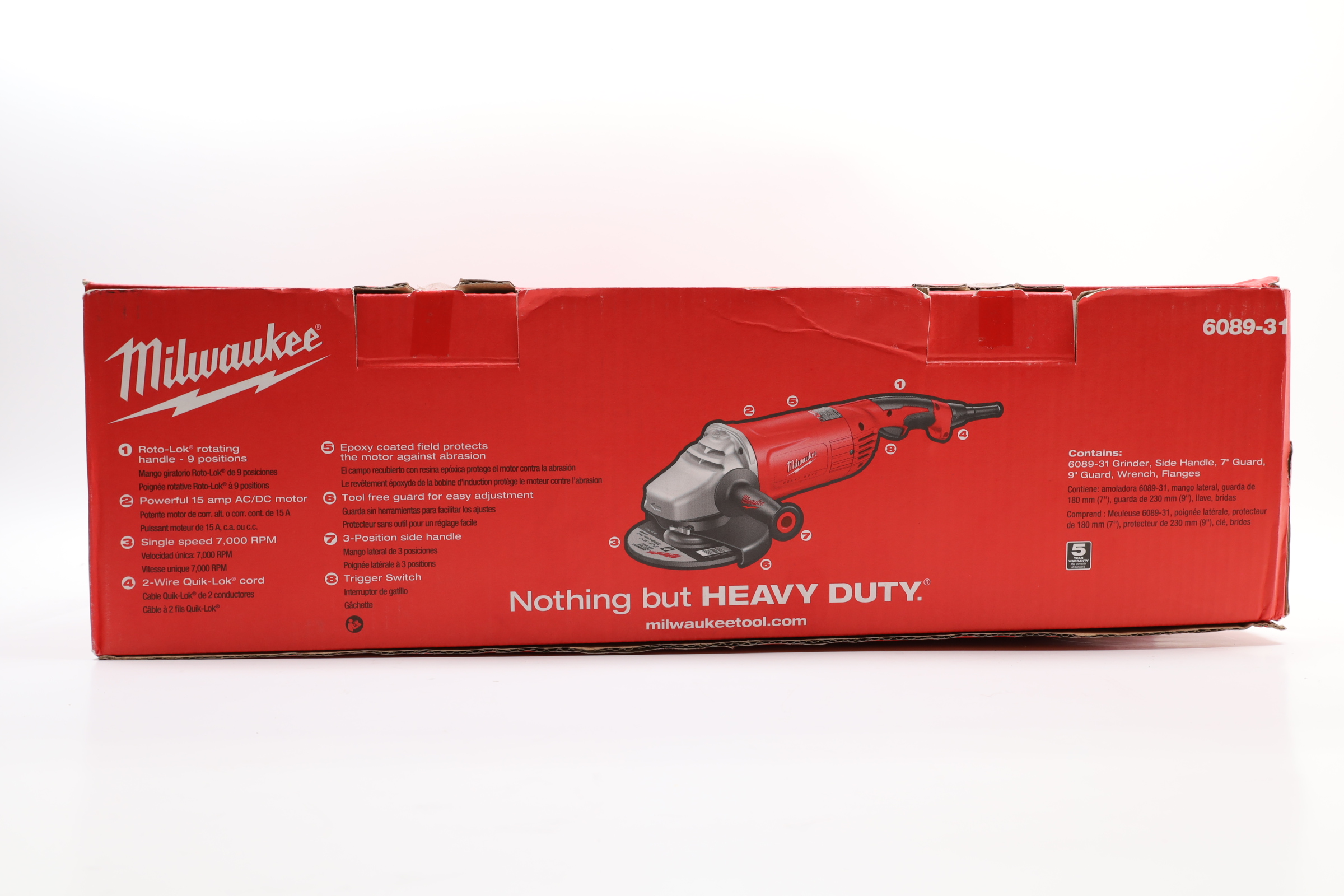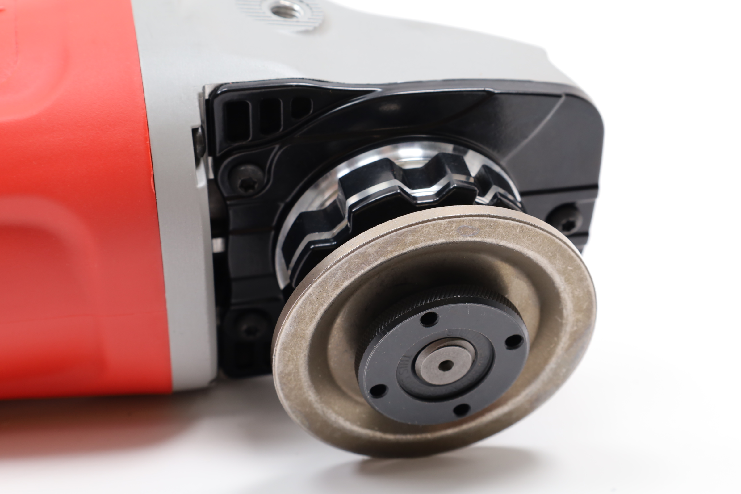 A robust and versatile tool, designed for demanding grinding tasks. It features a powerful 15 Amp, 4.2 horsepower motor, ensuring high performance and durability in tough conditions. The grinder's 9-position rotating main handle enhances control in various orientations, and its tool-free, burst-resistant guard allows for quick adjustments. This model includes both 7 and 9-inch type 27 grinding guards, enhancing its productivity. Notably, the grinder is designed with external brush doors for easy maintenance, angled handles for comfortable use, and a 2-finger lock-on switch for operational convenience. Additionally, it can be converted into a sander with the appropriate backing pad assembly. The grinder is double insulated and equipped with a 2-wire QUIK-LOK cord, making it adaptable to various working environments. It also features debris baffles to protect internal components and is compatible with multiple grinder guards and flanges, further extending its versatility.