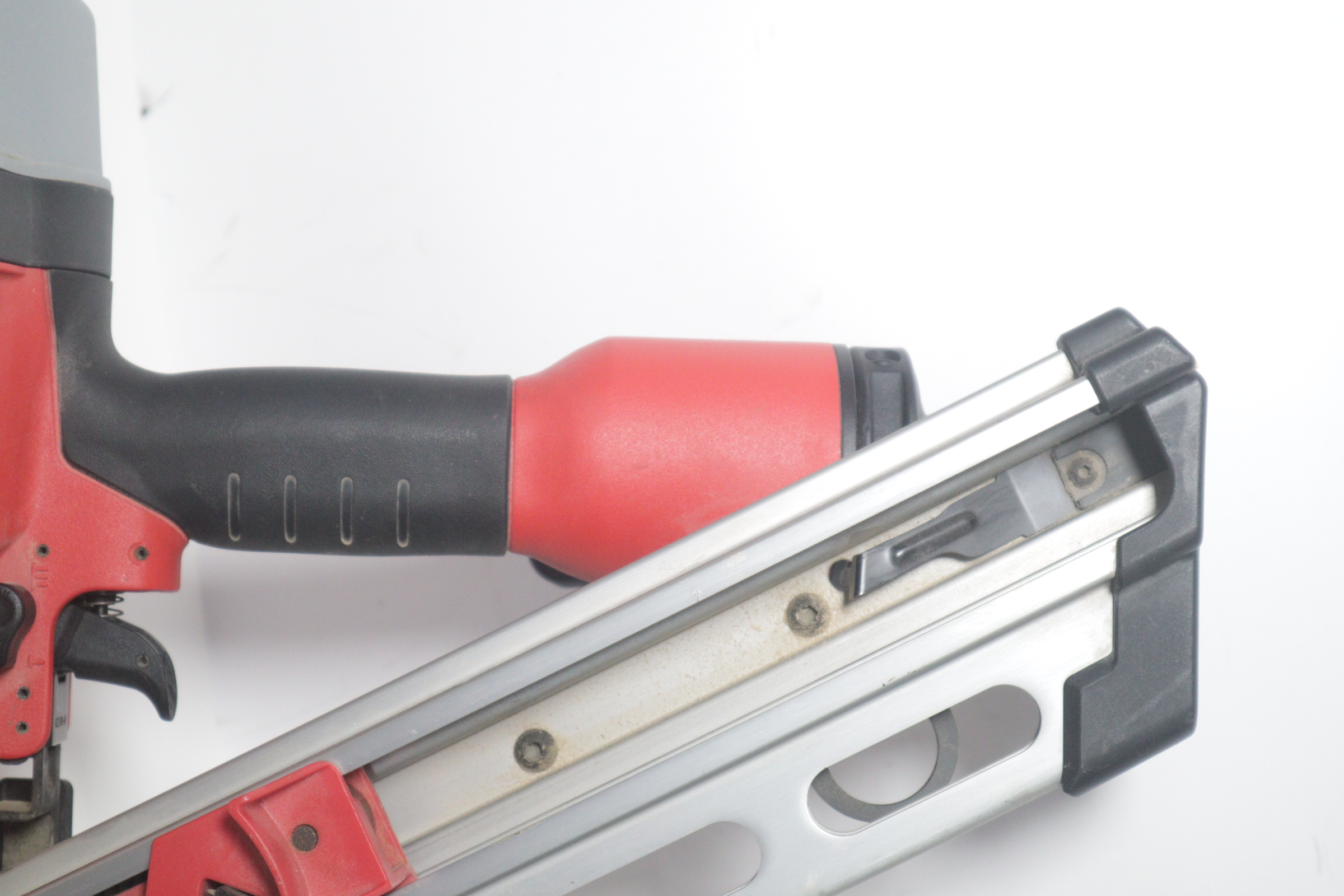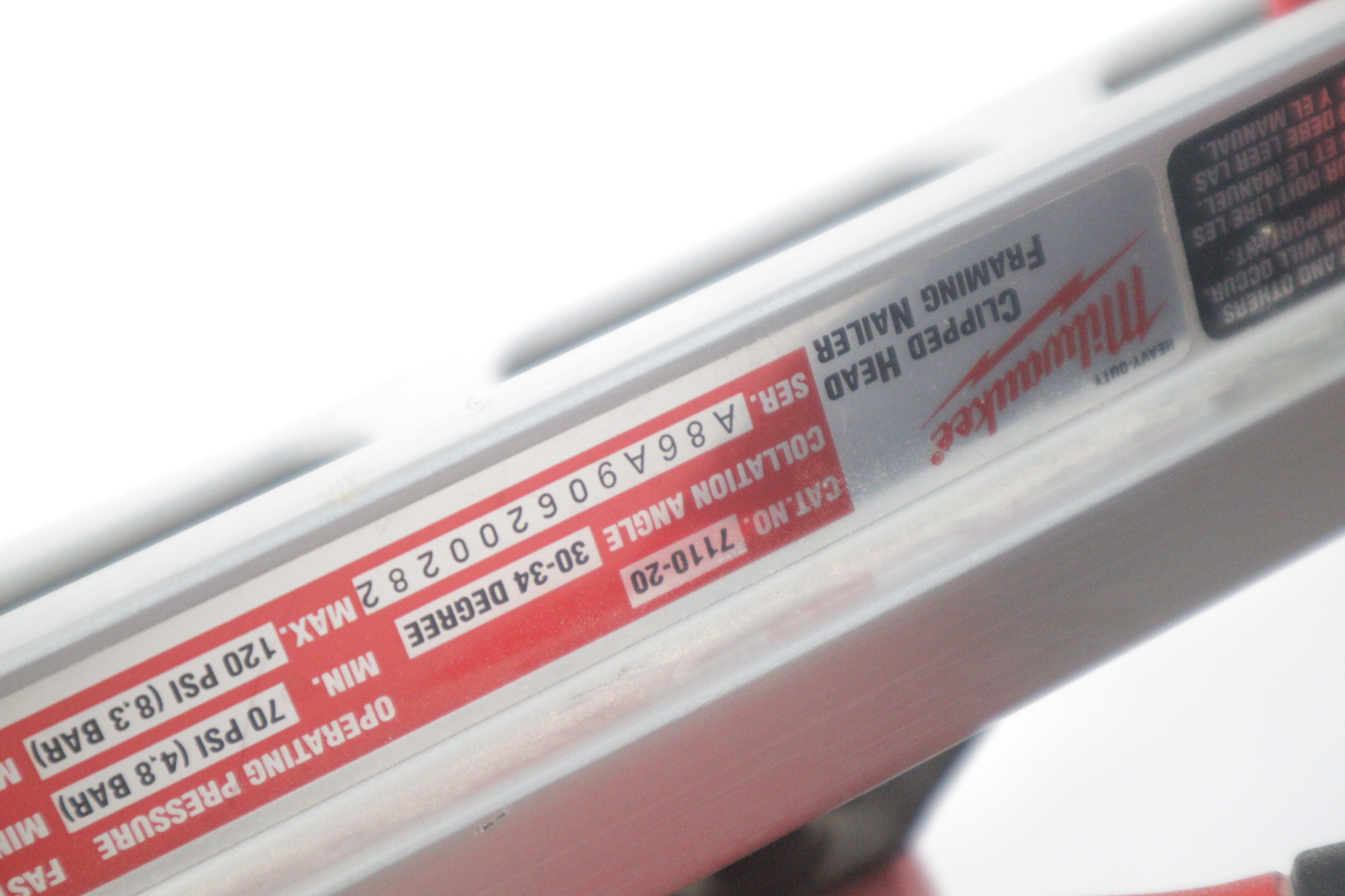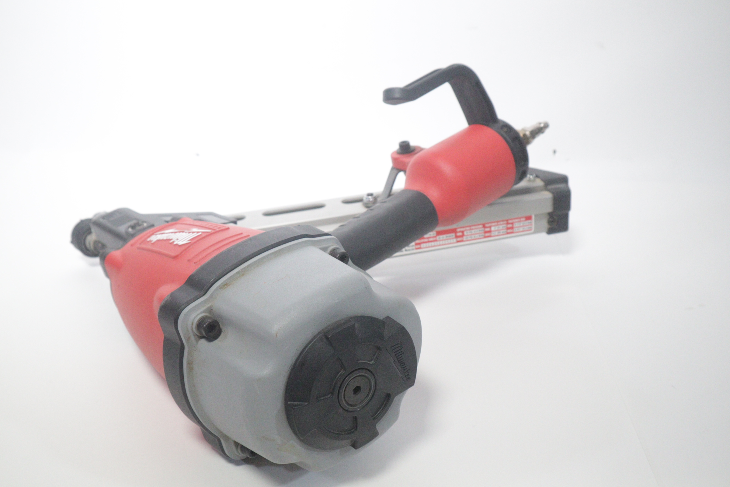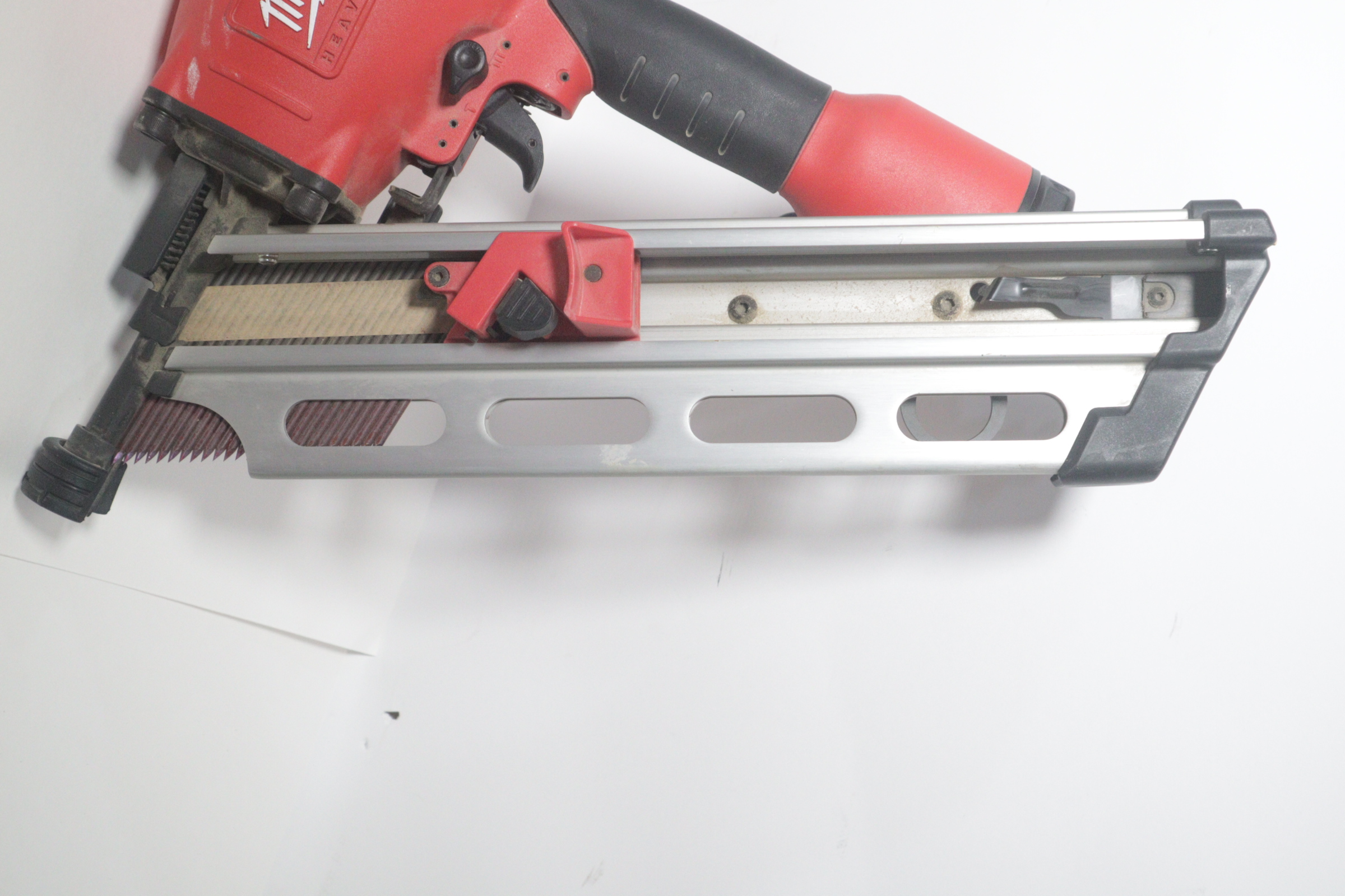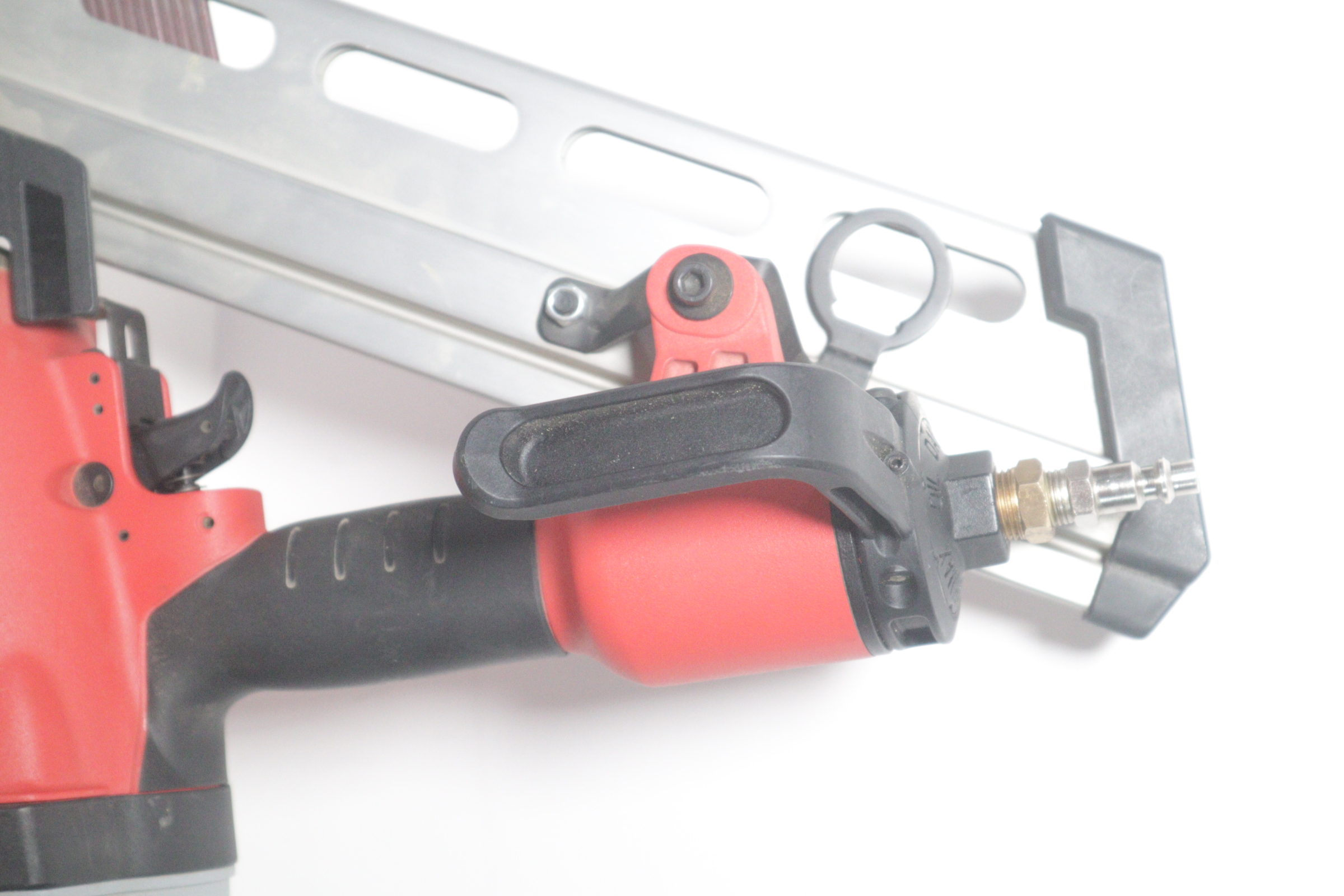 Utilizing an all-magnesium housing, Milwaukee’s 3-1/2” Full Round Head Framing nailer loads 20-22° full round head plastic collated nails 2” to 3-1/2” in length diameters .113” to .148”. Its easy select trigger lets you move quickly from single nail placement to contact actuation for maximum control and application versatility. The easy read and tool free depth of drive lets you quickly adjust the depth setting without having to reset the airline pressure. The self-cleaning air filter extends life and prevents dirt and debris from entering the tool. The adjustable air deflector with muffler directs exhaust away from the work area. A reload indicator lets you reload before firing blanks. The rear-loading magazine with bypass pusher allows smooth and fast reloads. The adjustable rafter hook allows for hanging of the tool in multiple positions and is removable.