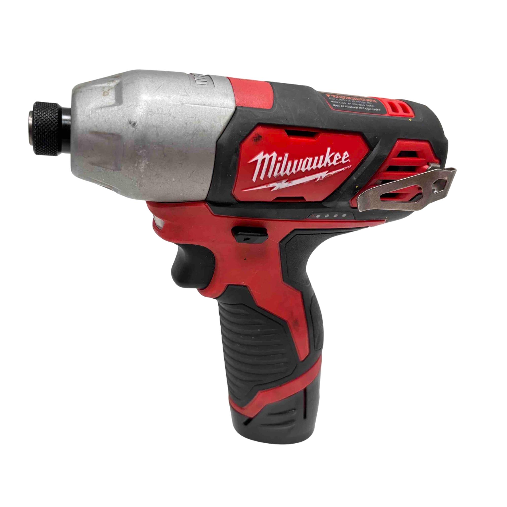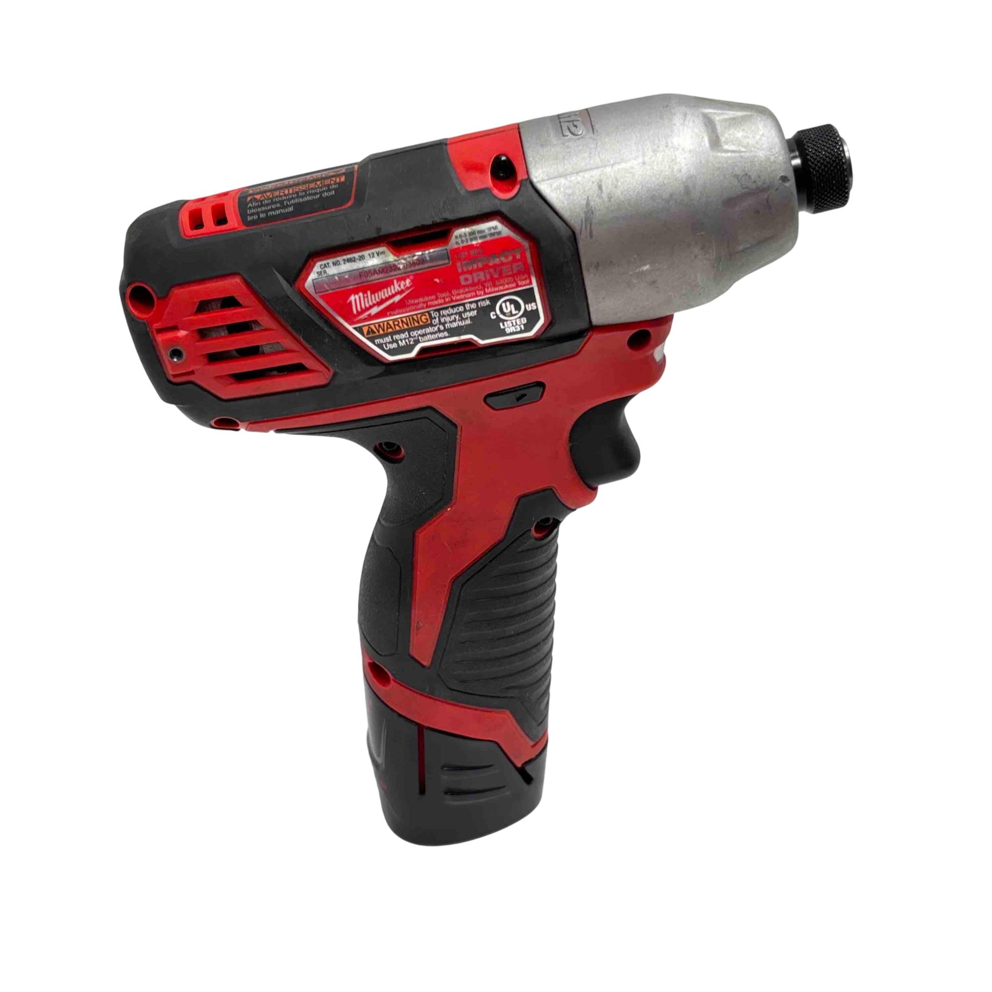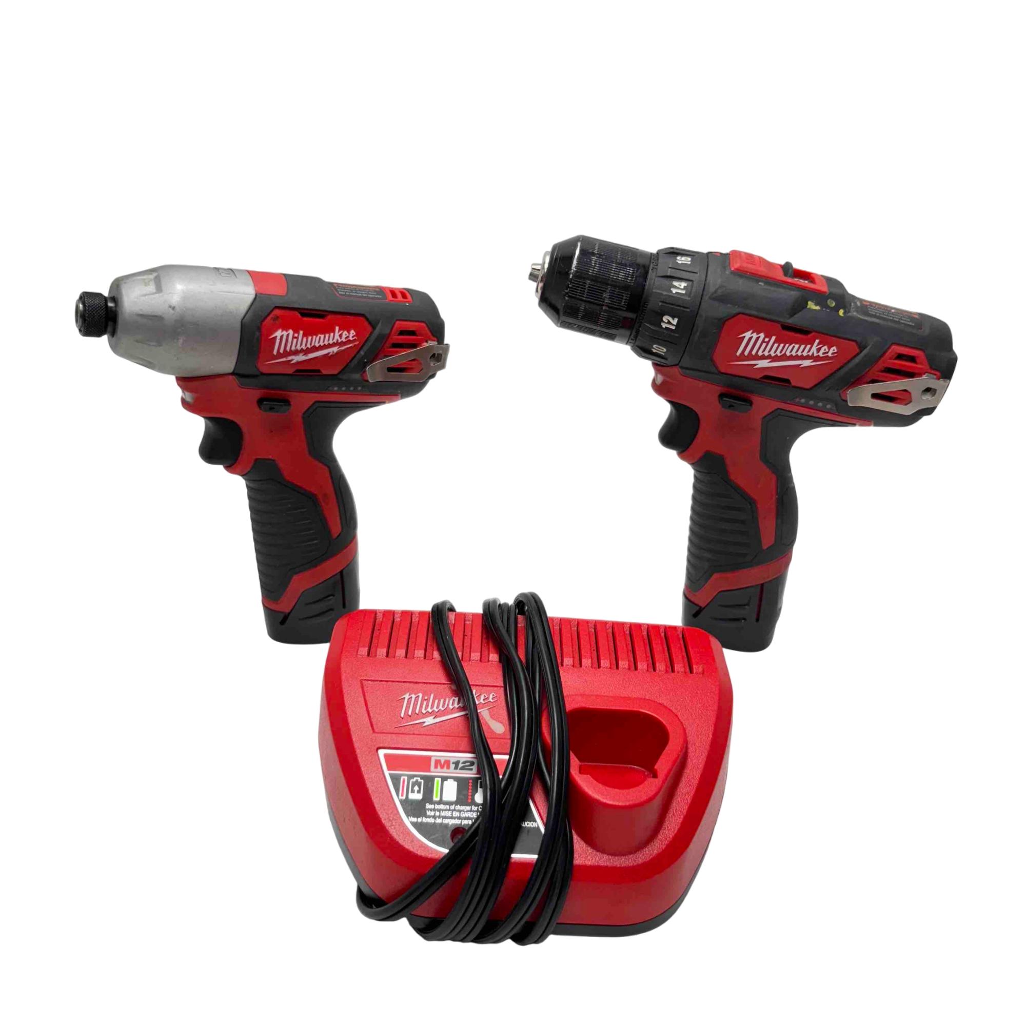 Unlock professional-grade performance with this Milwaukee M12 12V Cordless Drill and Impact Driver Combo Kit. Featuring the renowned Milwaukee brand, this kit delivers power and versatility in a compact design, ideal for both DIY enthusiasts and professionals. This lightly used combo includes a drill/driver, impact driver, two batteries and one charger, ensuring you're ready for a wide range of tasks.