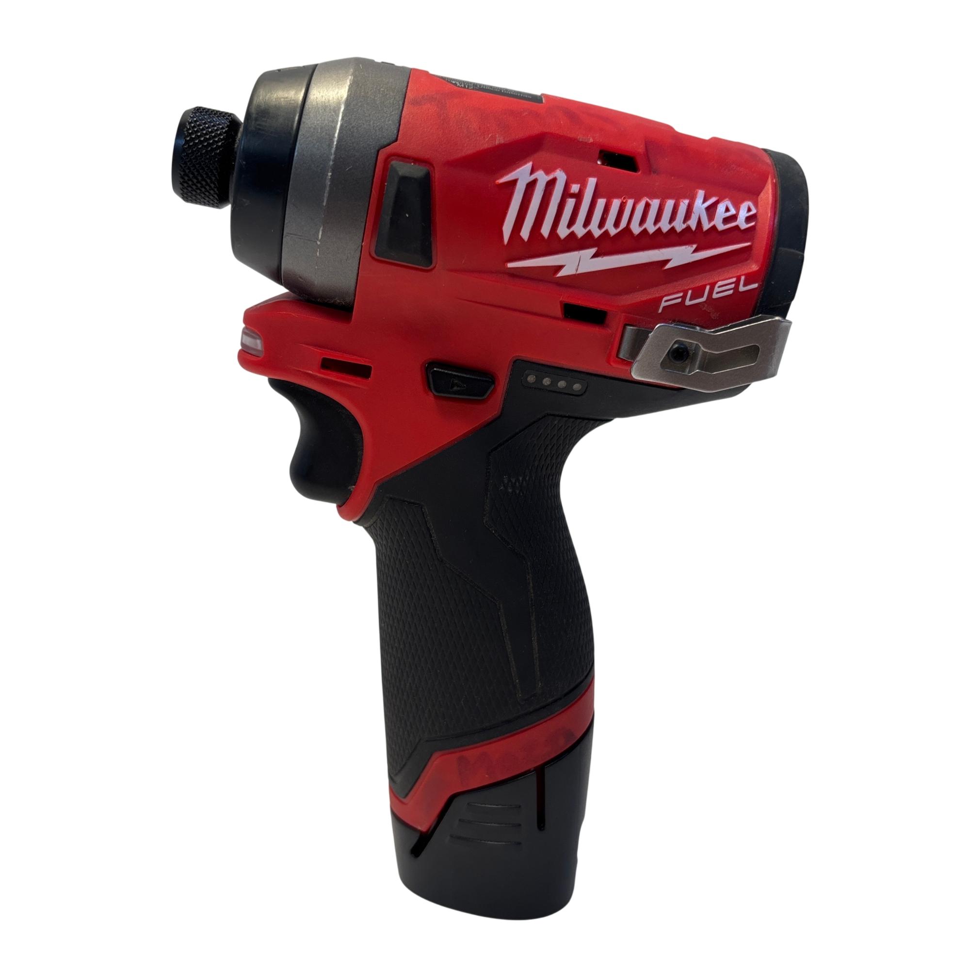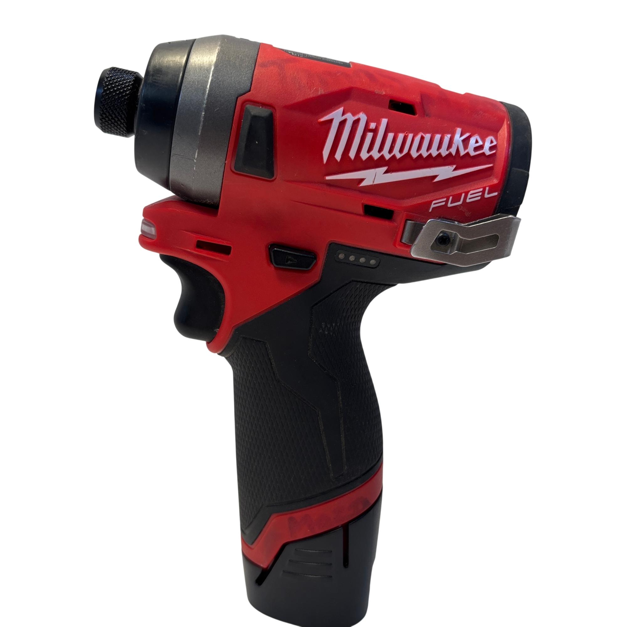 The Milwaukee M12 FUEL 1/4" Hex Brushless Impact Driver delivers powerful performance with its compact, brushless motor designed for high torque and efficiency. This cordless impact driver features a 1/4 inch hex chuck for quick bit changes and is optimized for precise fastening in tight spaces, making it ideal for professional and DIY users alike.