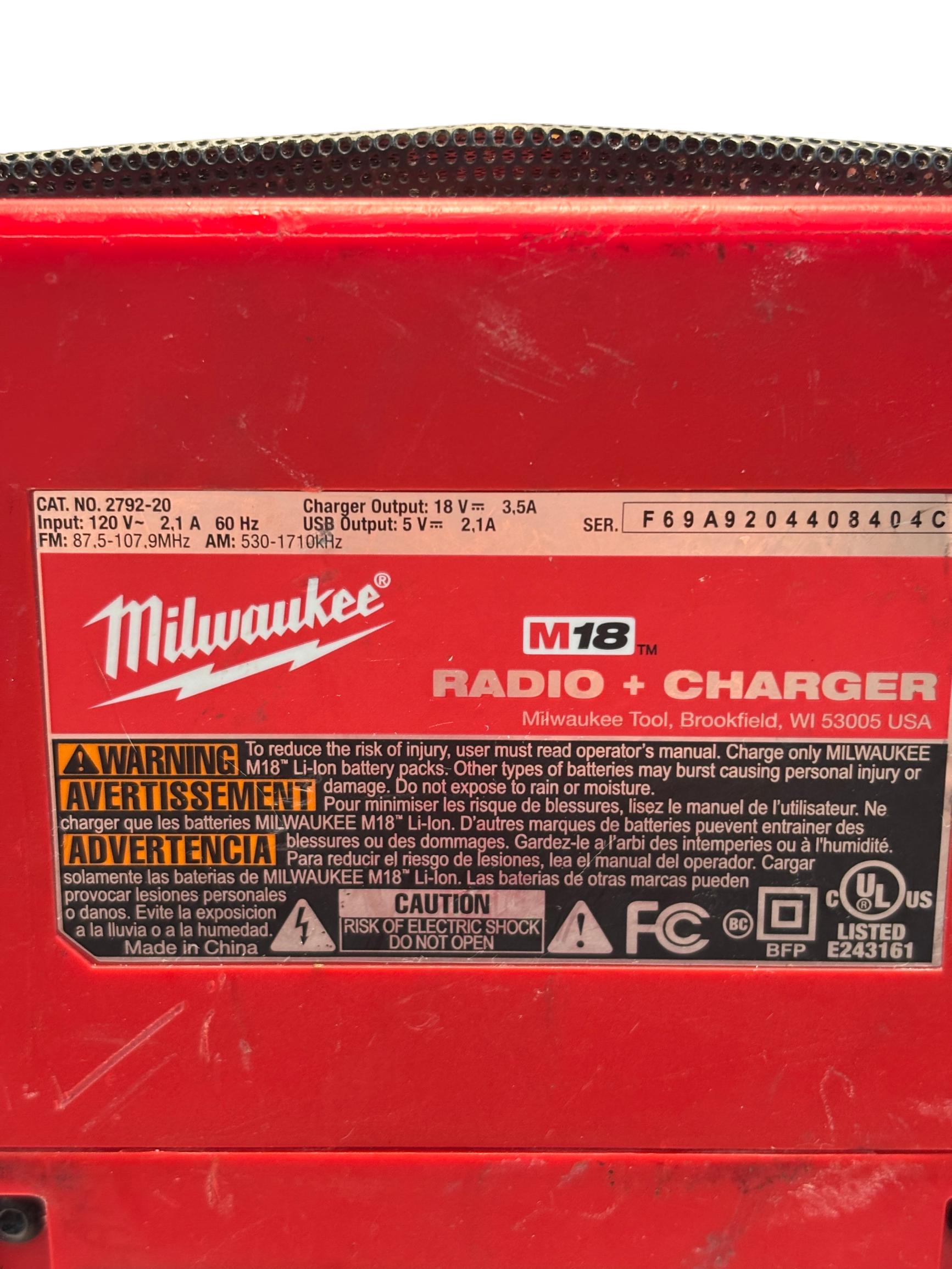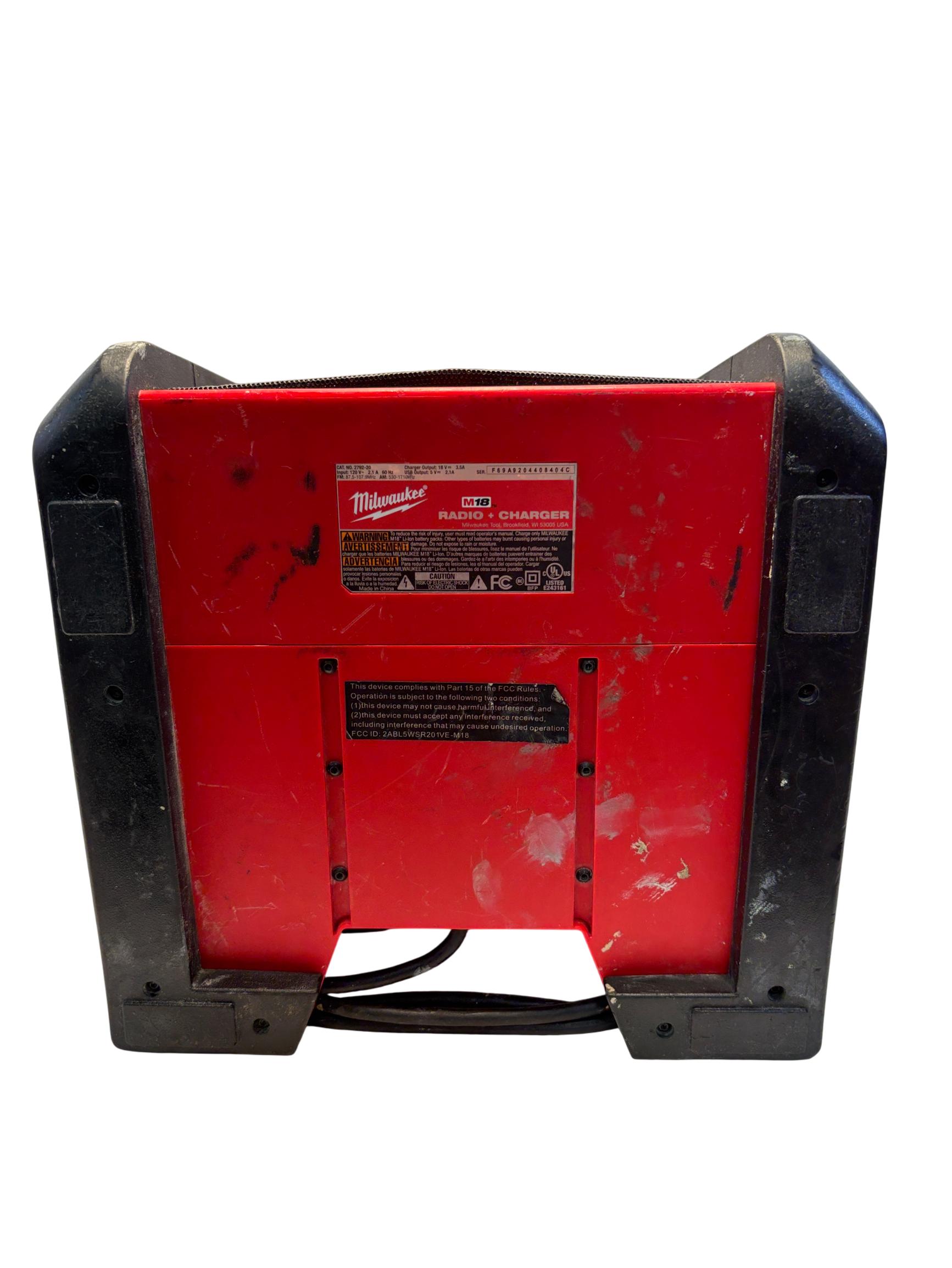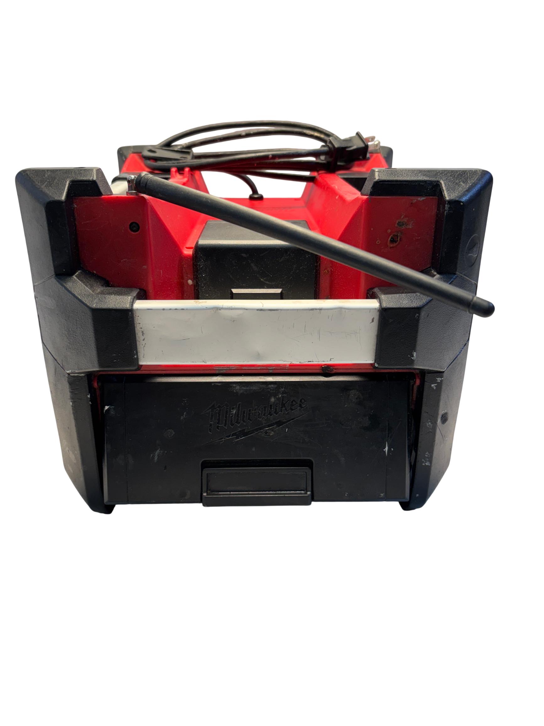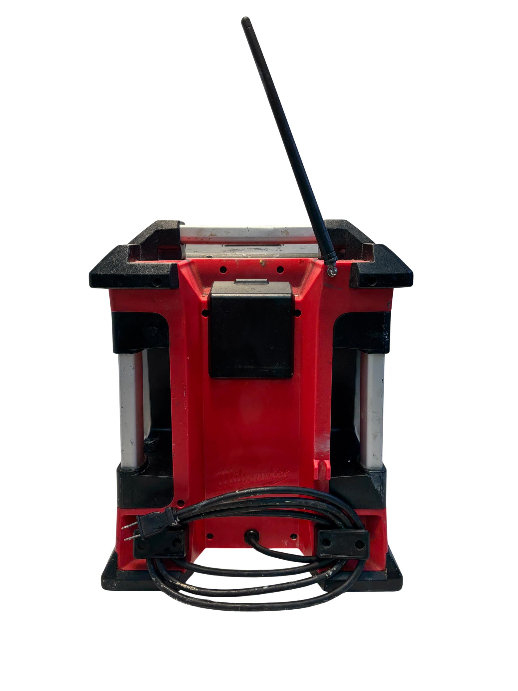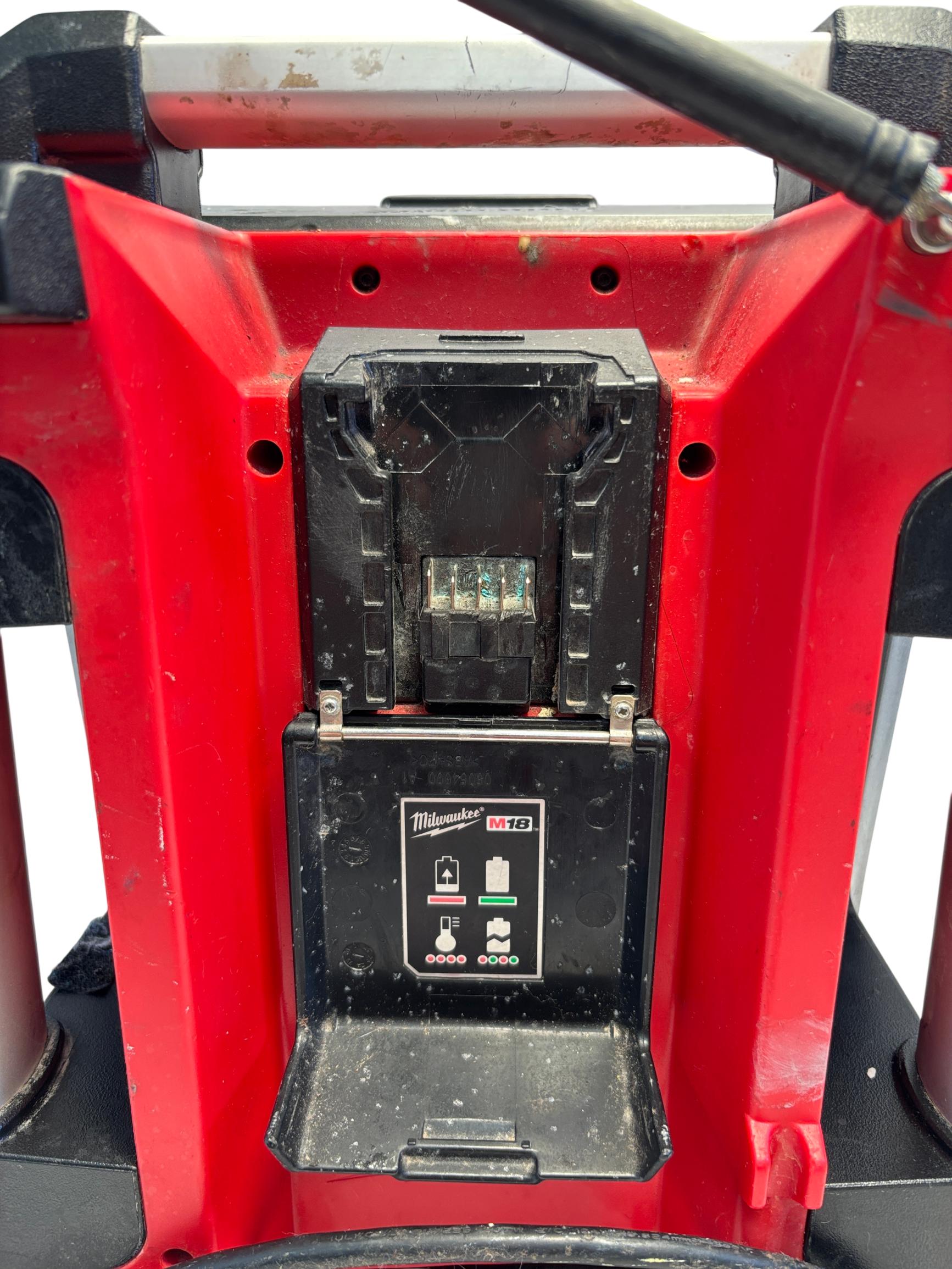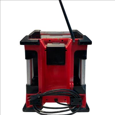 The Milwaukee M18 Jobsite Radio/Charger is a rugged and versatile worksite radio designed for use with 18-volt M18 batteries. It features a durable construction with a clear LCD screen and multiple preset modes, providing excellent sound quality and reliable performance in demanding environments. This jobsite radio is equipped with an antenna for enhanced signal reception and is built to withstand tough jobsite conditions.