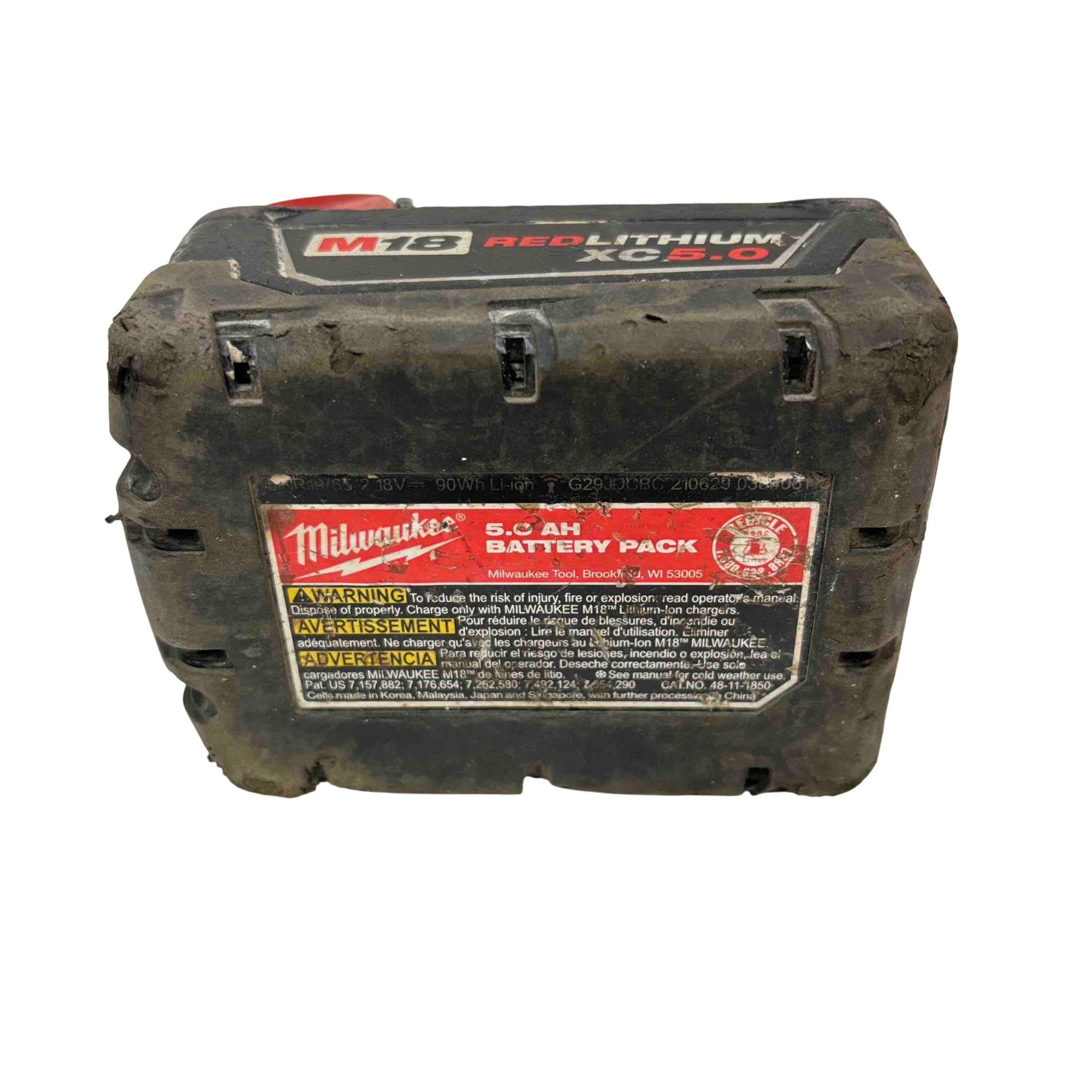 Previously owned. The Milwaukee battery pack has been tested and works well and is in fair condition that has heavy dirt stains, heavy scuffs and scratches. See photos for details.